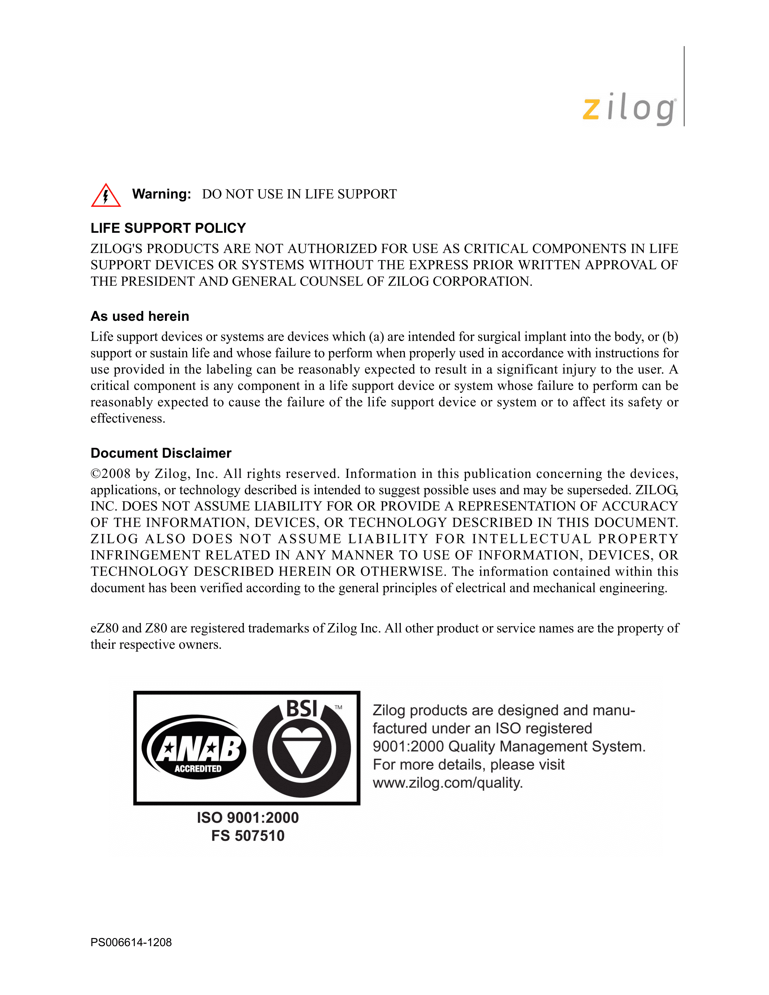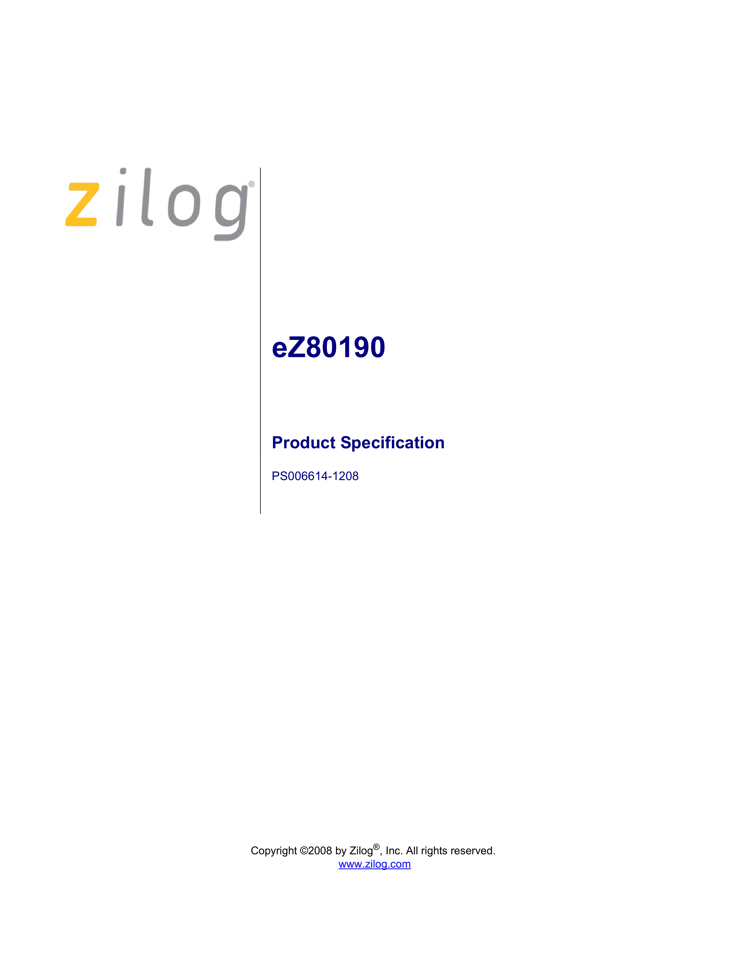 EZ80190AZ050EG数据手册VQFP-100(14x14)封装ZilogPDF规格书,中英文