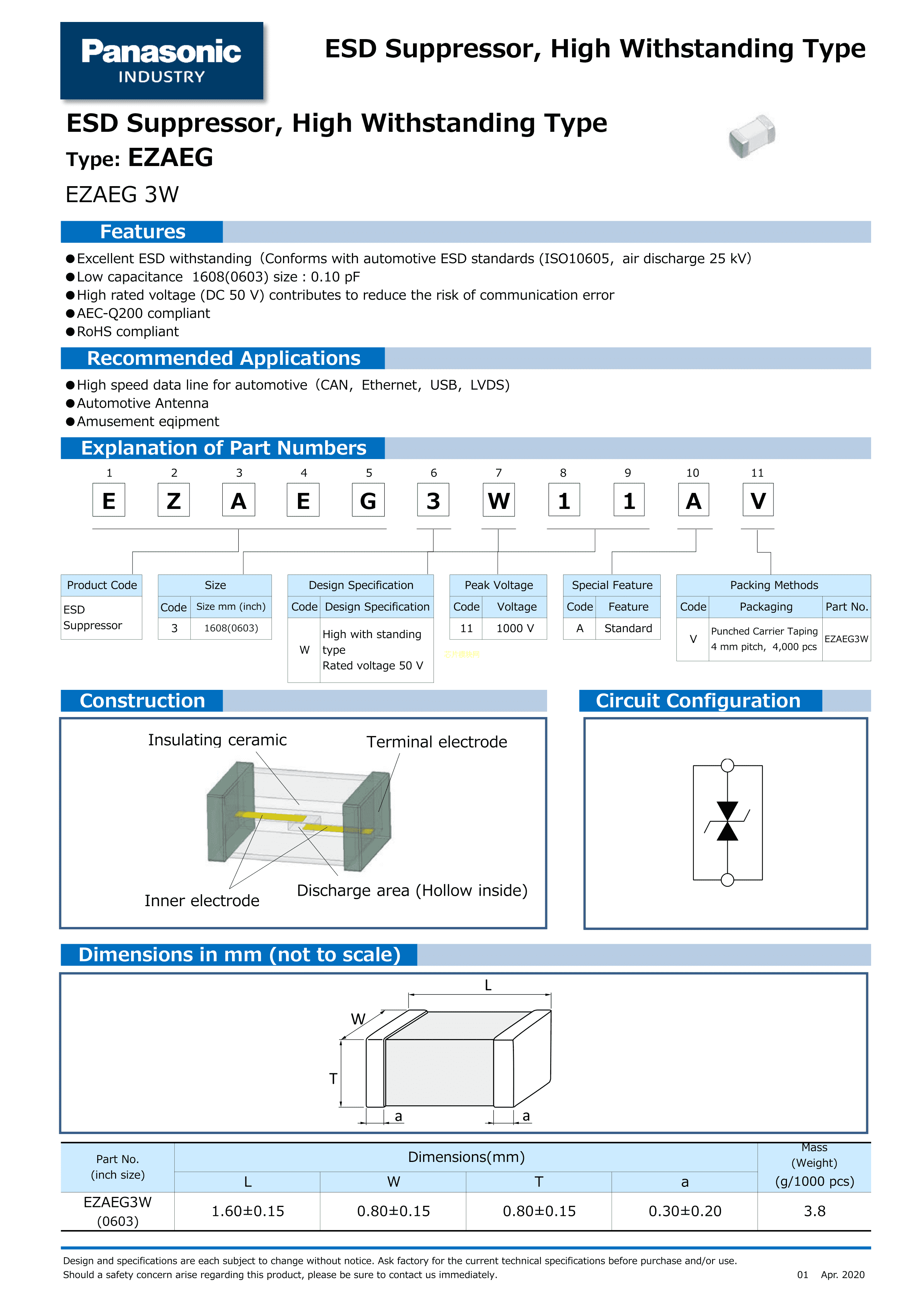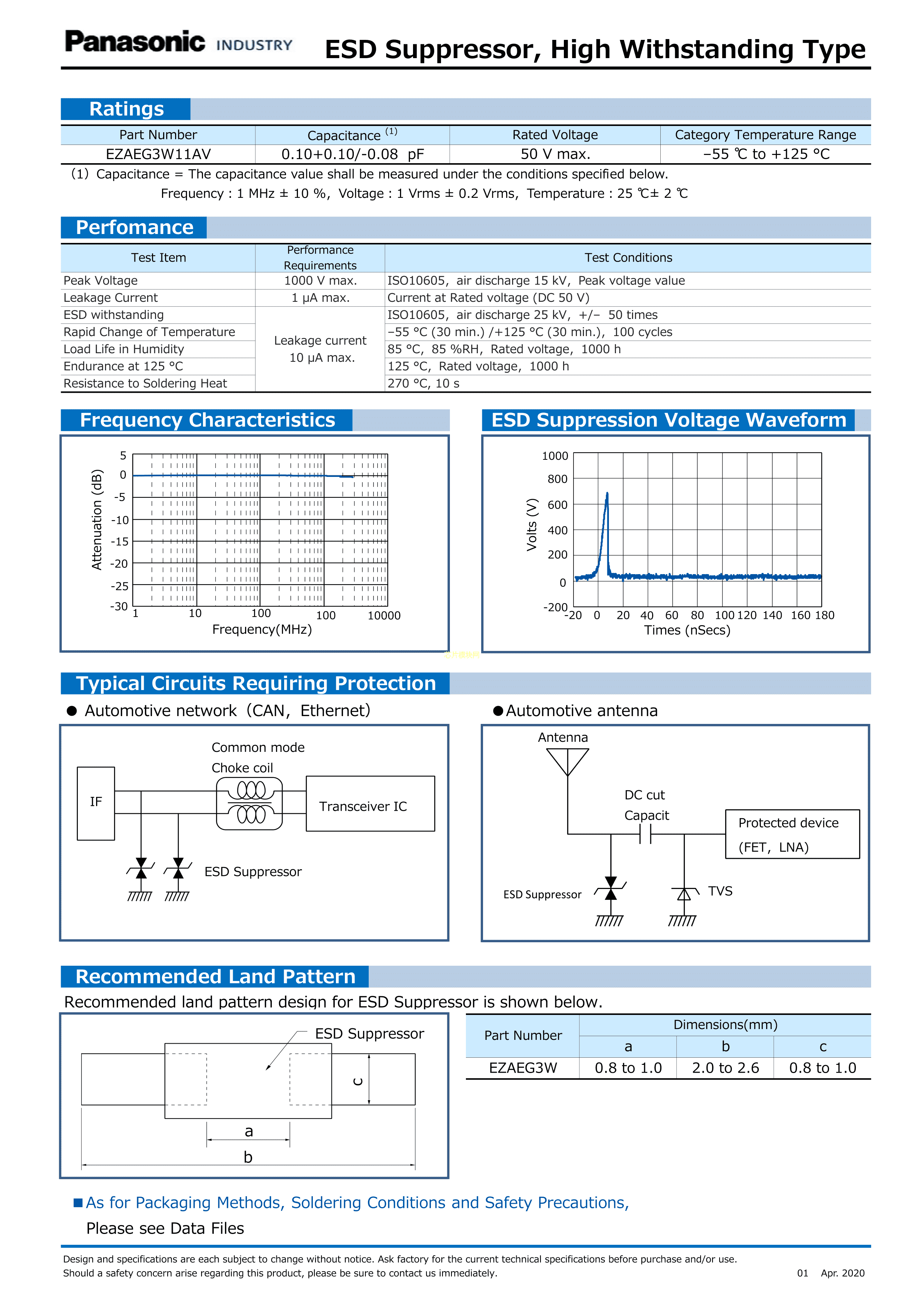 EZAEG3W11AV数据手册0603封装PANASONIC(松下)PDF规格书,中英文下载