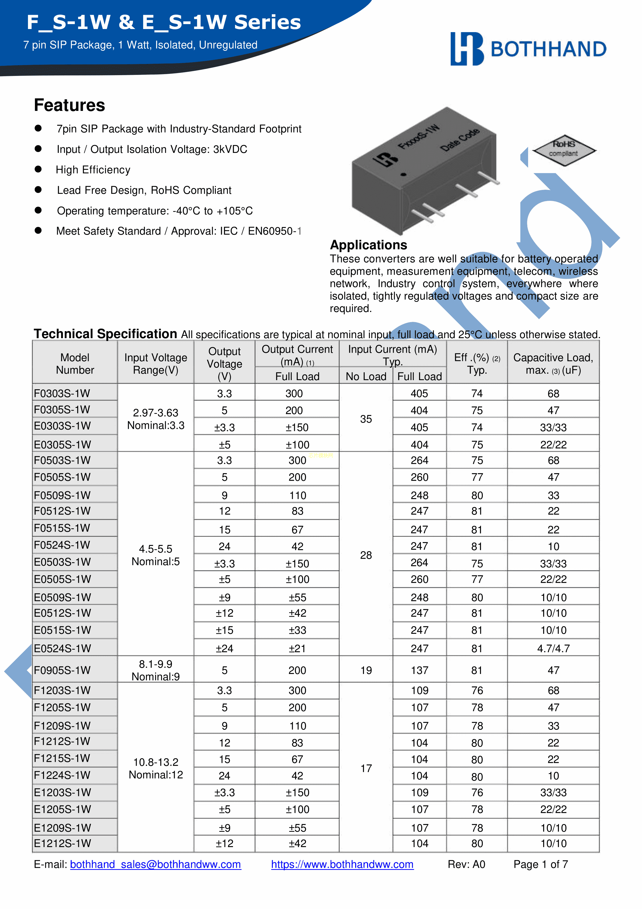 F0505S-1W数据手册SIP-7封装BOTHHAND(帛汉)PDF规格书,中英文下载