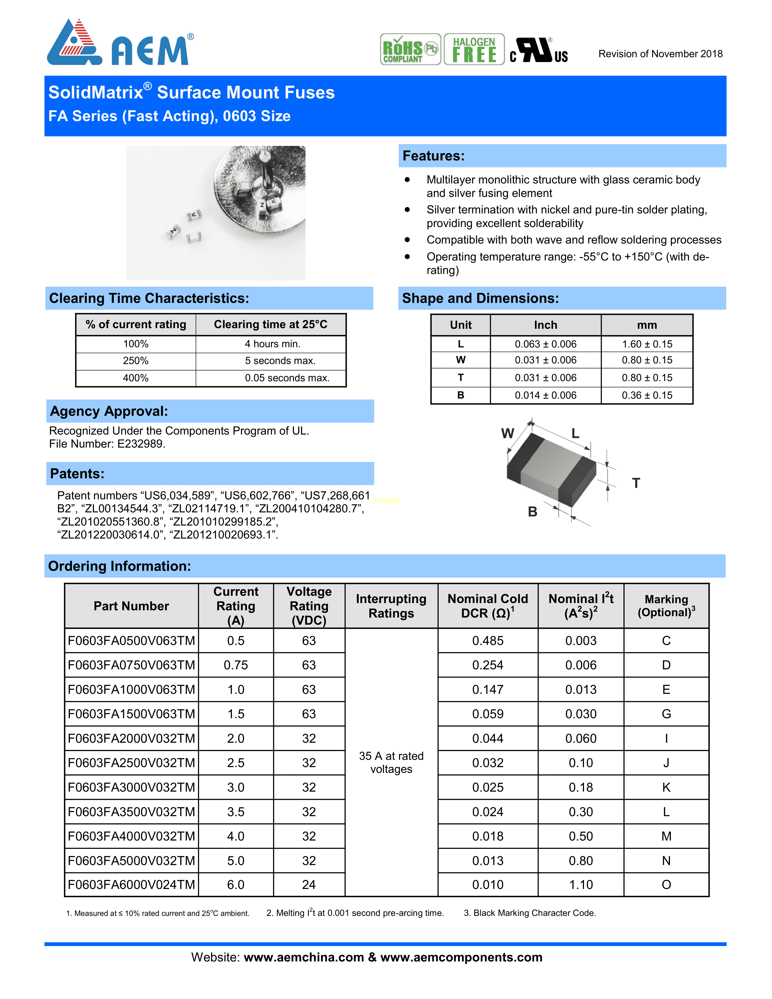 F0603FA0750V063TM数据手册0603封装AEMPDF规格书,中英文下载