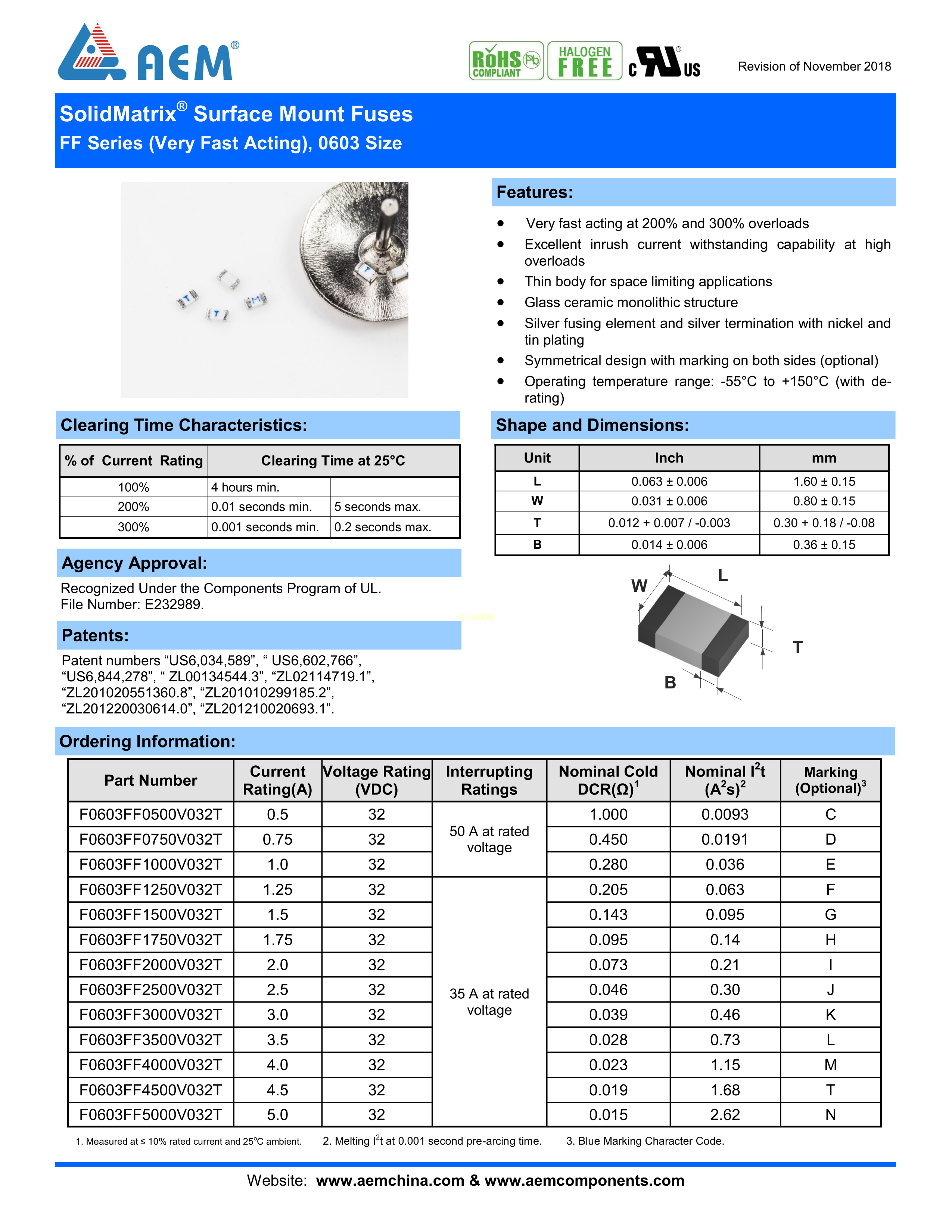 F0603FF1500V032TM数据手册0603封装AEMPDF规格书,中英文下载