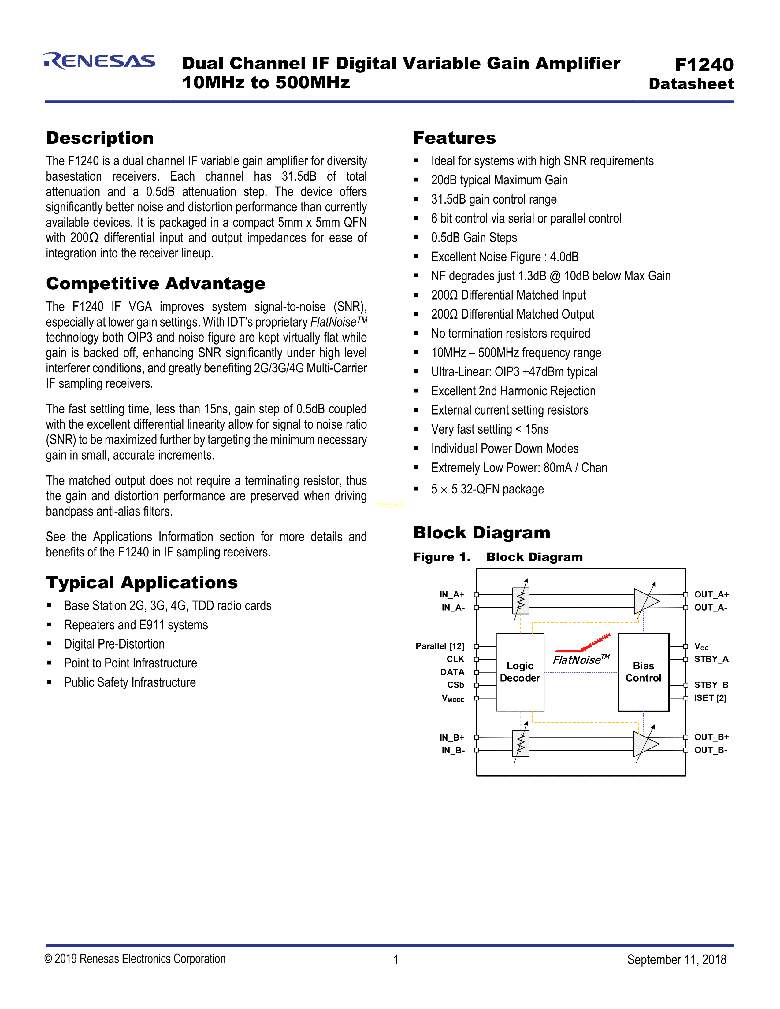 F1240NBGI8数据手册VFQFPN-32(5x5)封装RENESAS(瑞萨)-IDTPDF规格书,中英文下载
