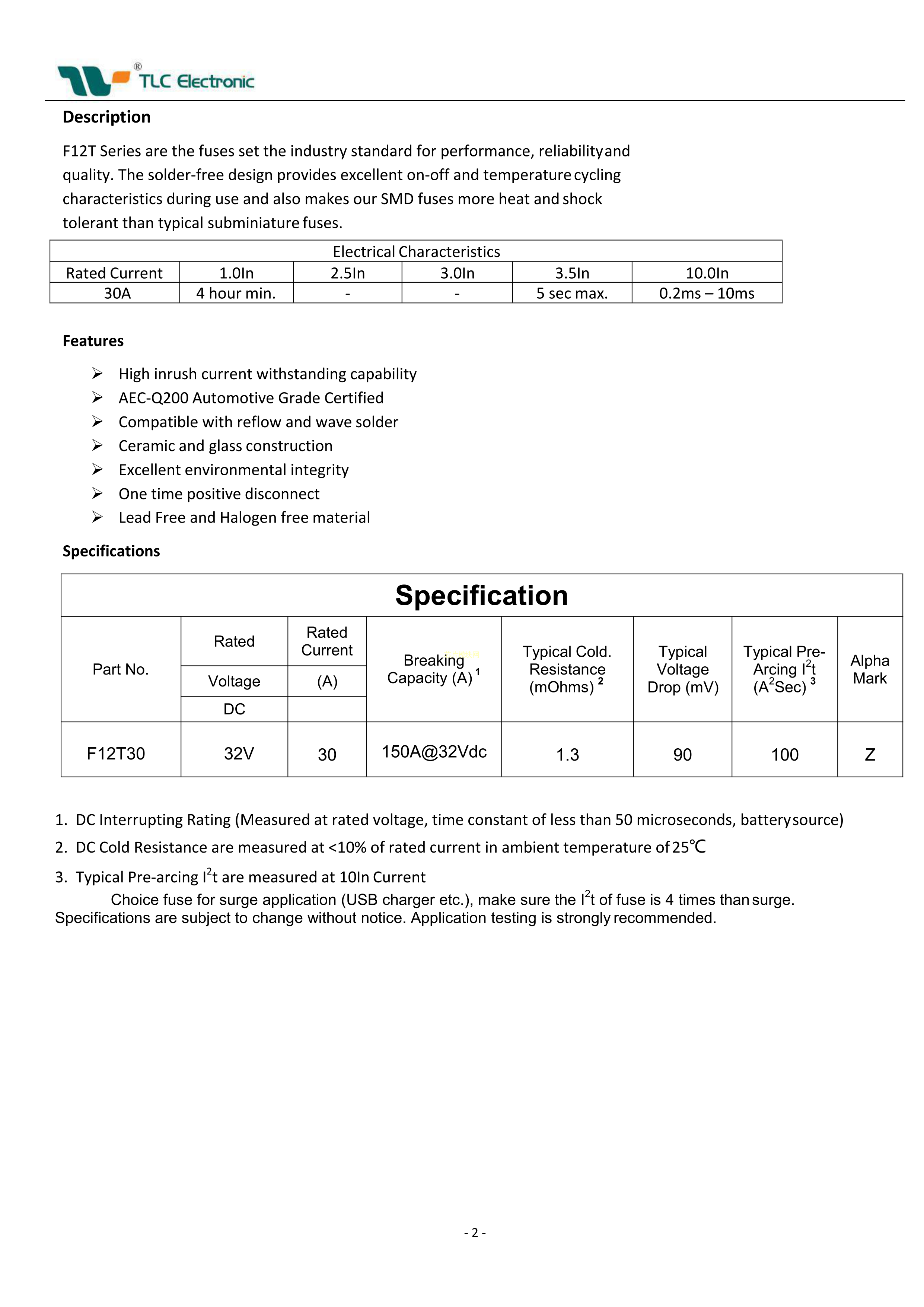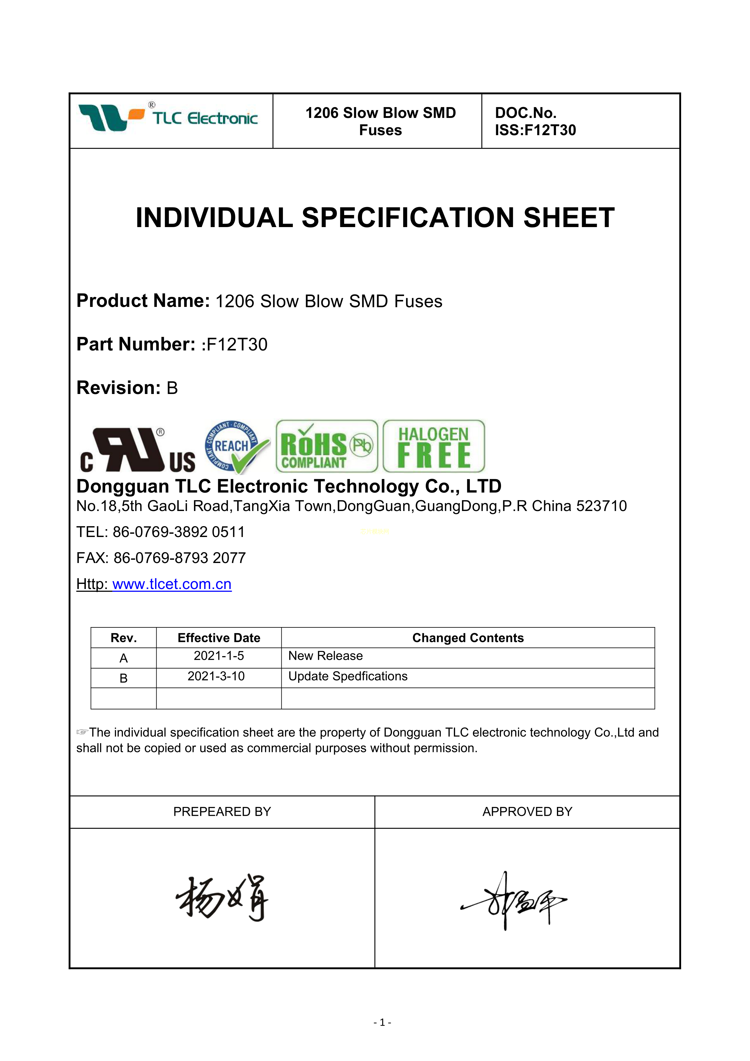 F12T30数据手册1206封装TLC(竞沃)PDF规格书,中英文下载