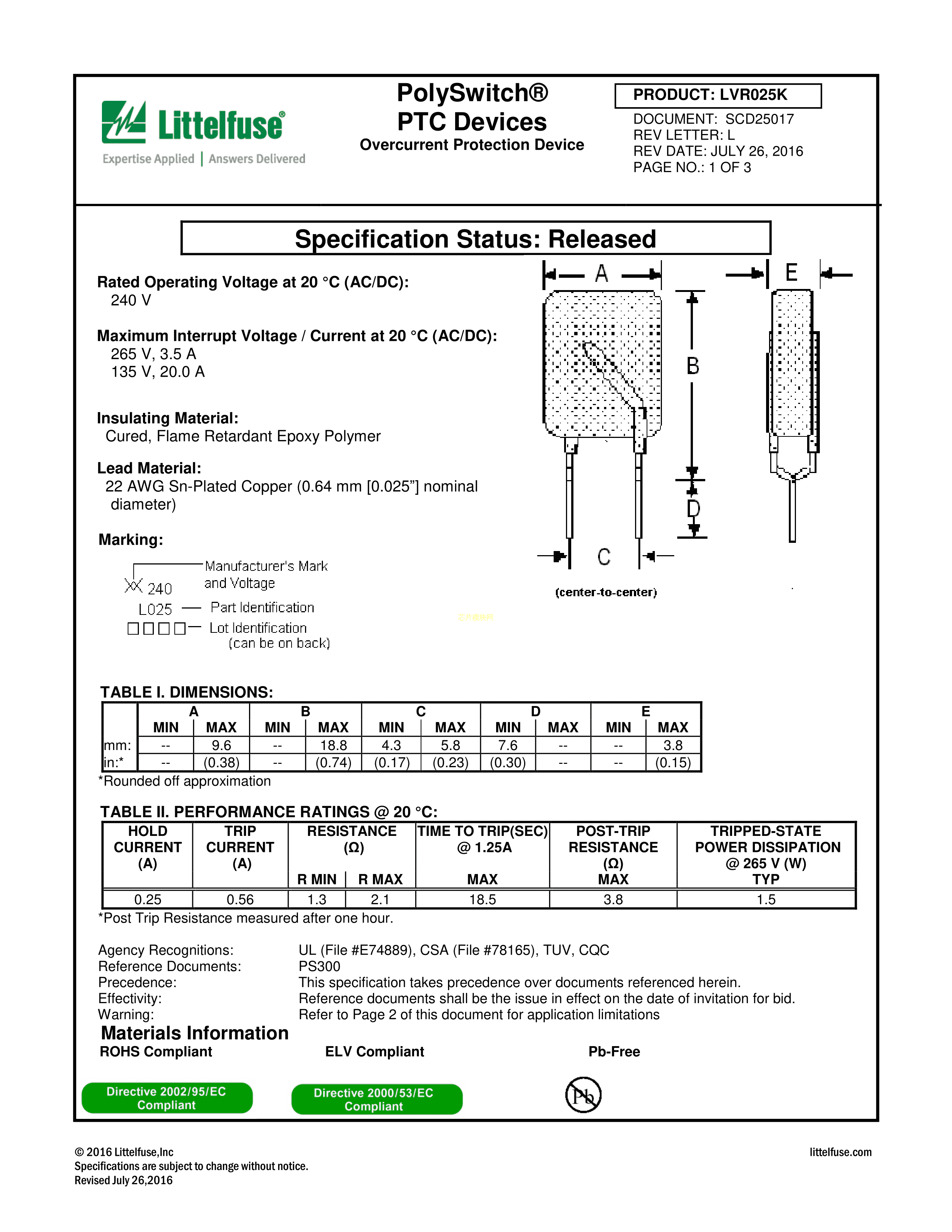 F27075-000数据手册径向引线封装Littelfuse(美国力特)PDF规格书,中英文下载