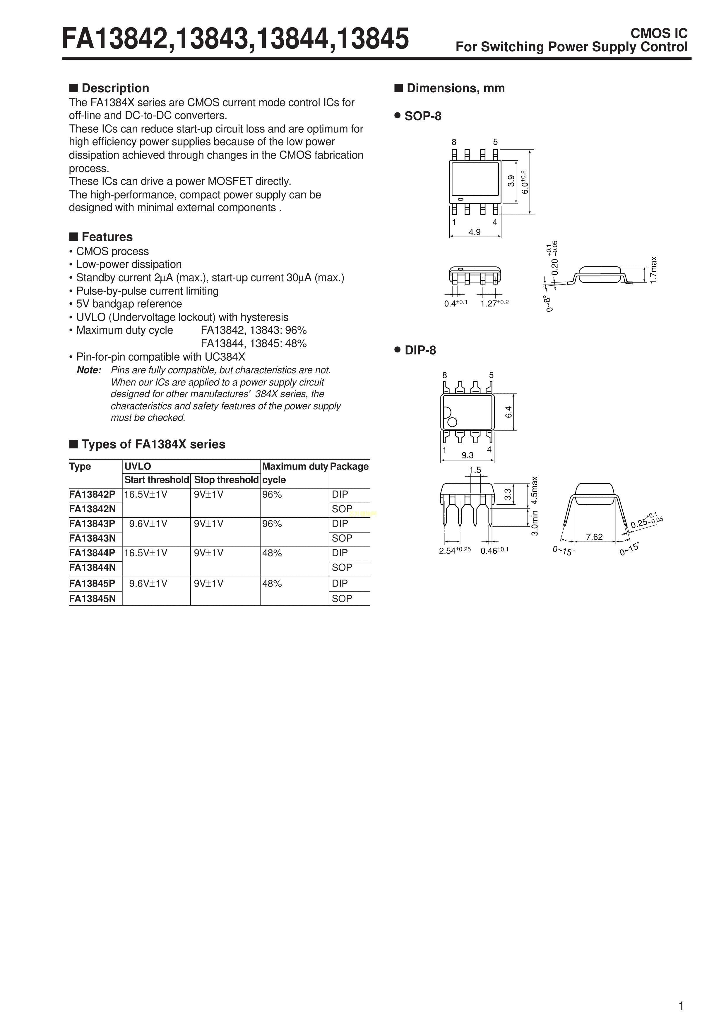 FA13844N数据手册SOIC-8_39MM封装FUJITSU(富士通)PDF规格书,中英文下载