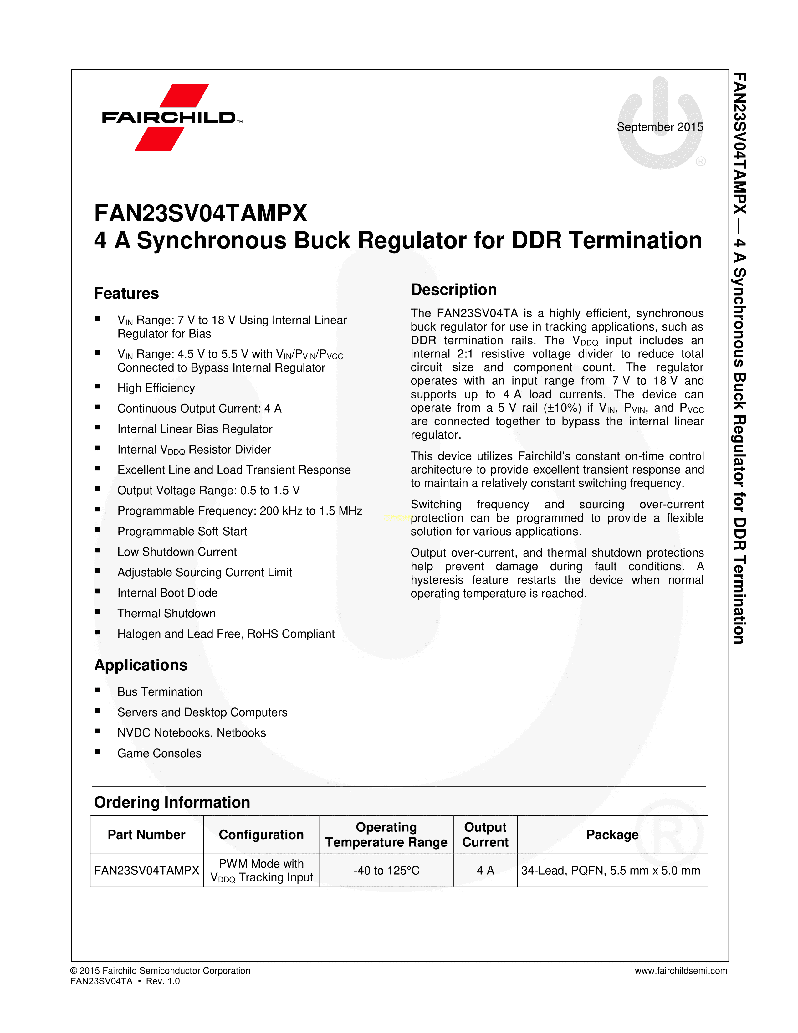 FAN23SV04TAMPX数据手册PQFN-34封装onsemi(安森美)PDF规格书,中英文下载