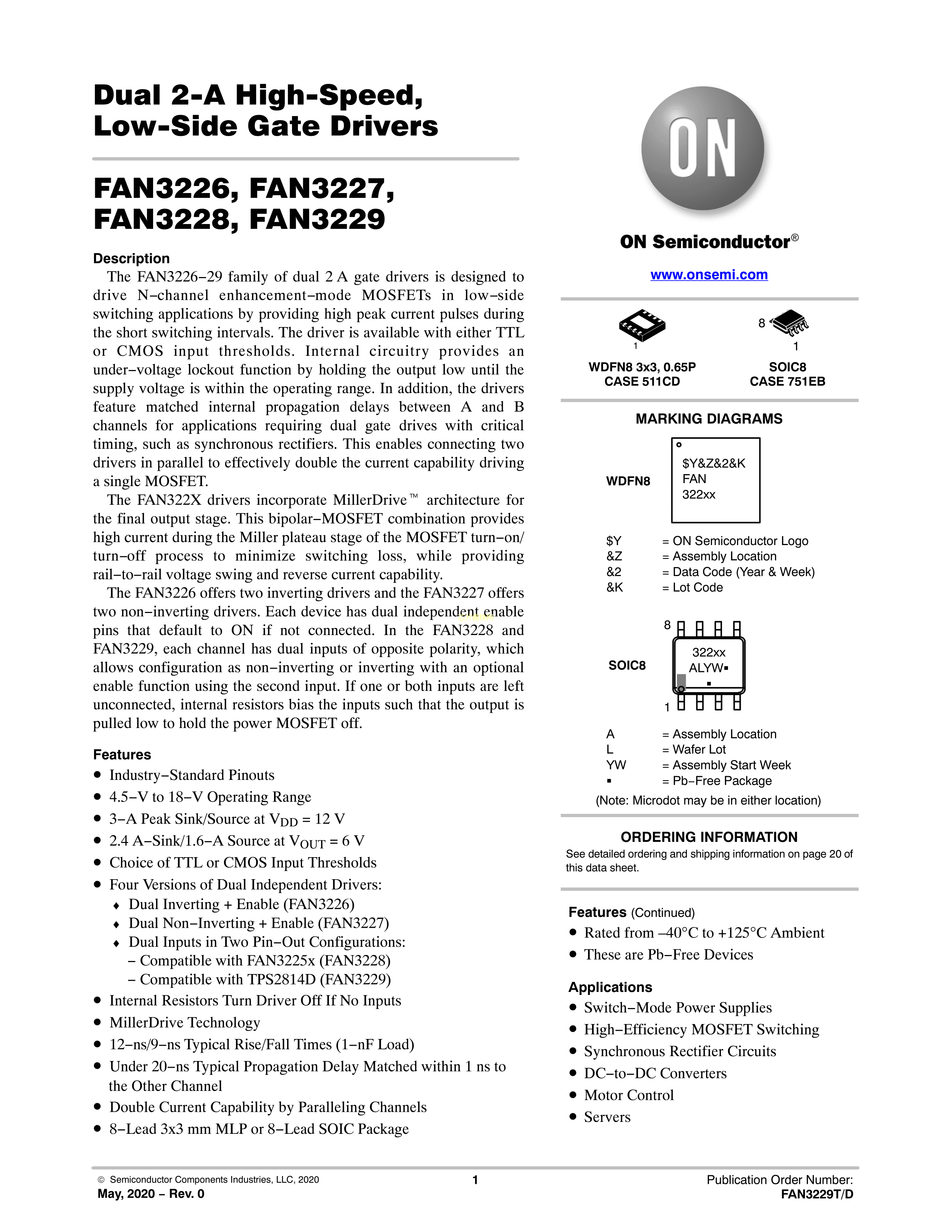 FAN3226TMX数据手册SOIC-8封装onsemi(安森美)PDF规格书,中英文下载