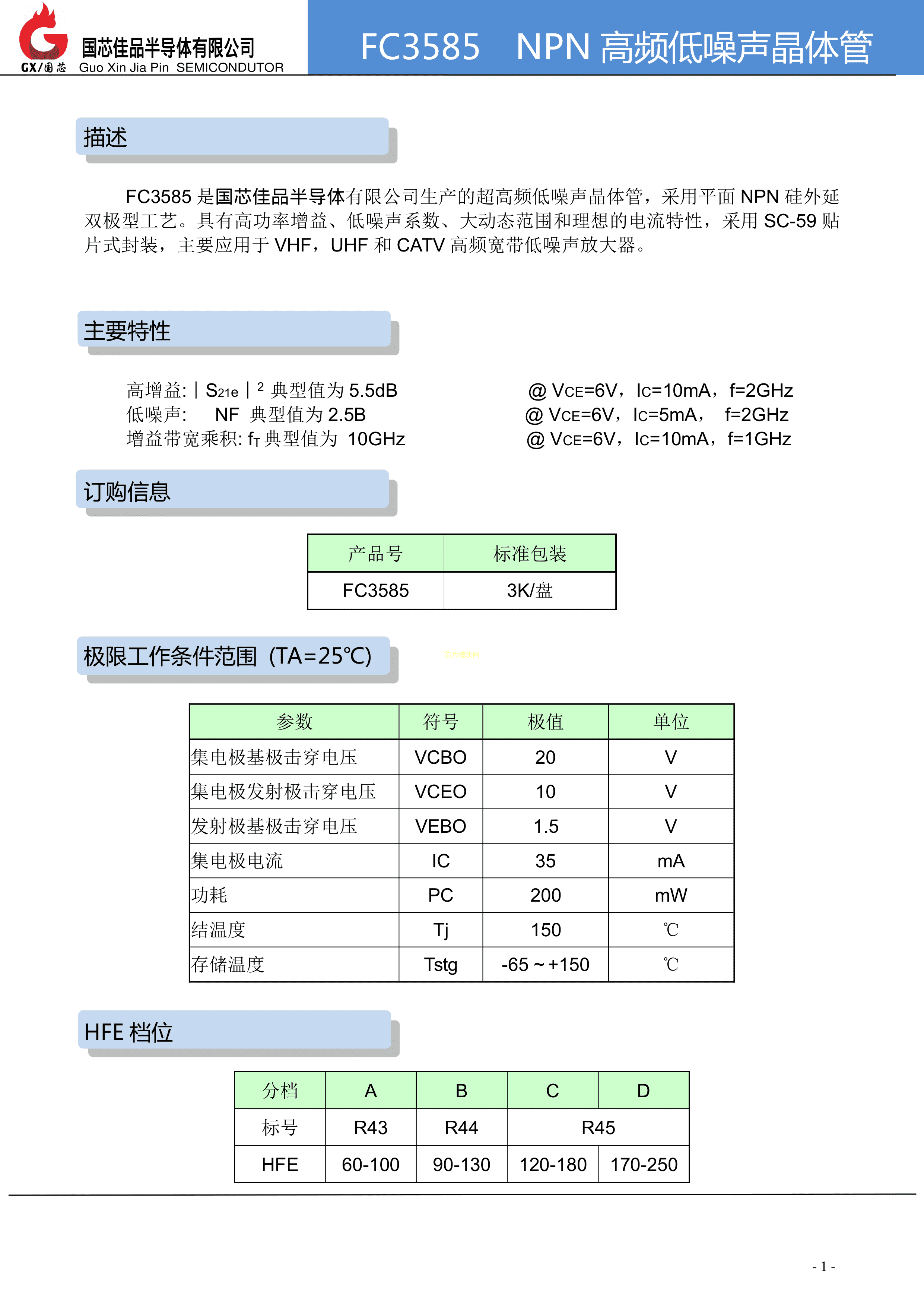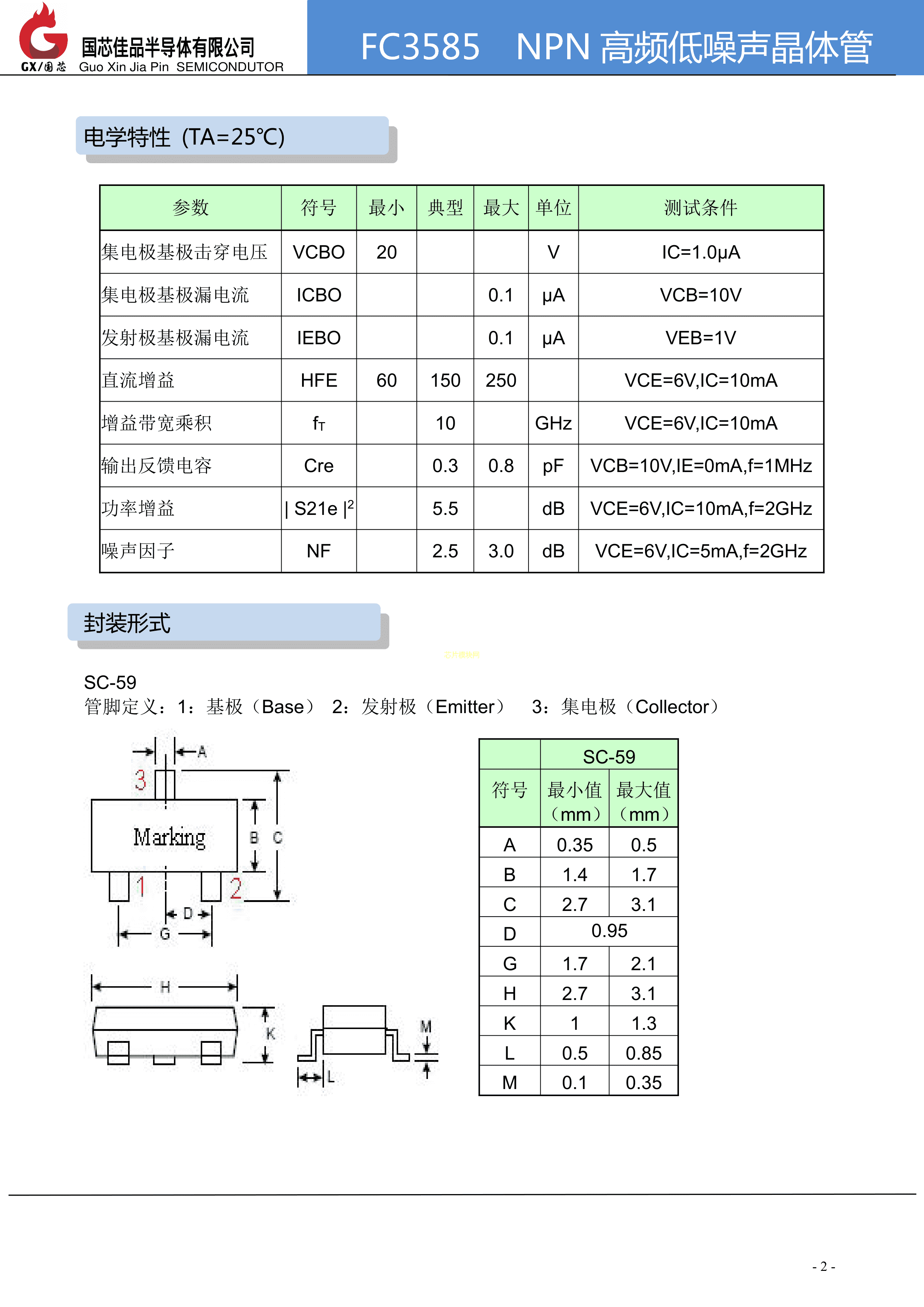 FC3585数据手册SC-59封装国芯佳品PDF规格书,中英文下载