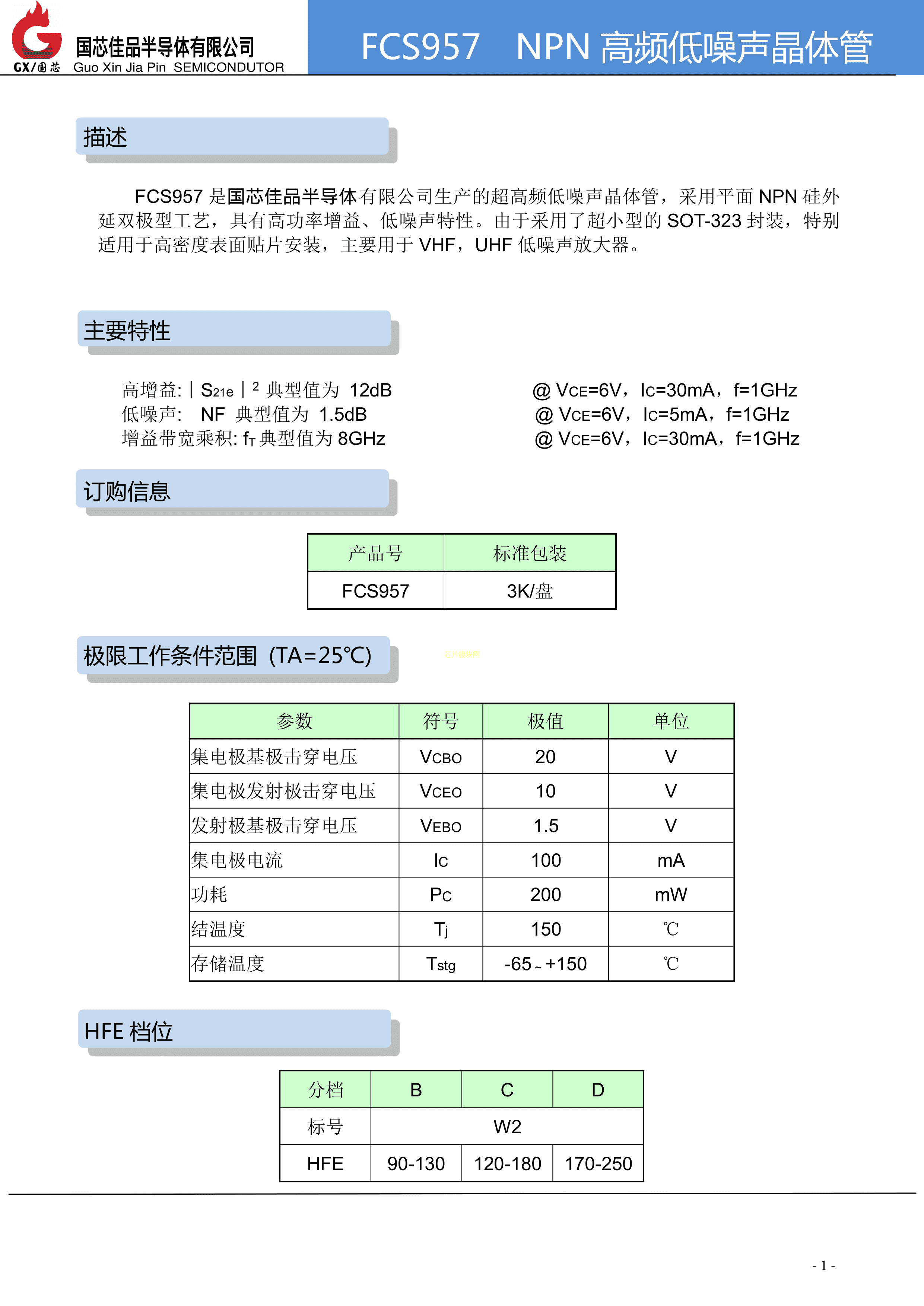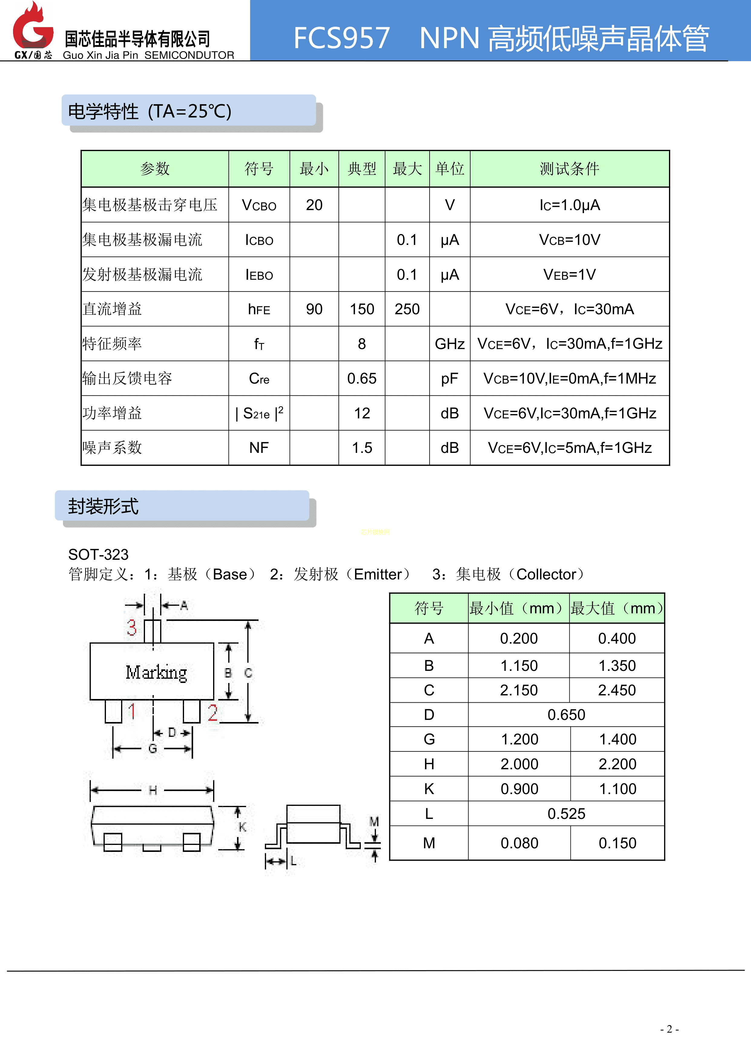 FCS957数据手册SOT-323封装国芯佳品PDF规格书,中英文下载