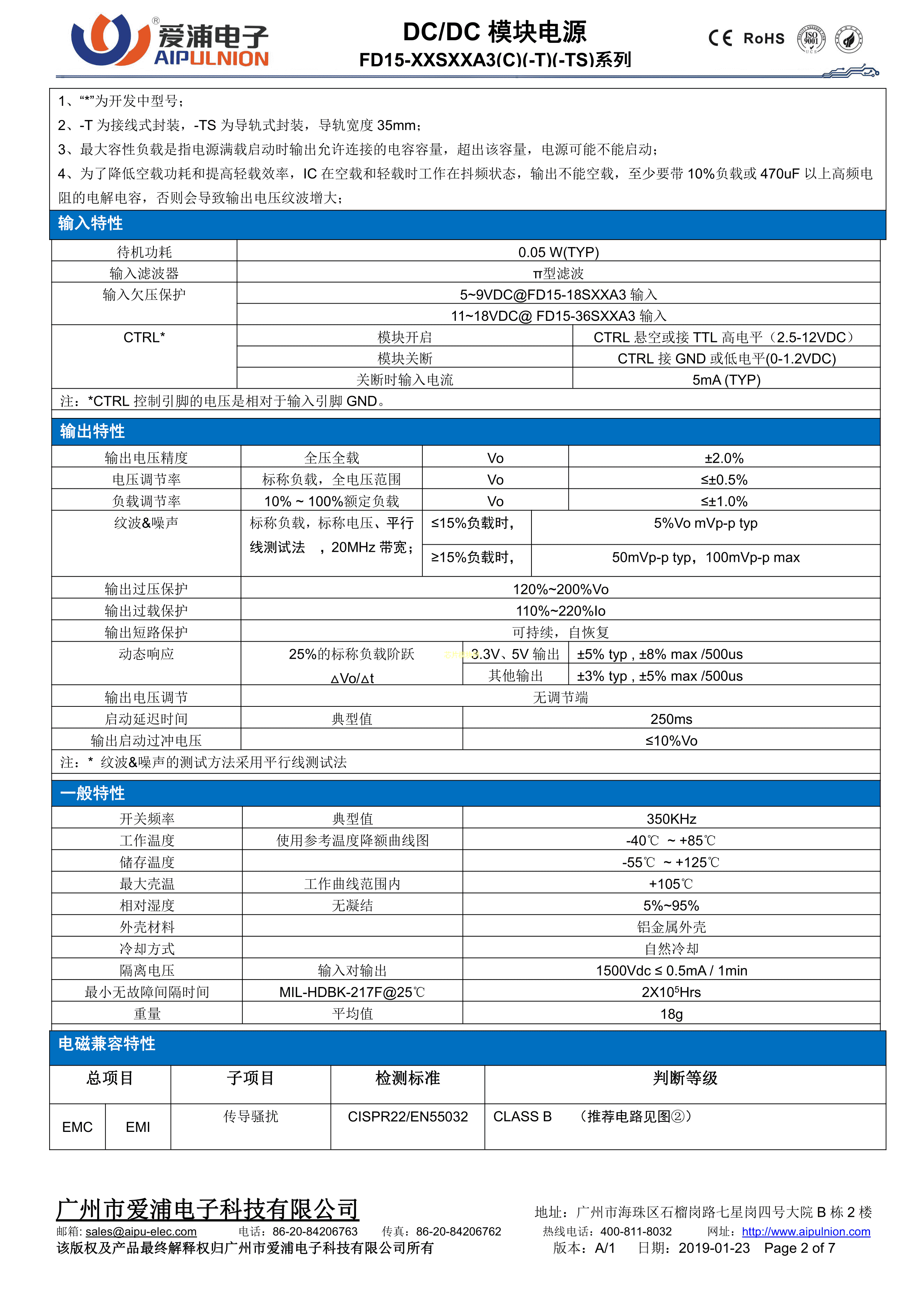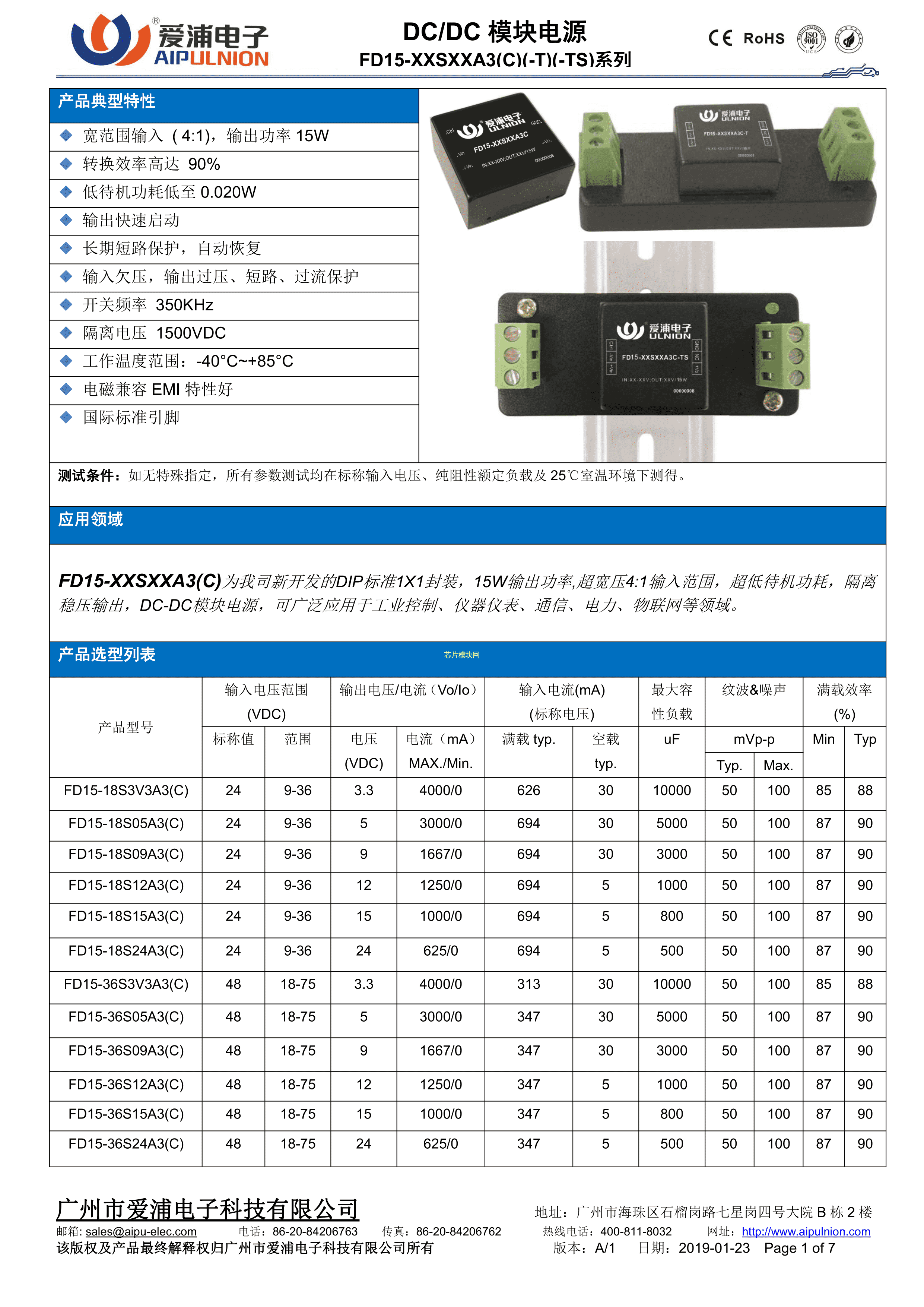 FD15-18S24A3C数据手册插件封装AIPULNION(爱浦电子)PDF规格书,中英文下载