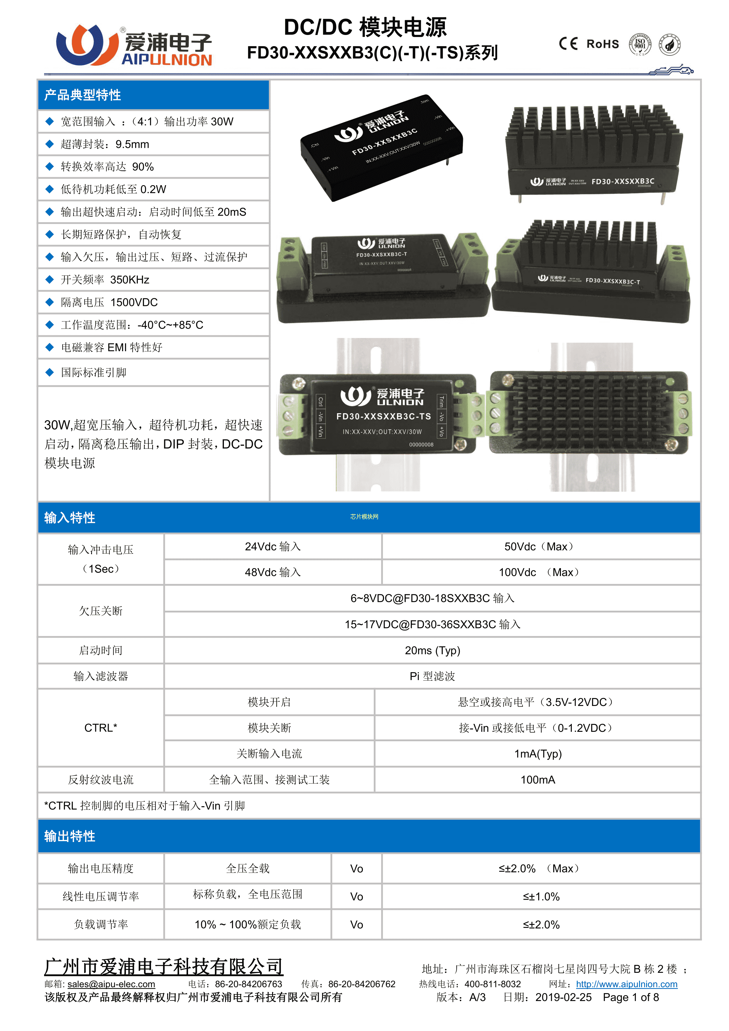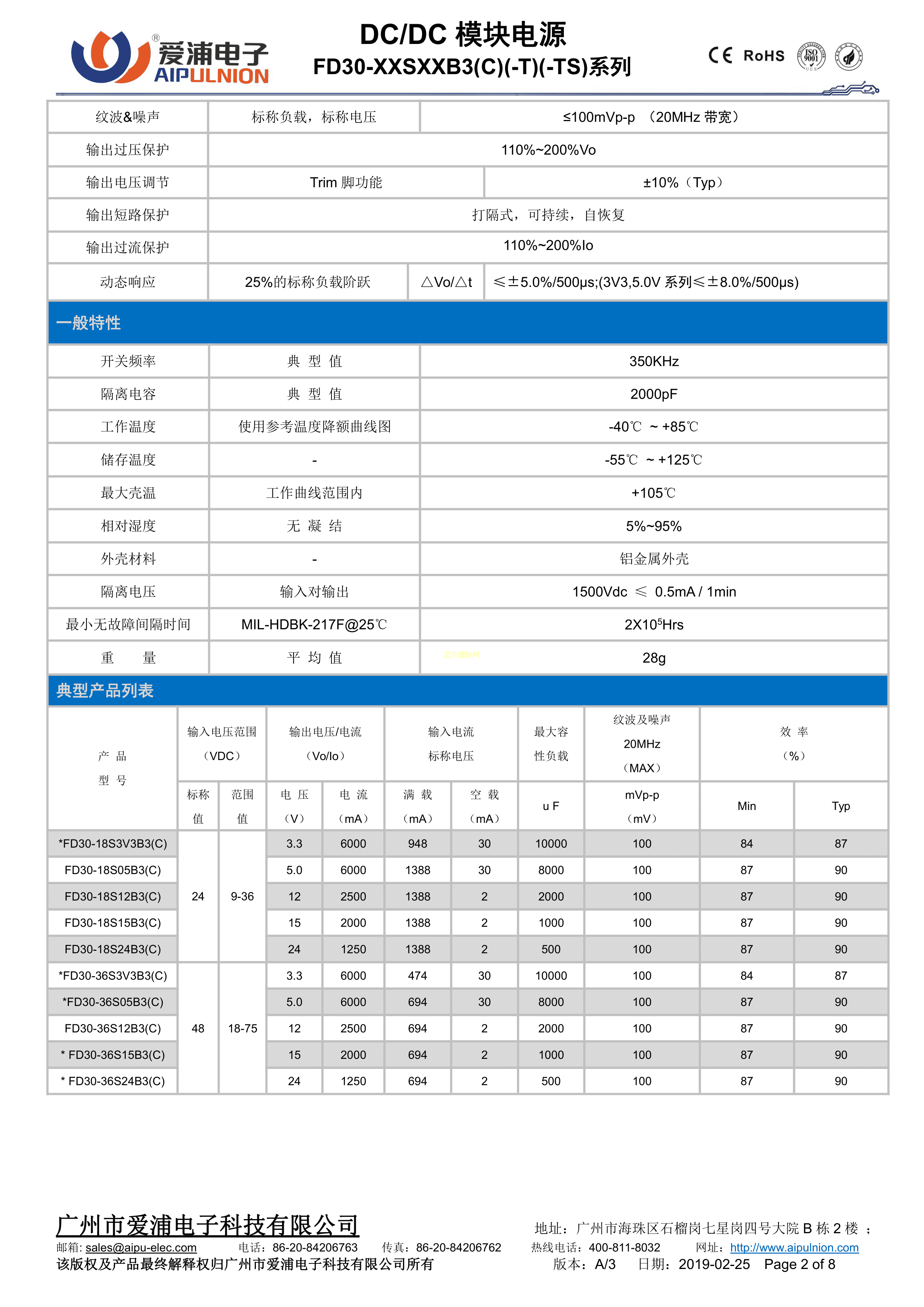 FD30-18S12B3C数据手册插件封装AIPULNION(爱浦电子)PDF规格书,中英文下载