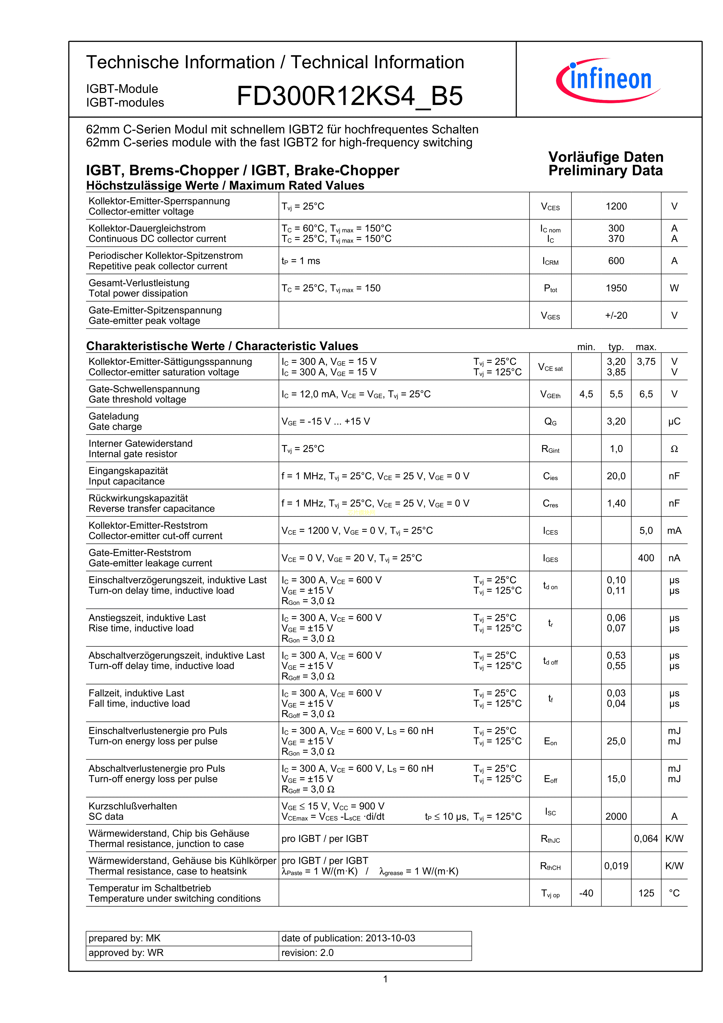 FD300R12KS4_B5数据手册AG-62MM-1封装Infineon(英飞凌)PDF规格书,中