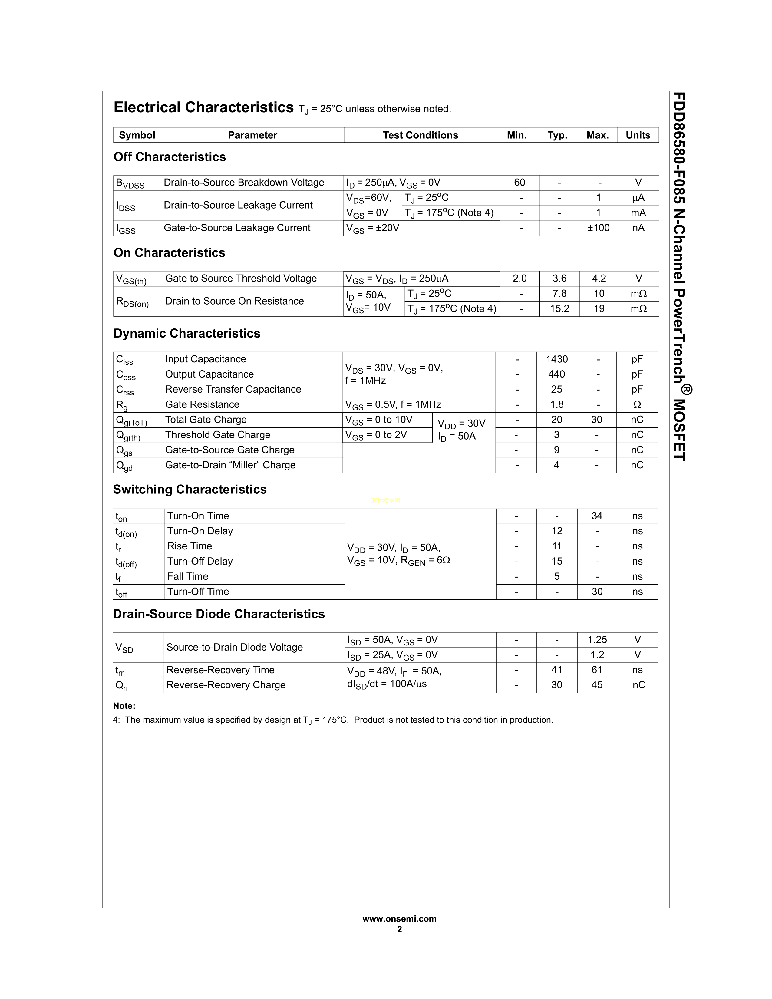 FDD86580-F085数据手册TO-252封装onsemi(安森美)PDF规格书,中英文下载