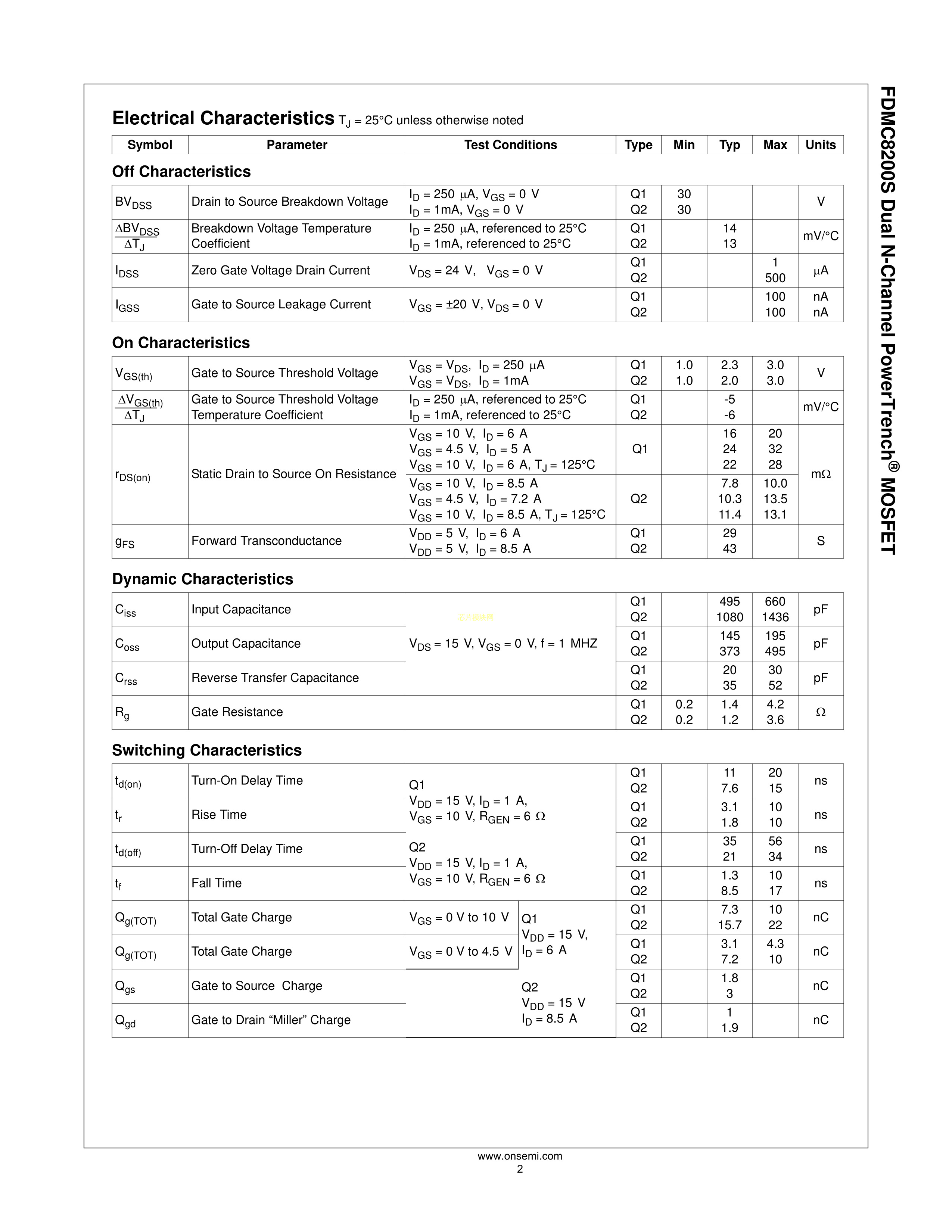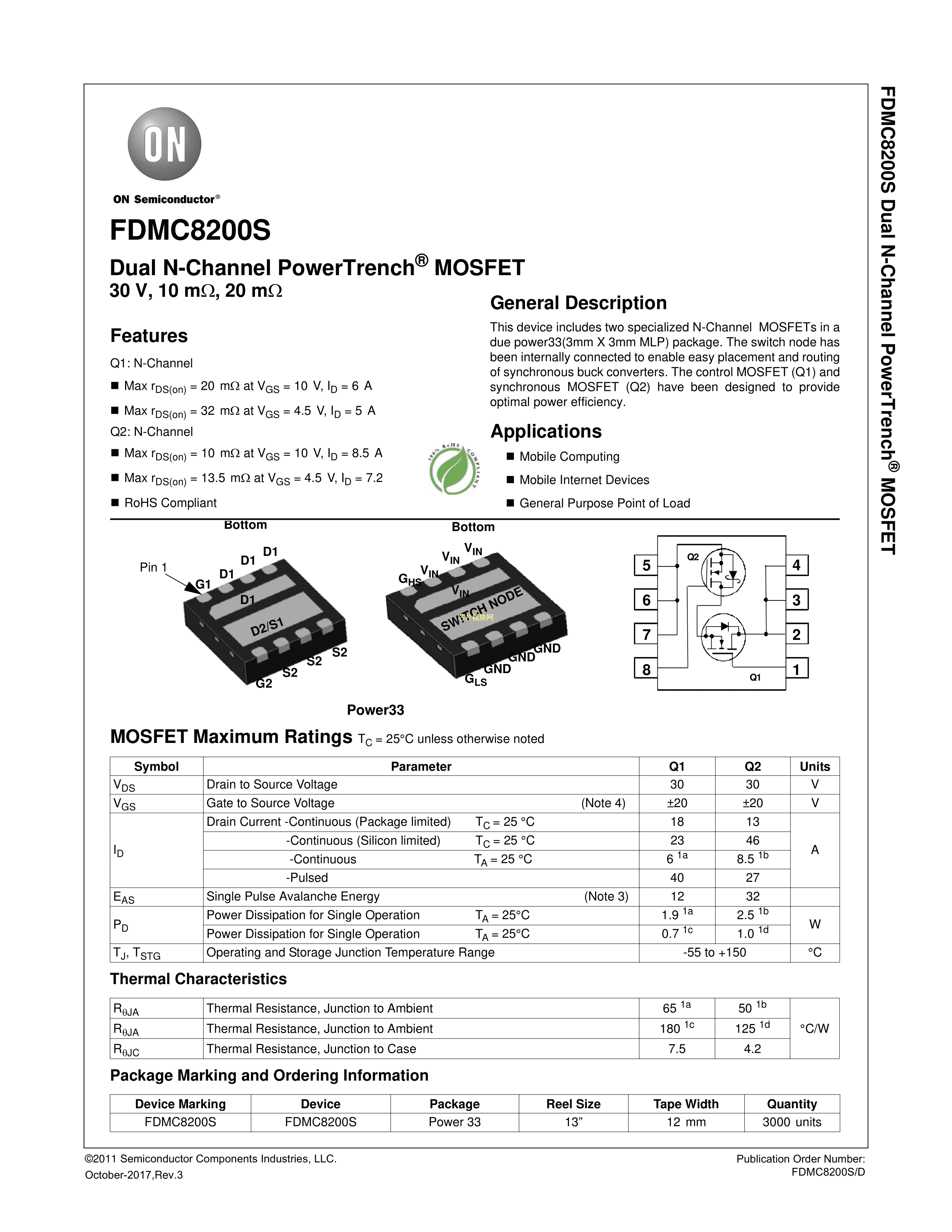 FDMC8200数据手册Power-33-8封装onsemi(安森美)PDF规格书,中英文下载