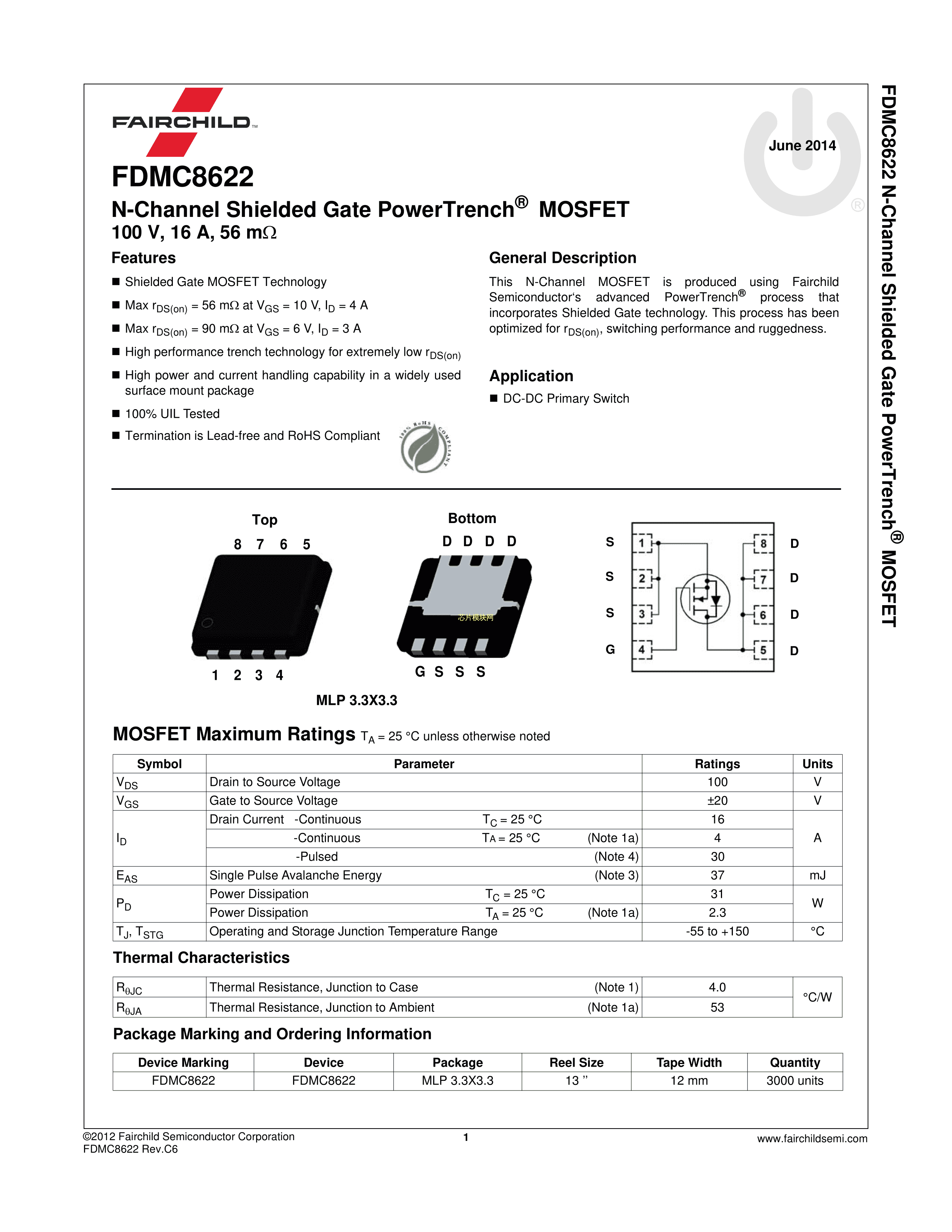 FDMC8622数据手册Power-33-8封装onsemi(安森美)PDF规格书,中英文下载
