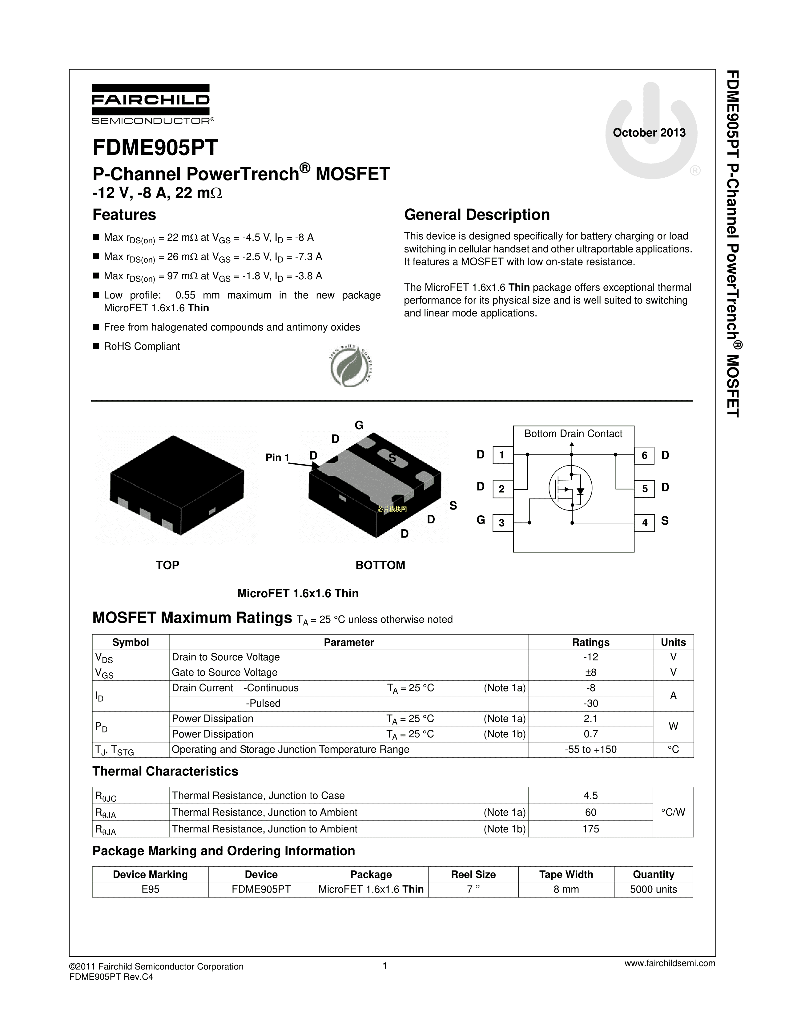 FDME905PT数据手册SMD封装onsemi(安森美)PDF规格书,中英文下载