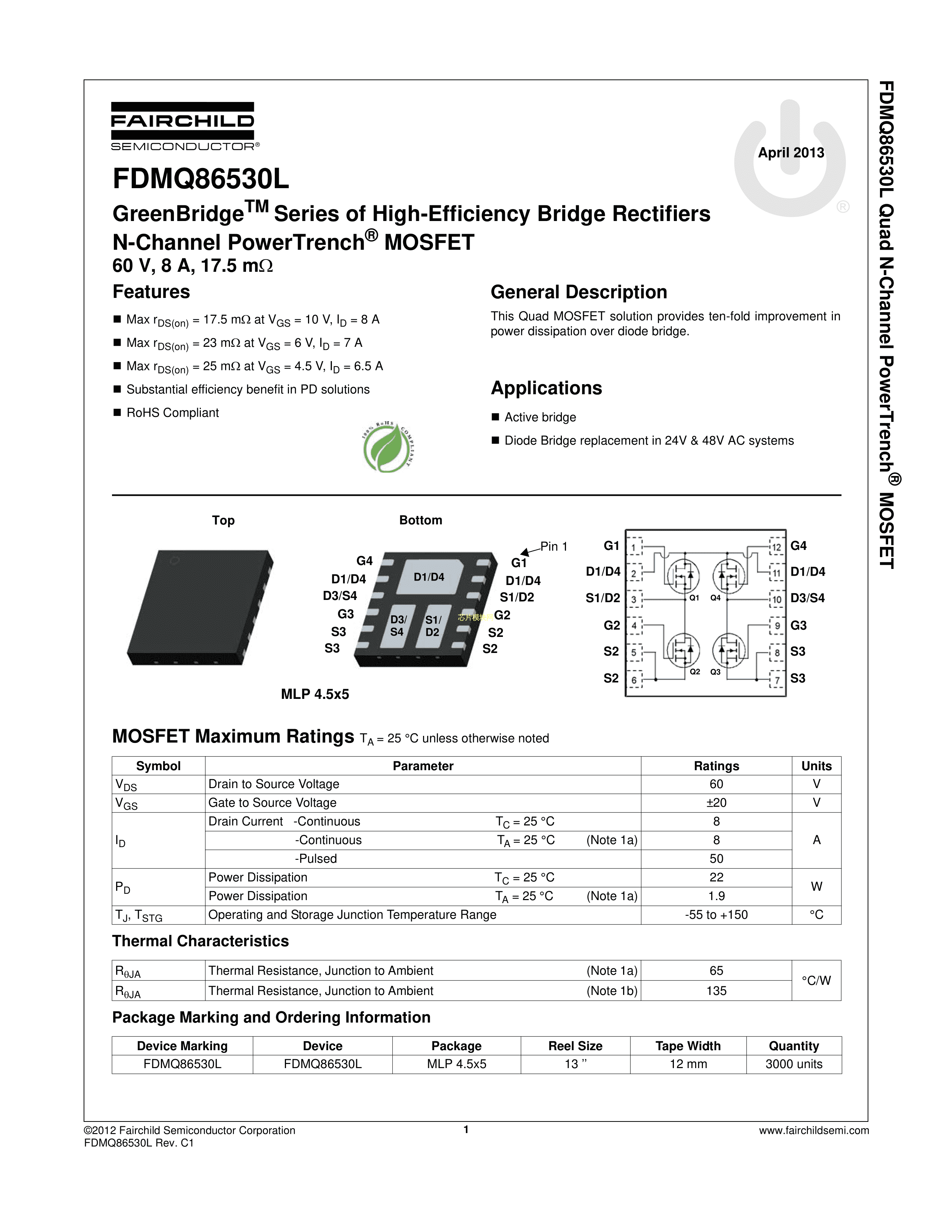 FDMQ86530L数据手册MLP-4.5x5封装onsemi(安森美)PDF规格书,中英文下载