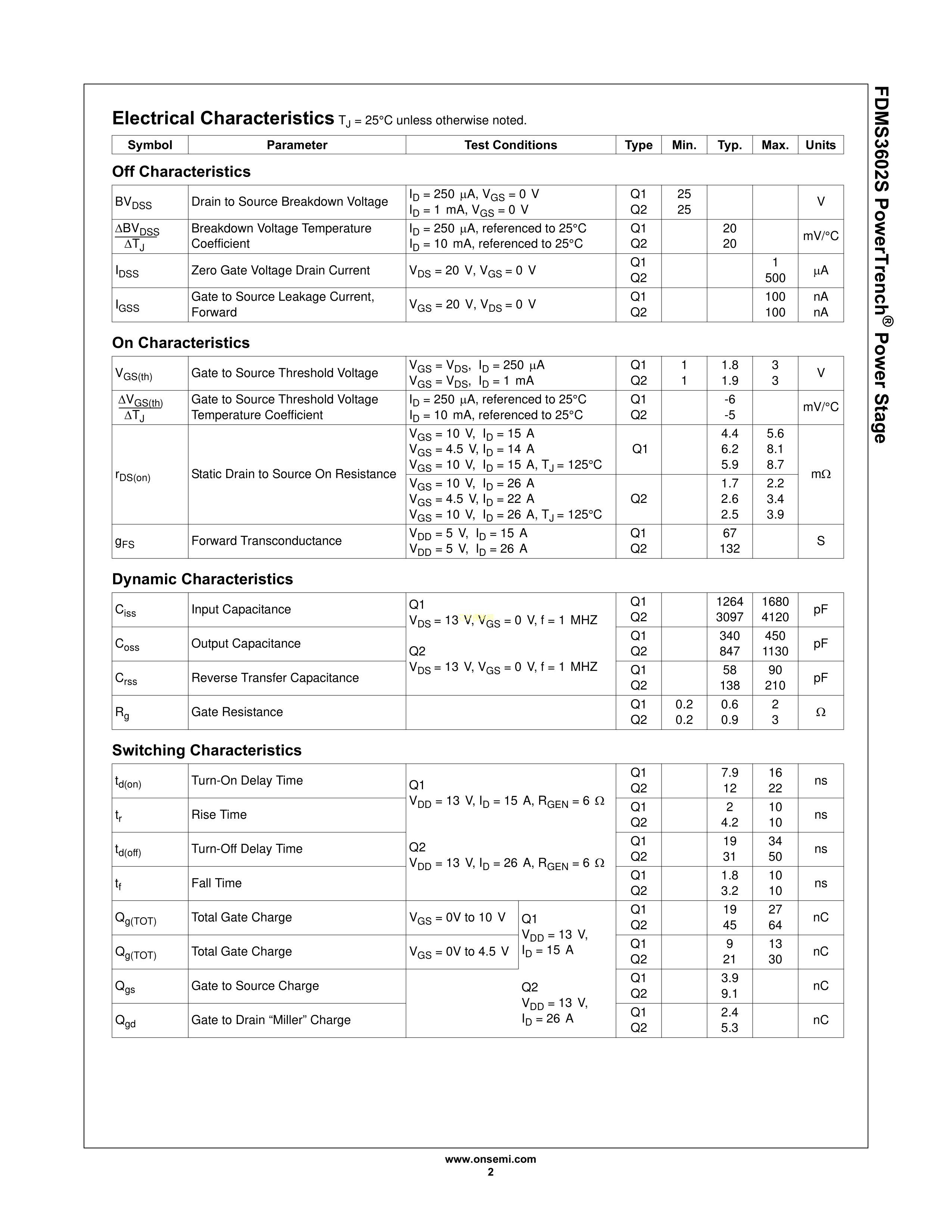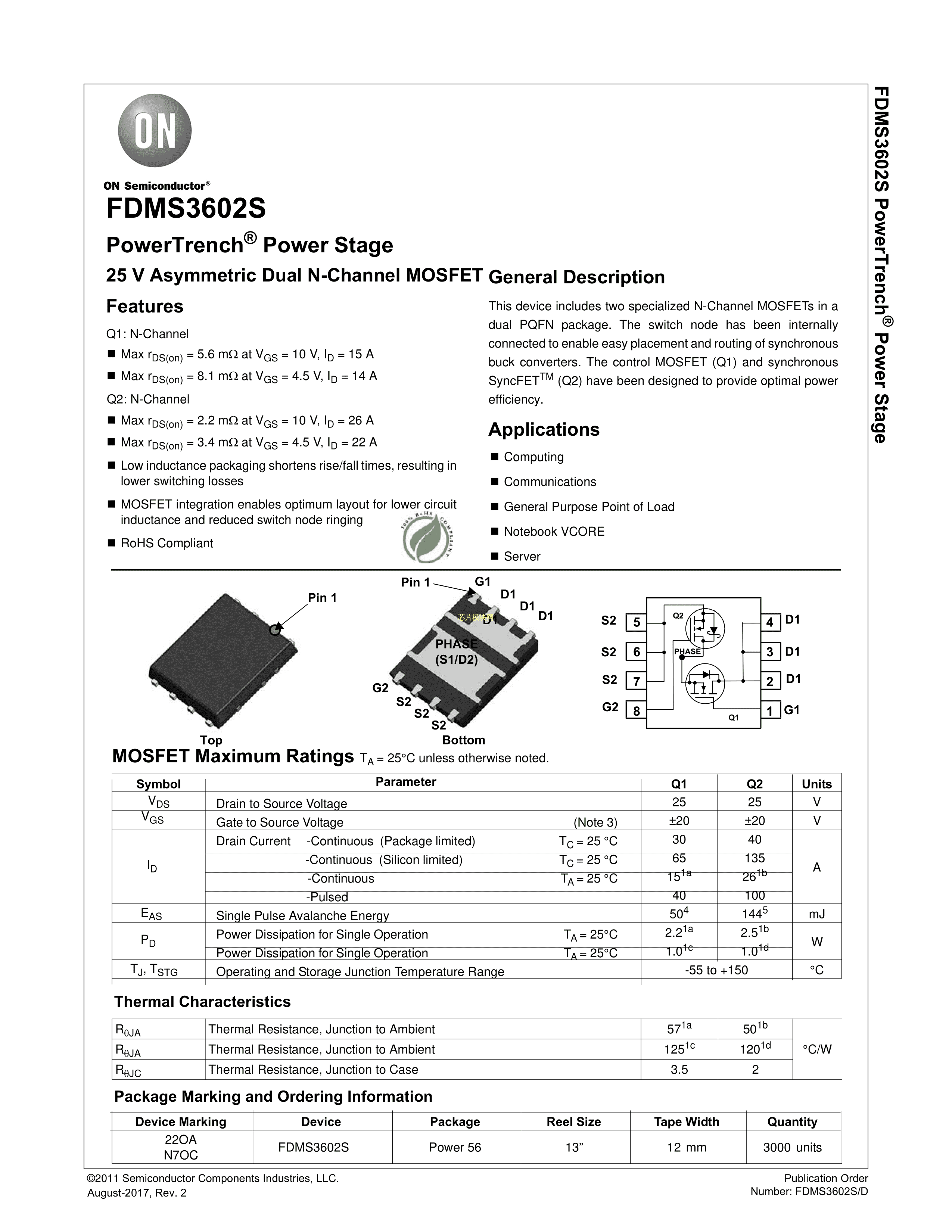 FDMS3602S数据手册Power-56封装onsemi(安森美)PDF规格书,中英文下载