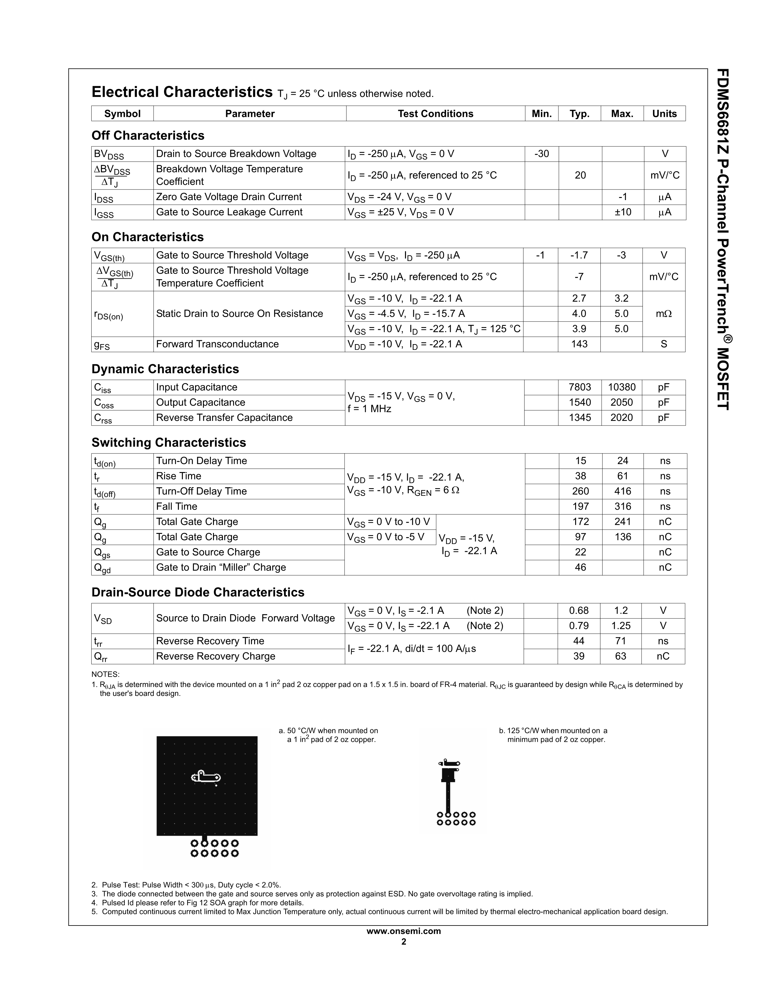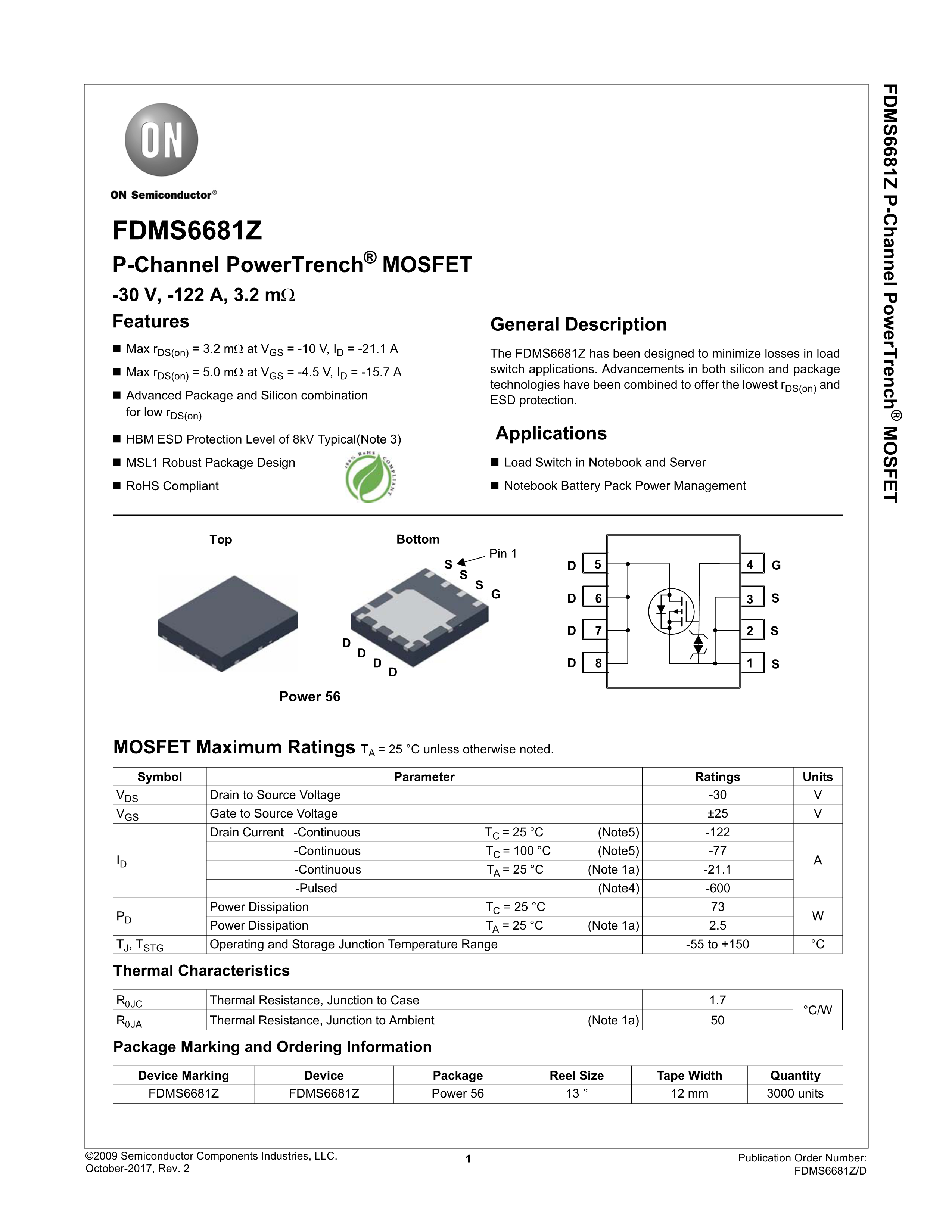 FDMS6681Z数据手册Power 56封装onsemi(安森美)PDF规格书,中英文下载