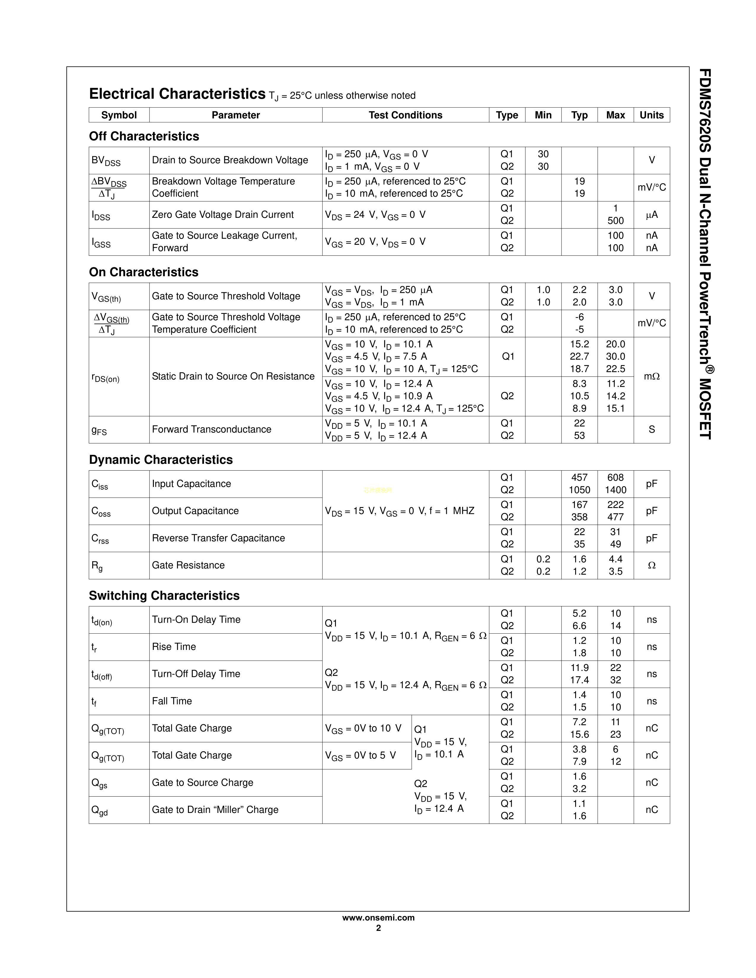 FDMS7620S数据手册Power-56-8封装onsemi(安森美)PDF规格书,中英文下载