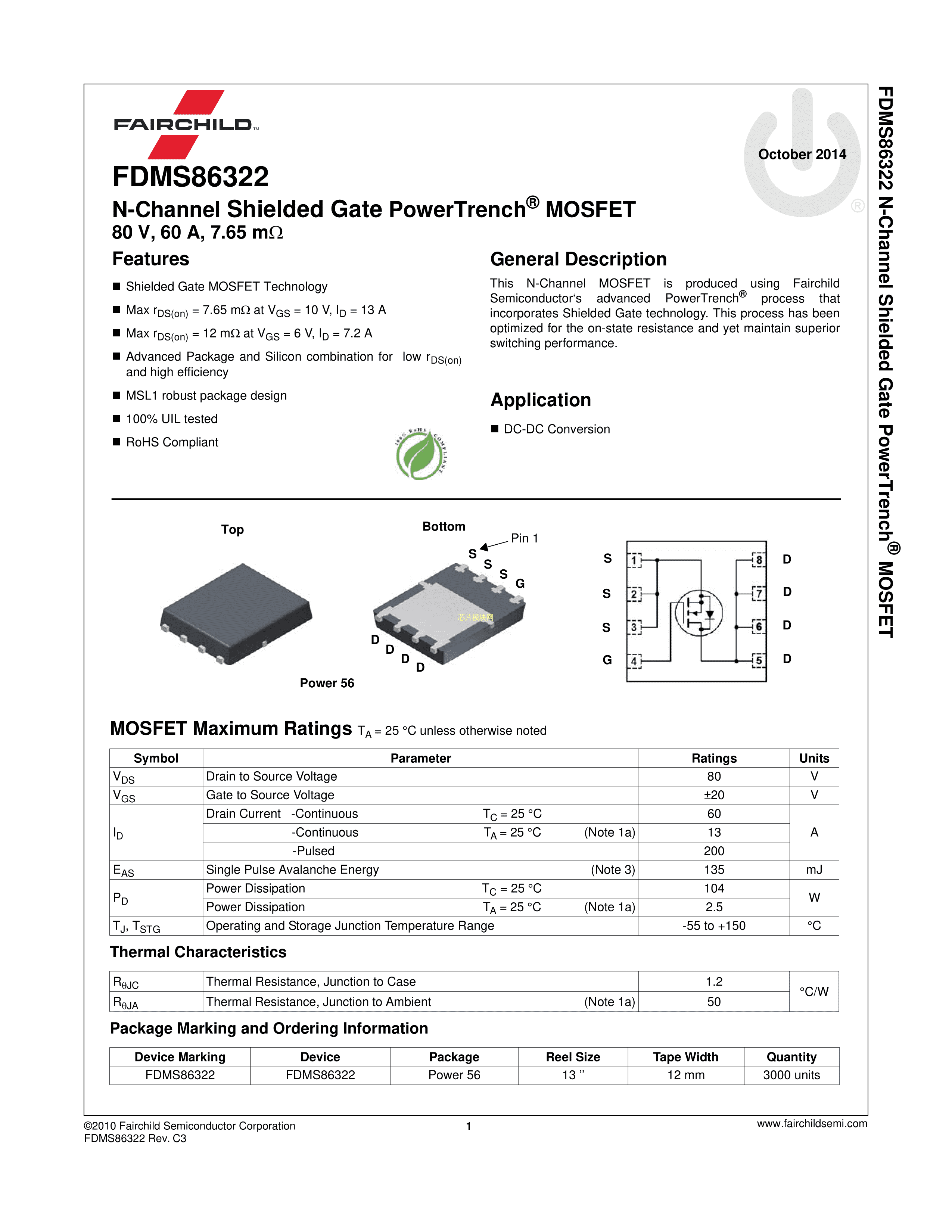 FDMS86322数据手册Power56封装onsemi(安森美)PDF规格书,中英文下载