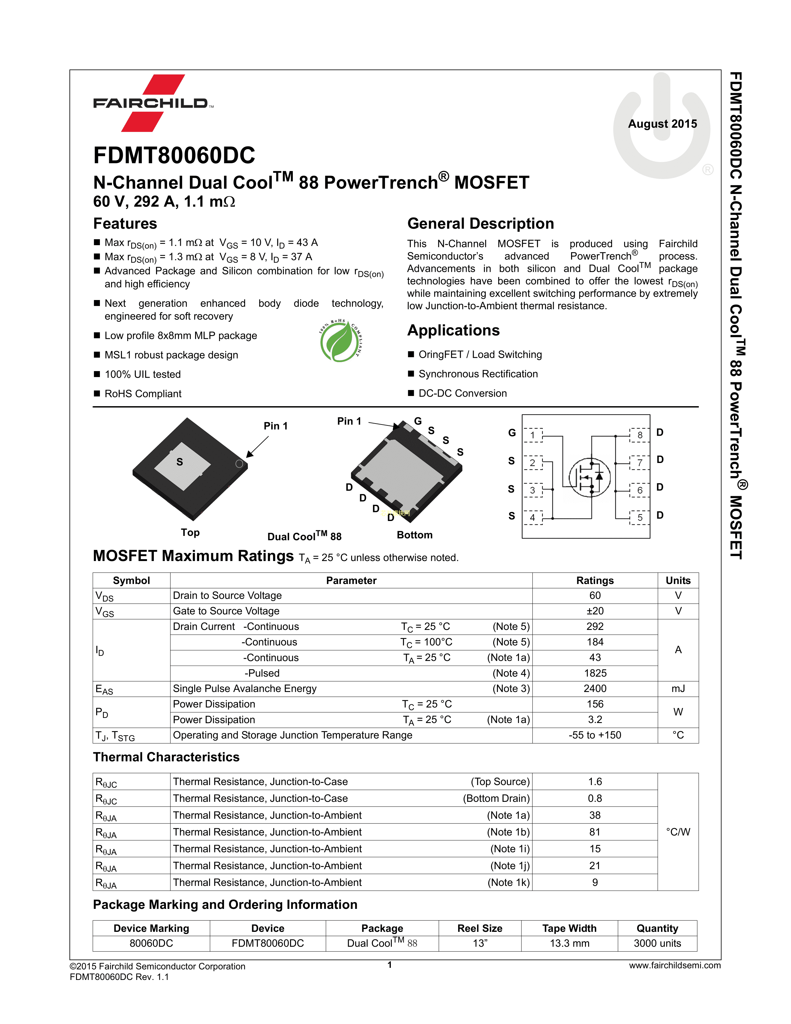 FDMT80060DC数据手册DualCool88-8封装onsemi(安森美)PDF规格书,中英文