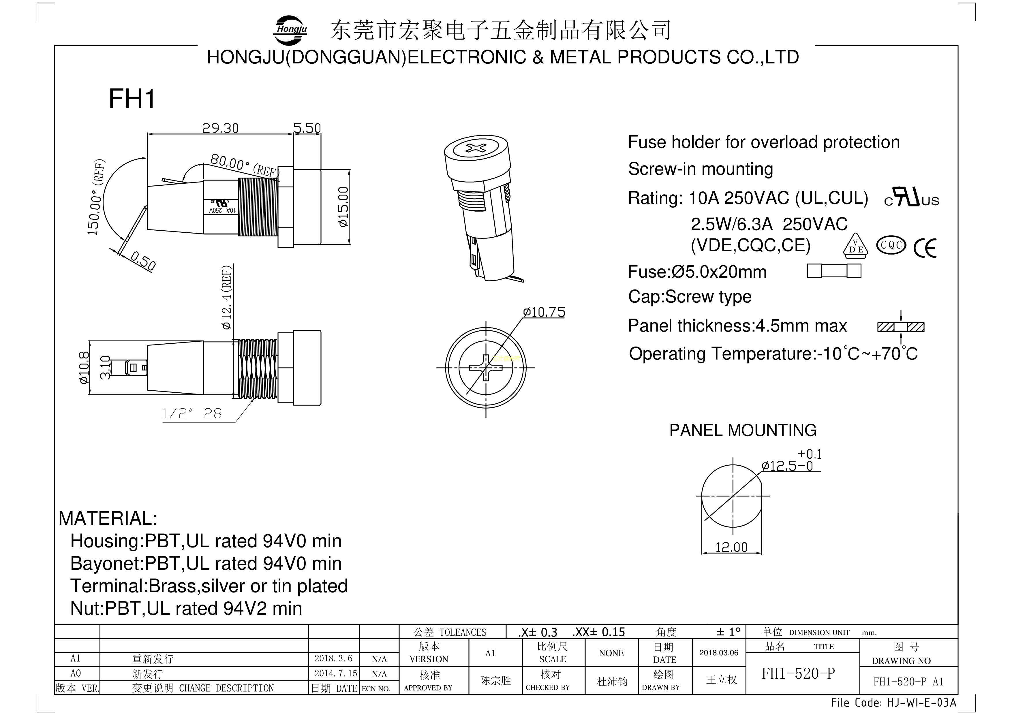 FH1-520-P数据手册-封装HONGJU(宏聚)PDF规格书,中英文下载