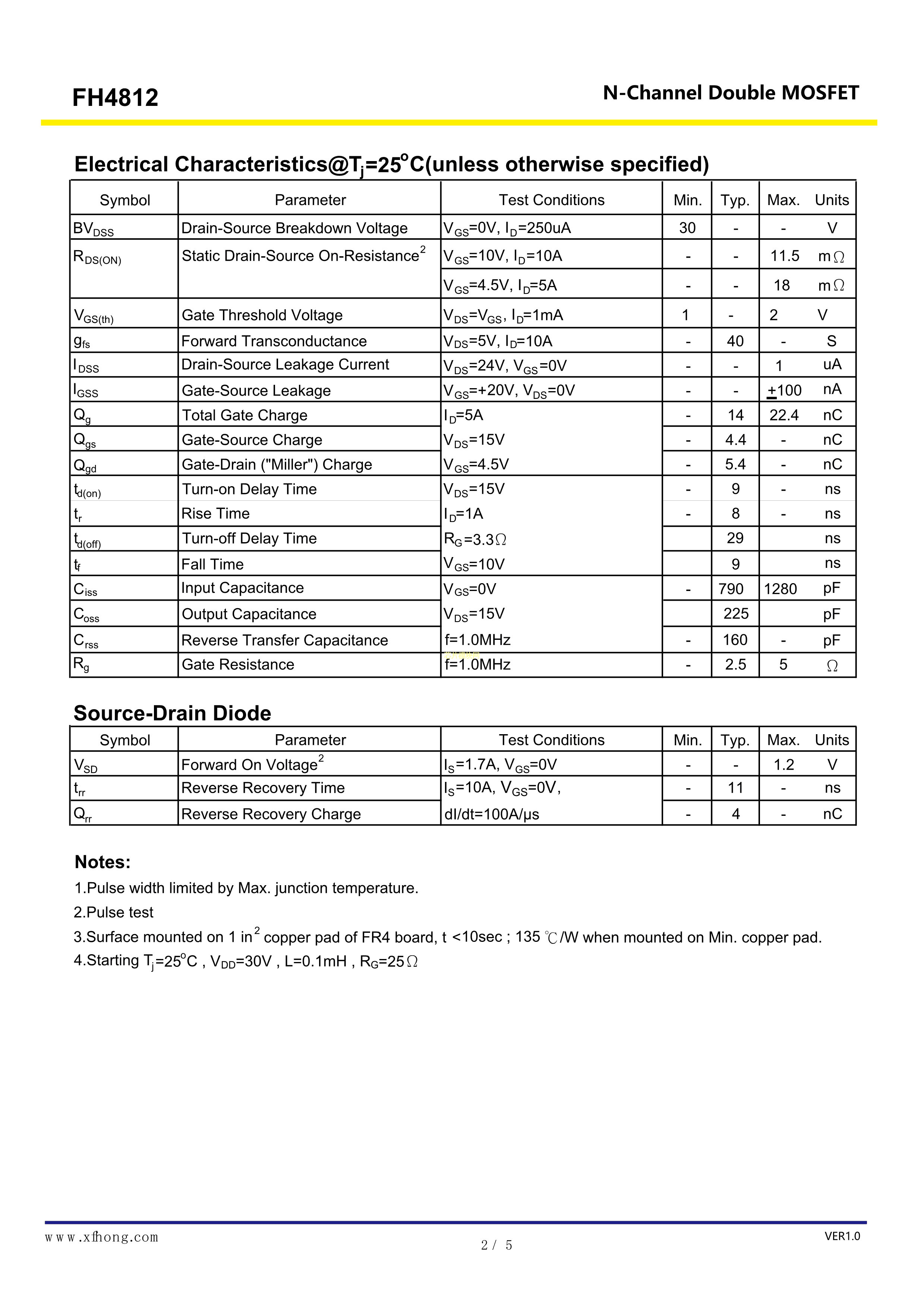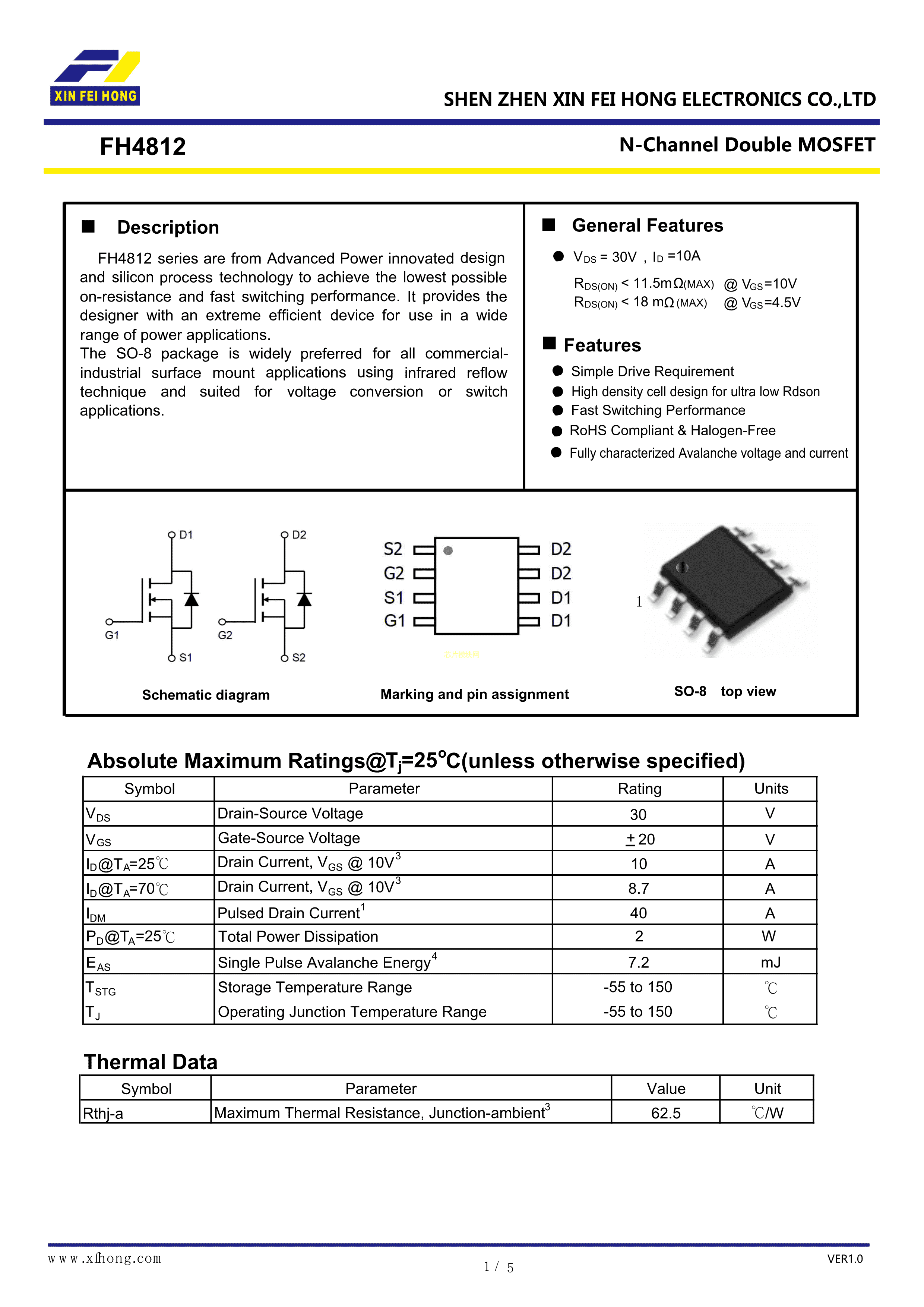 FH4812数据手册SO-8封装鑫飞宏PDF规格书,中英文下载