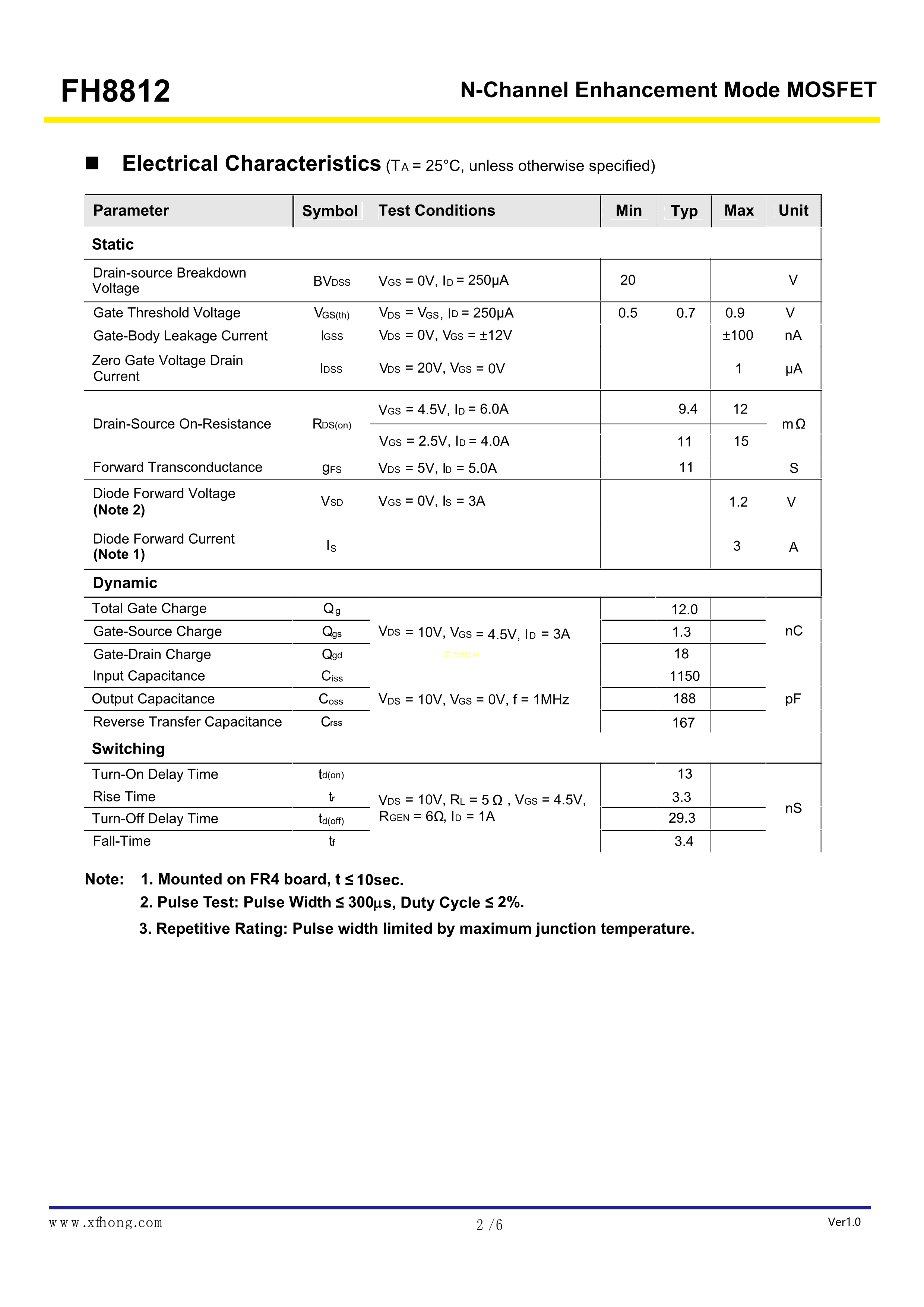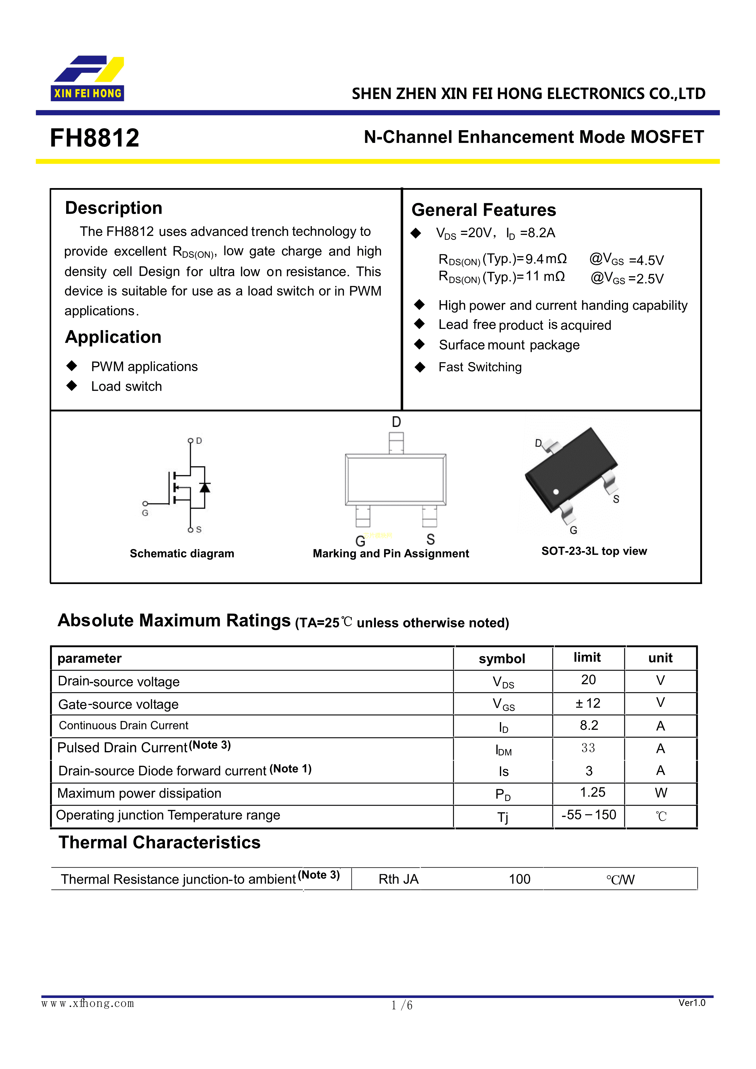 FH8812数据手册SOT-23-3L封装鑫飞宏PDF规格书,中英文下载