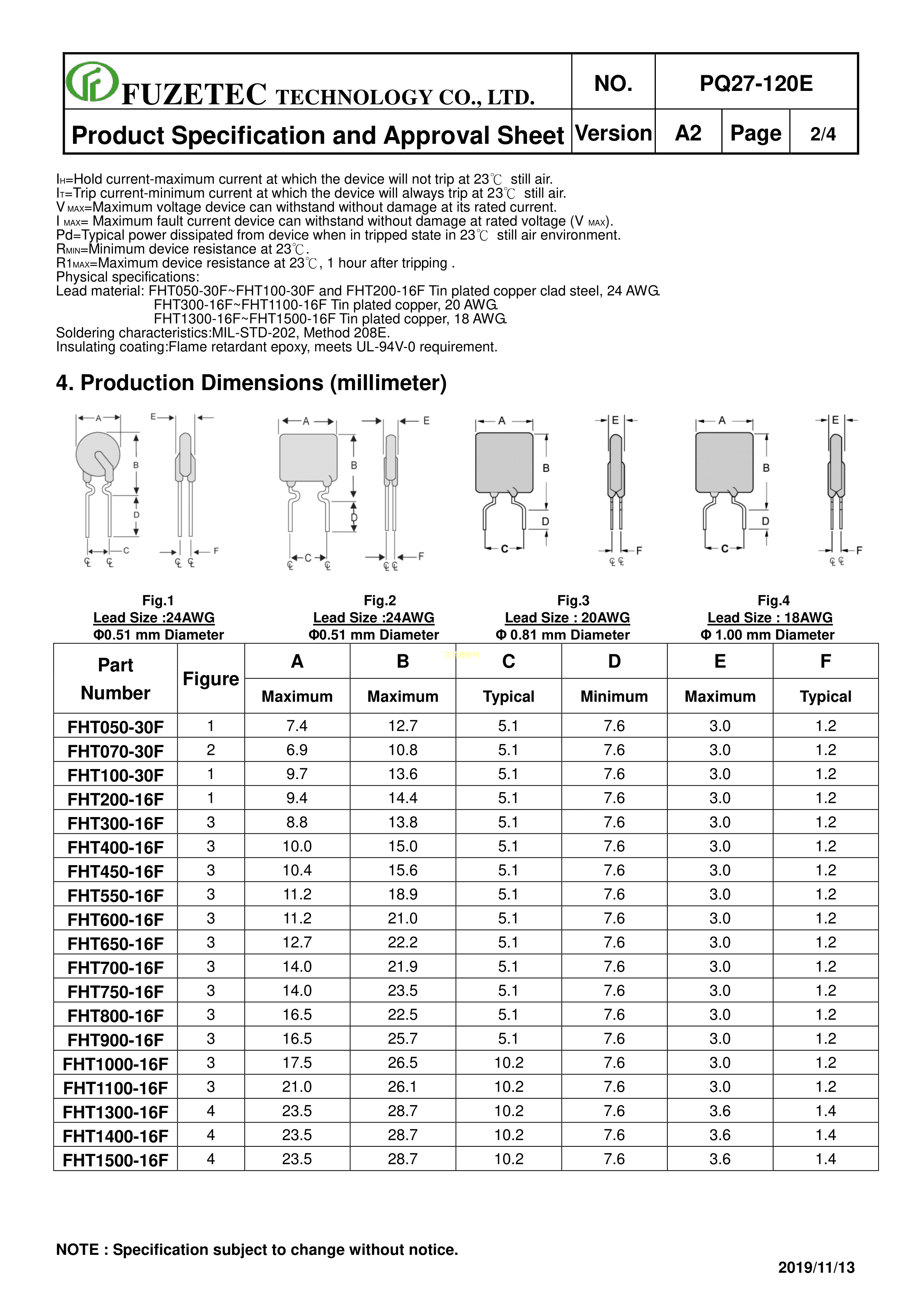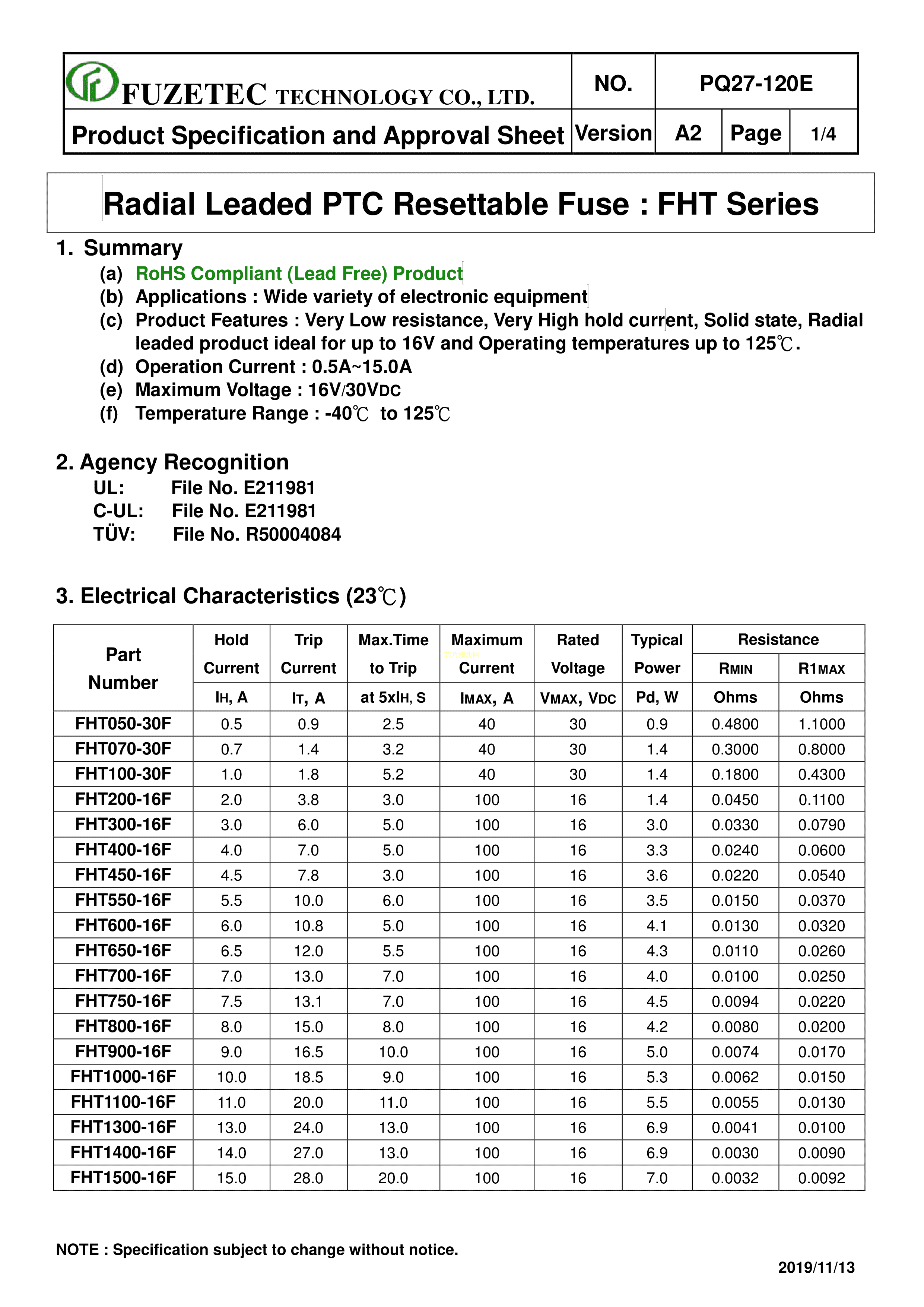 FHT050-30F数据手册径向引线封装FUZETEC(台湾富致)PDF规格书,中英文下载