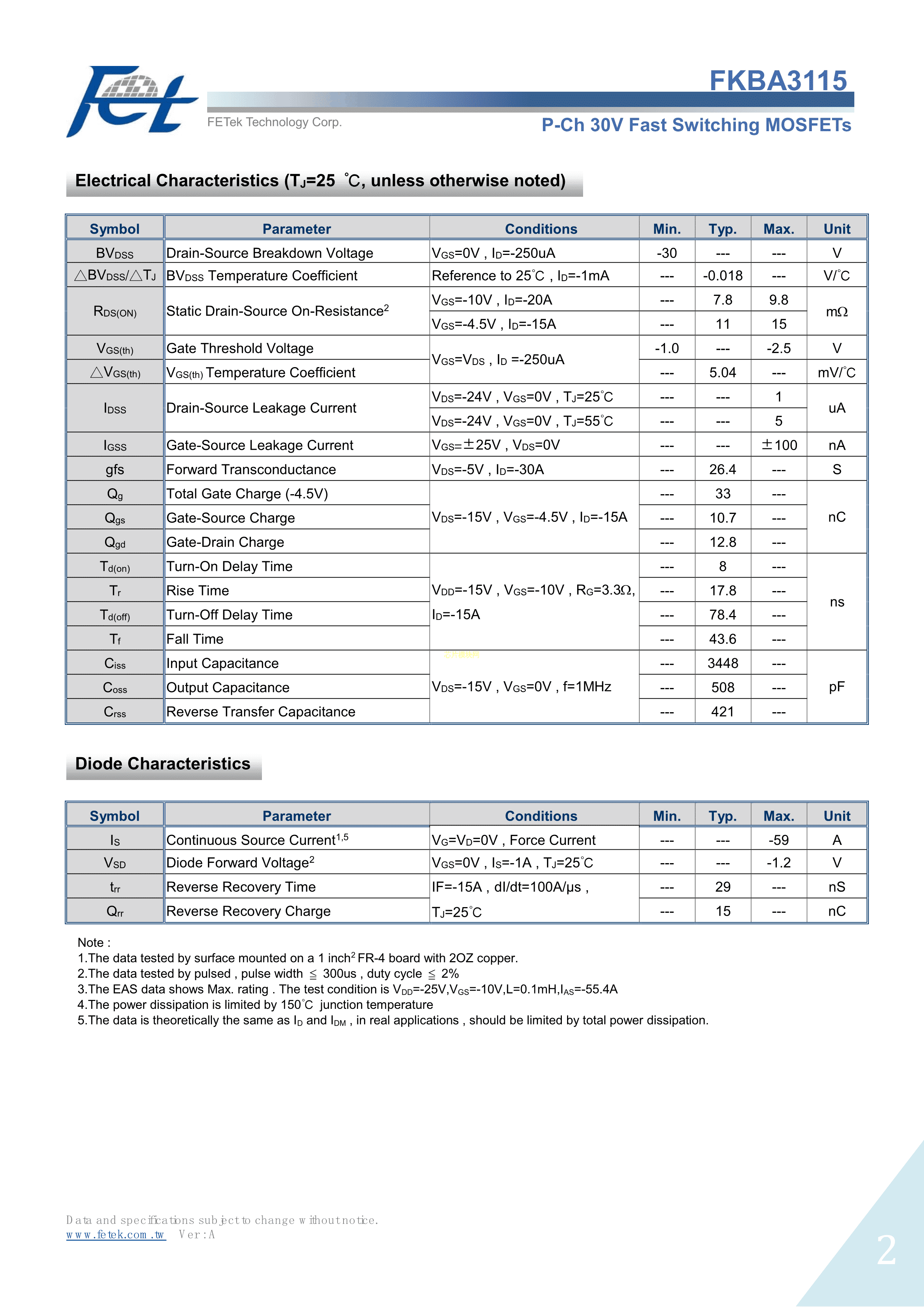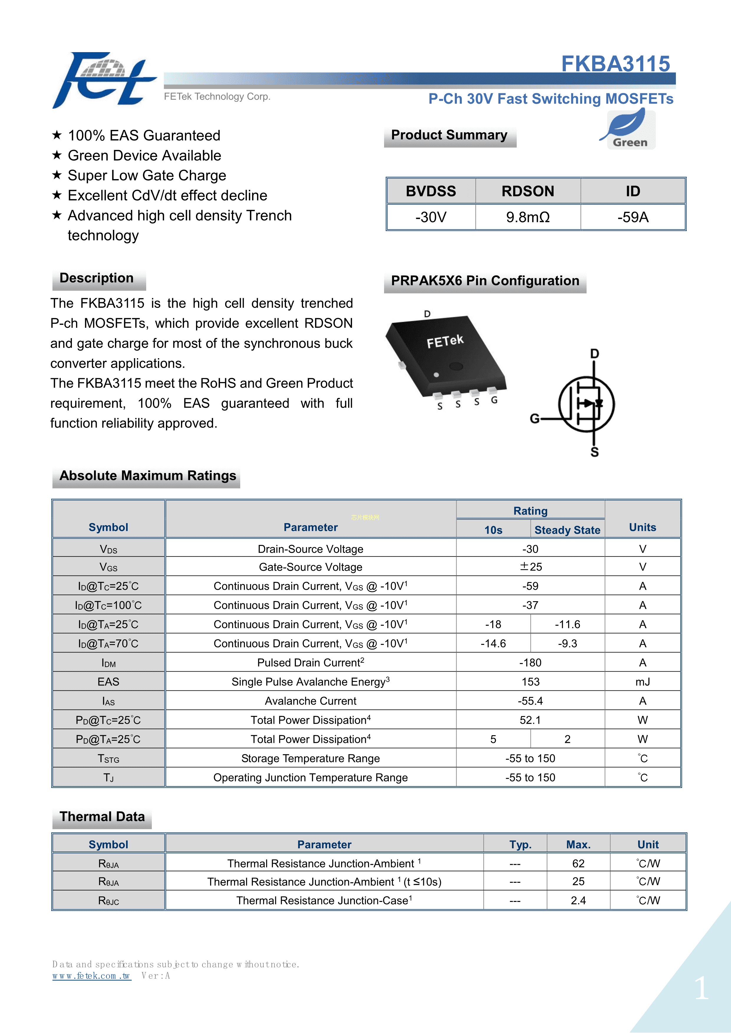 FKBA3115数据手册PRPAK5x6封装FETek(东沅)PDF规格书,中英文下载