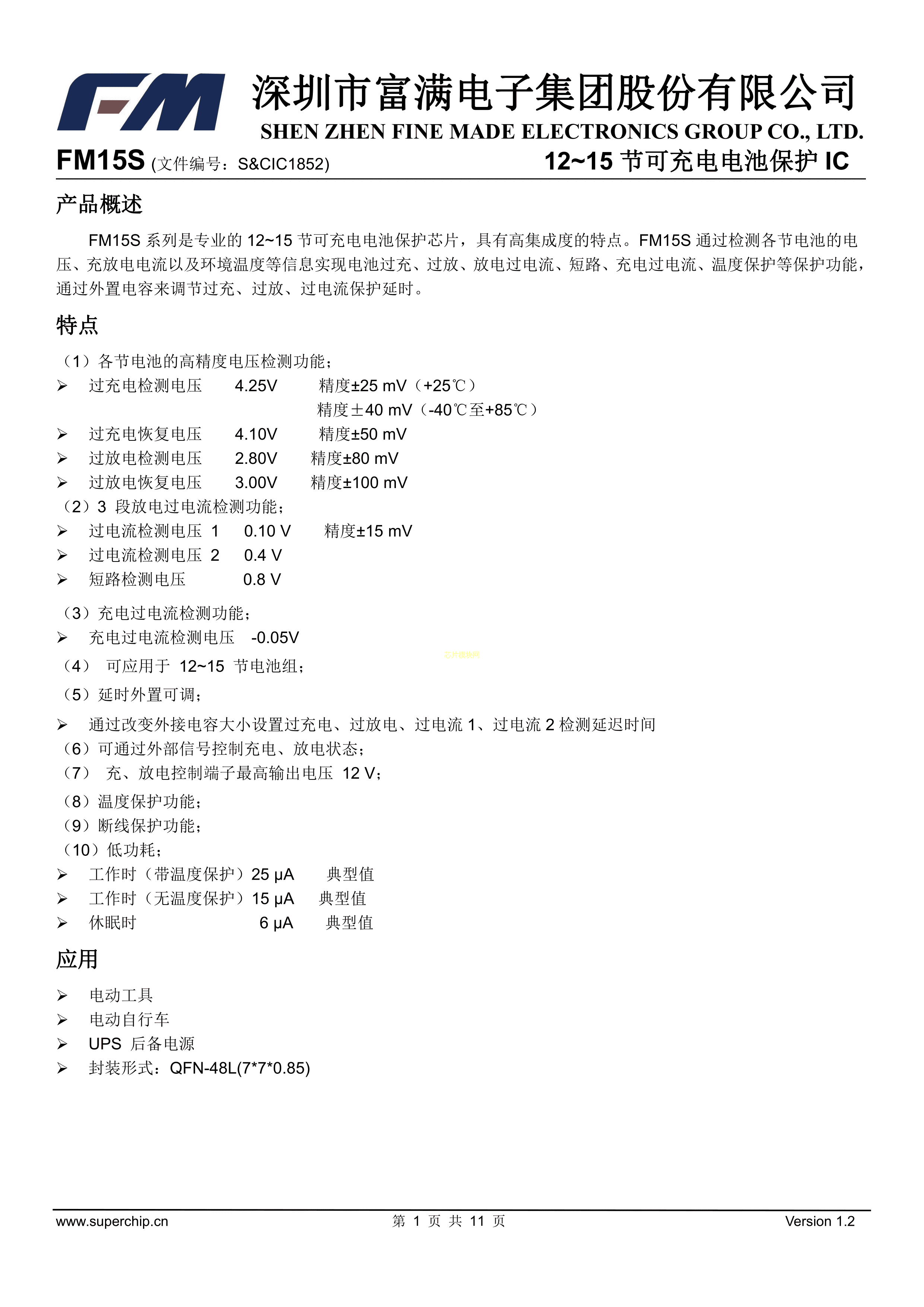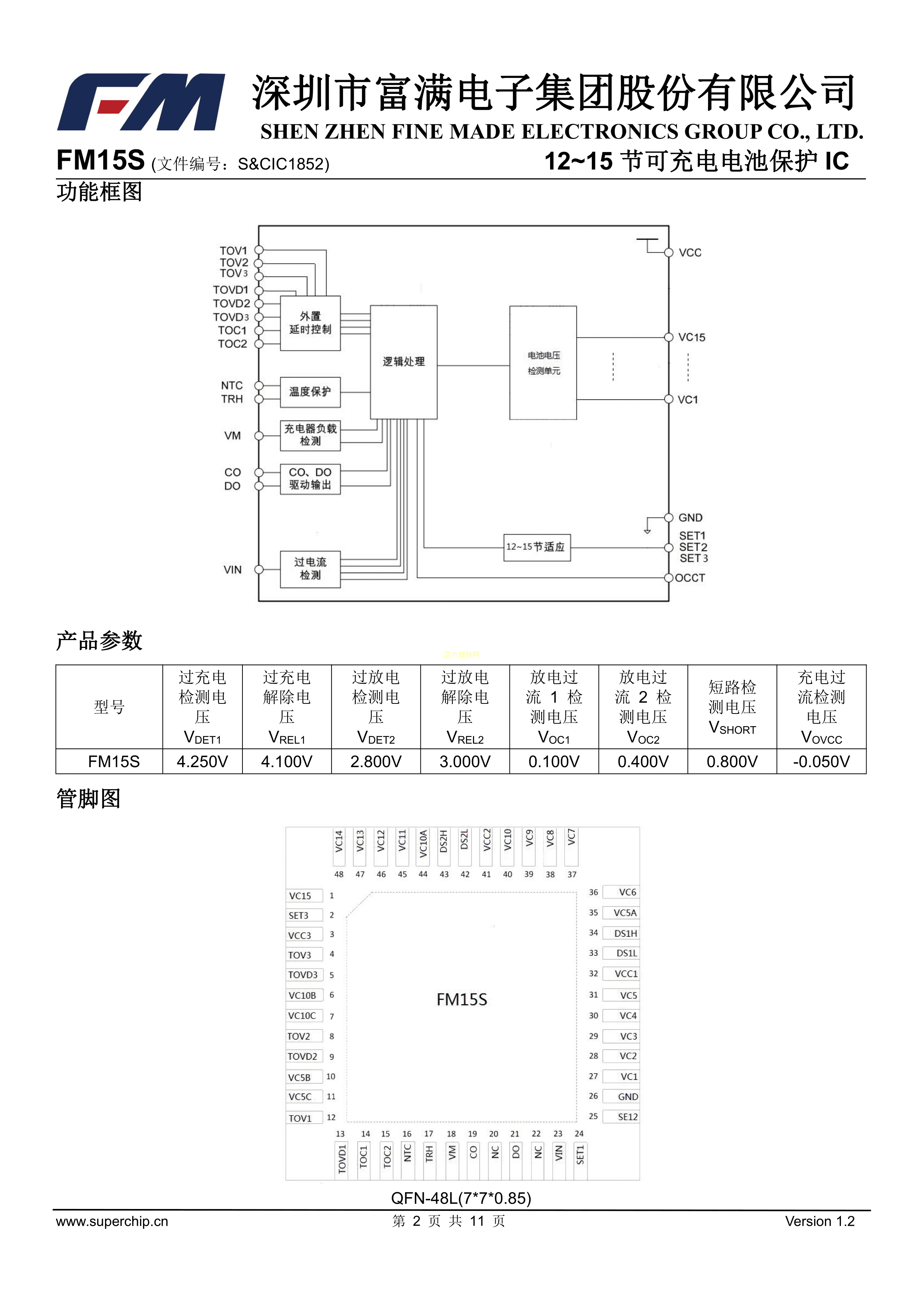 FM15S数据手册QFN-48L封装FM(富满)PDF规格书,中英文下载