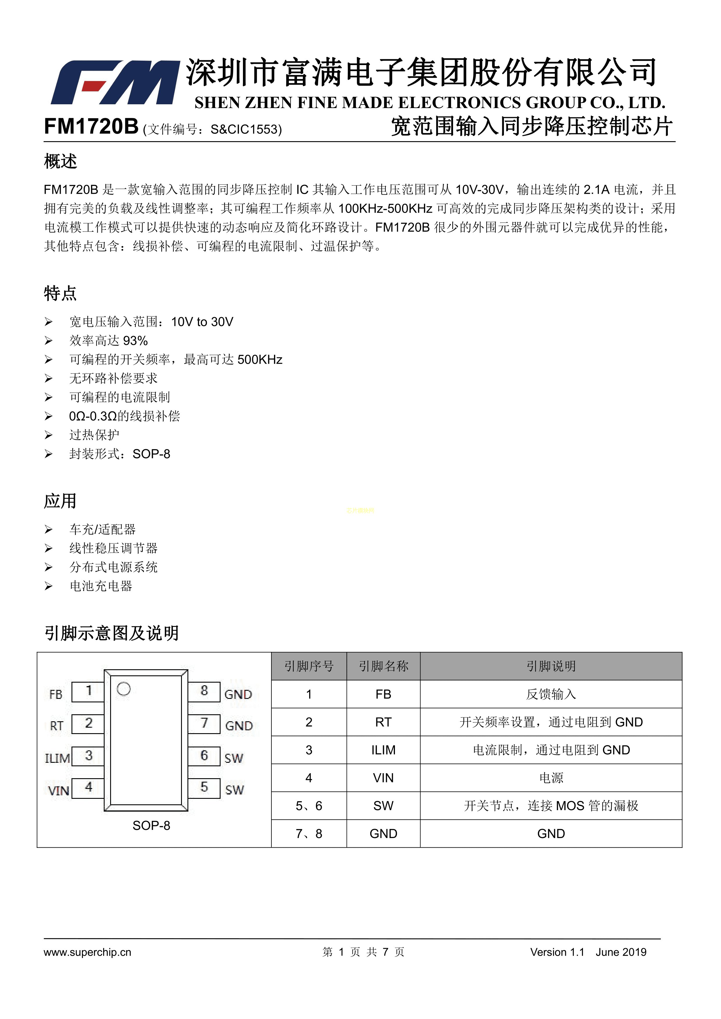 FM1720B数据手册SOP-8封装FM(富满)PDF规格书,中英文下载