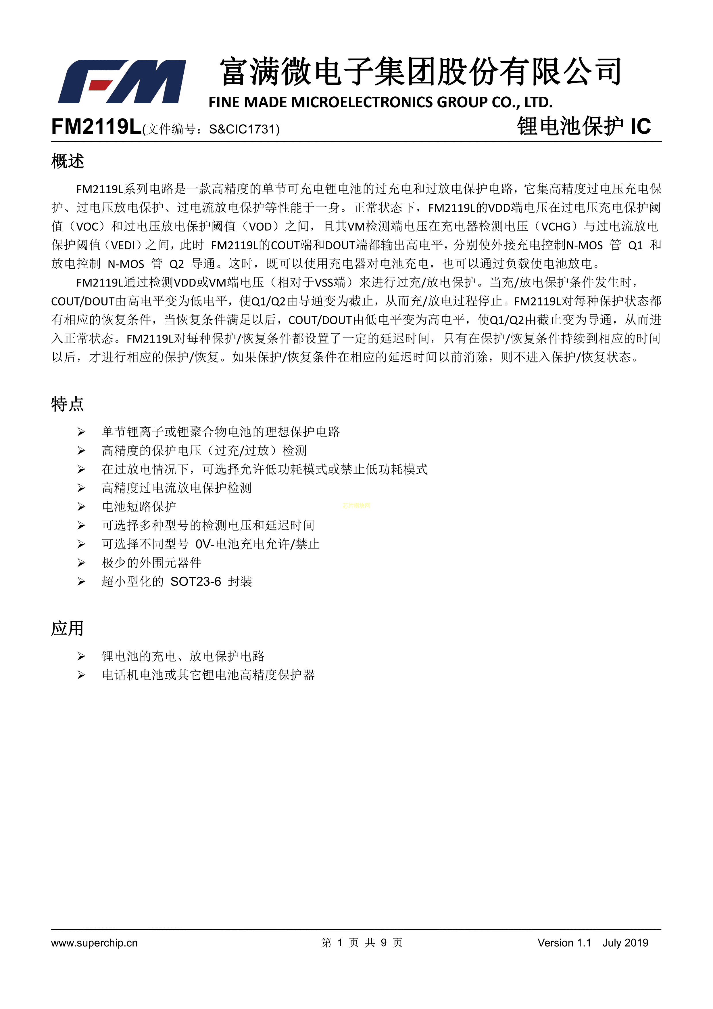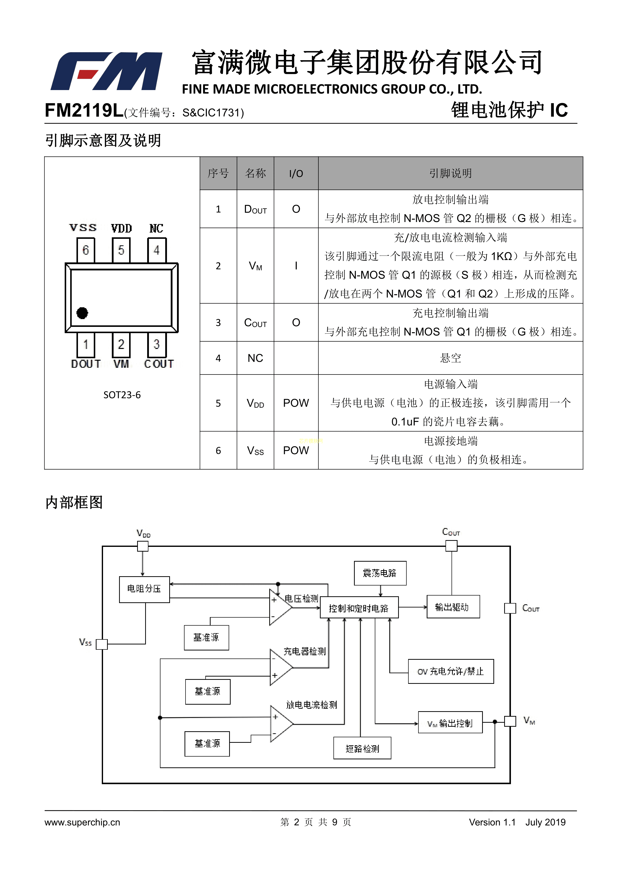 FM2119L数据手册SOT-23-6封装FM(富满)PDF规格书,中英文下载