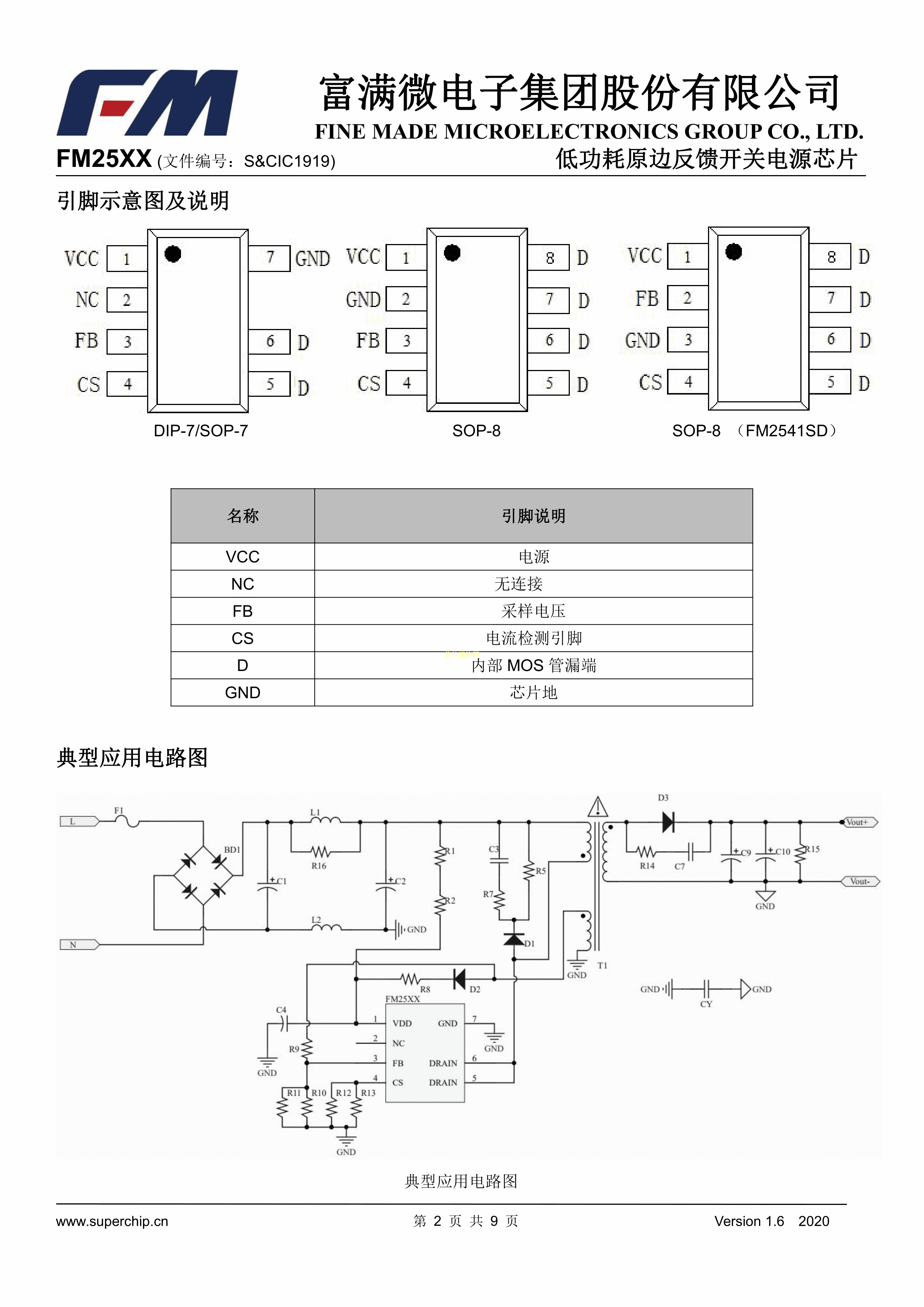 FM2539D数据手册DIP-7封装FM(富满)PDF规格书,中英文下载