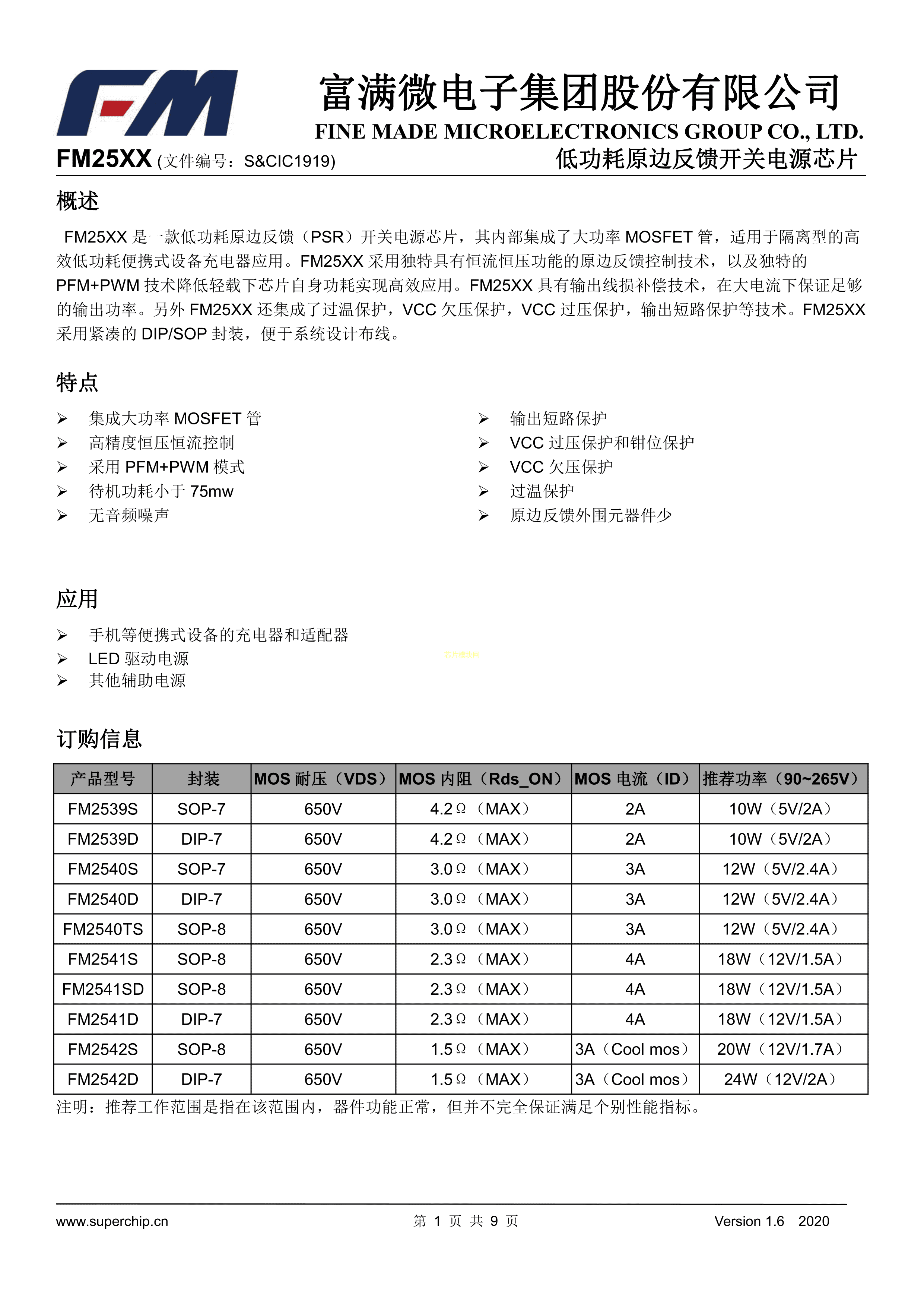 FM2539S数据手册SOP-7封装FM(富满)PDF规格书,中英文下载