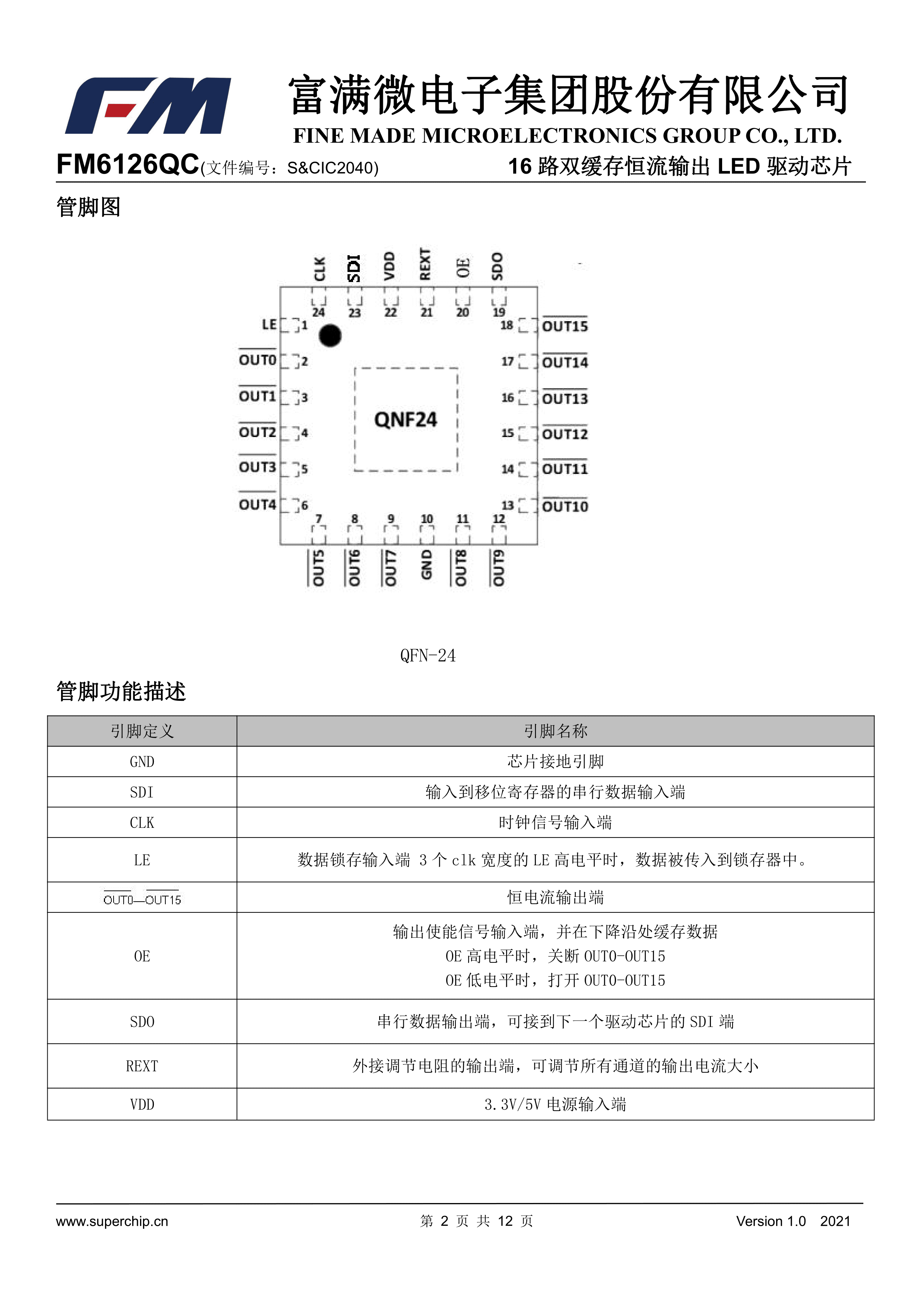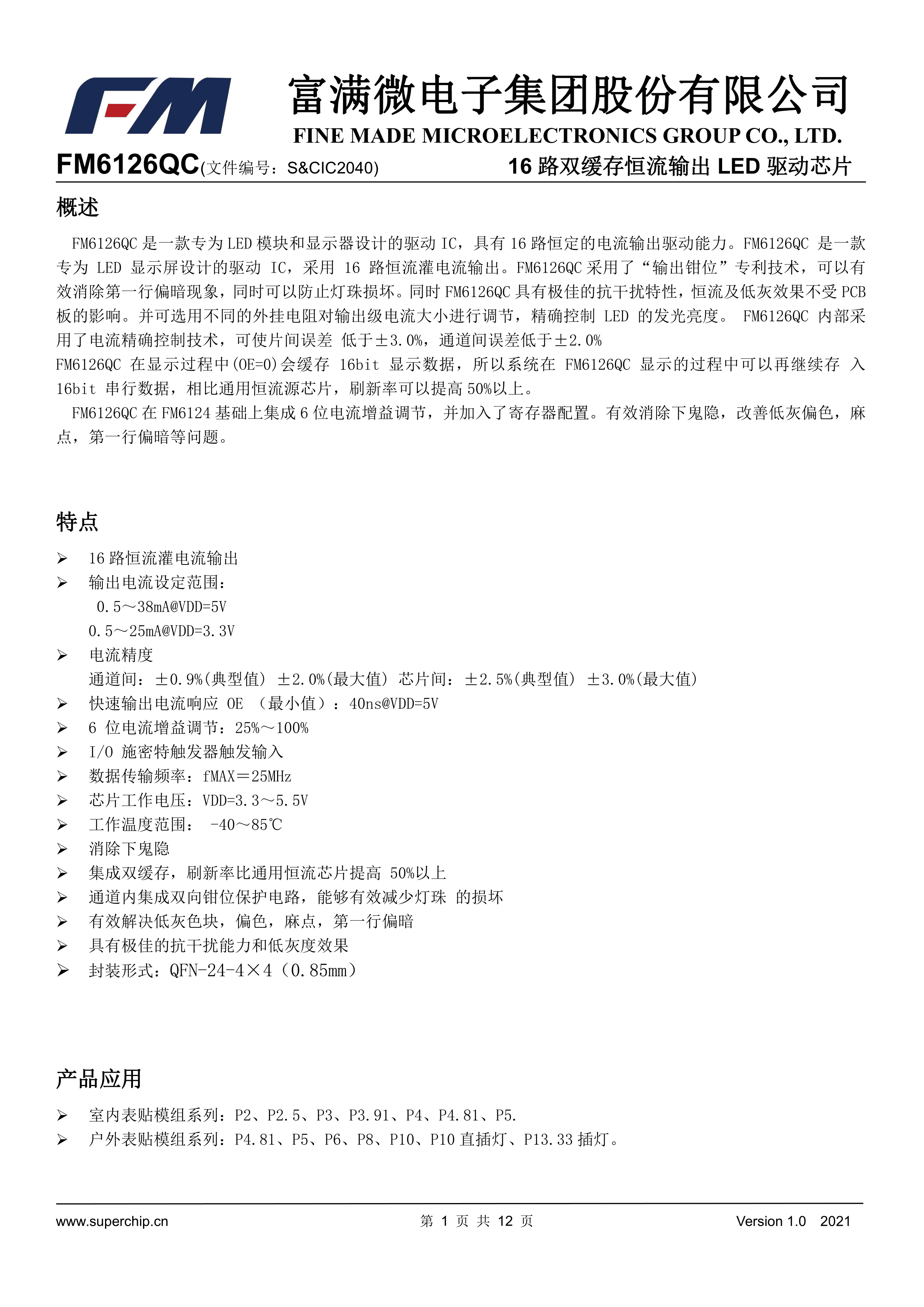 FM6126QC数据手册QFN-24封装FM(富满)PDF规格书,中英文下载