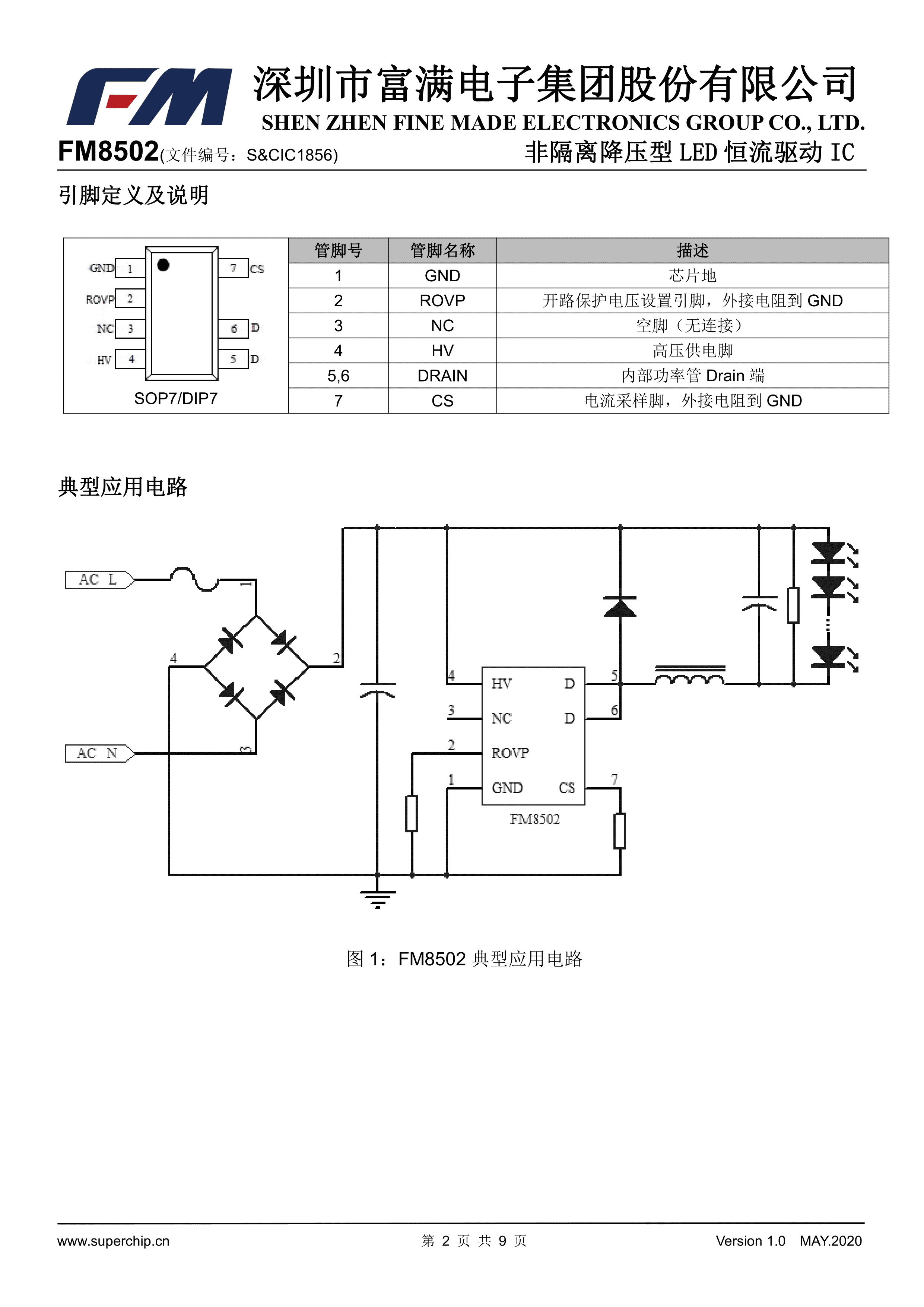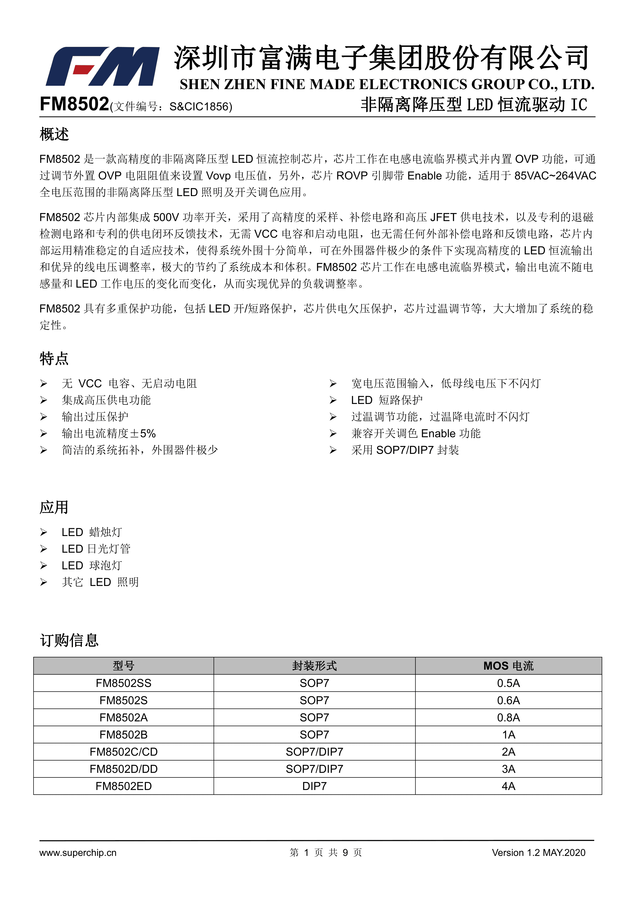 FM8502D数据手册SOP-7封装FM(富满)PDF规格书,中英文下载