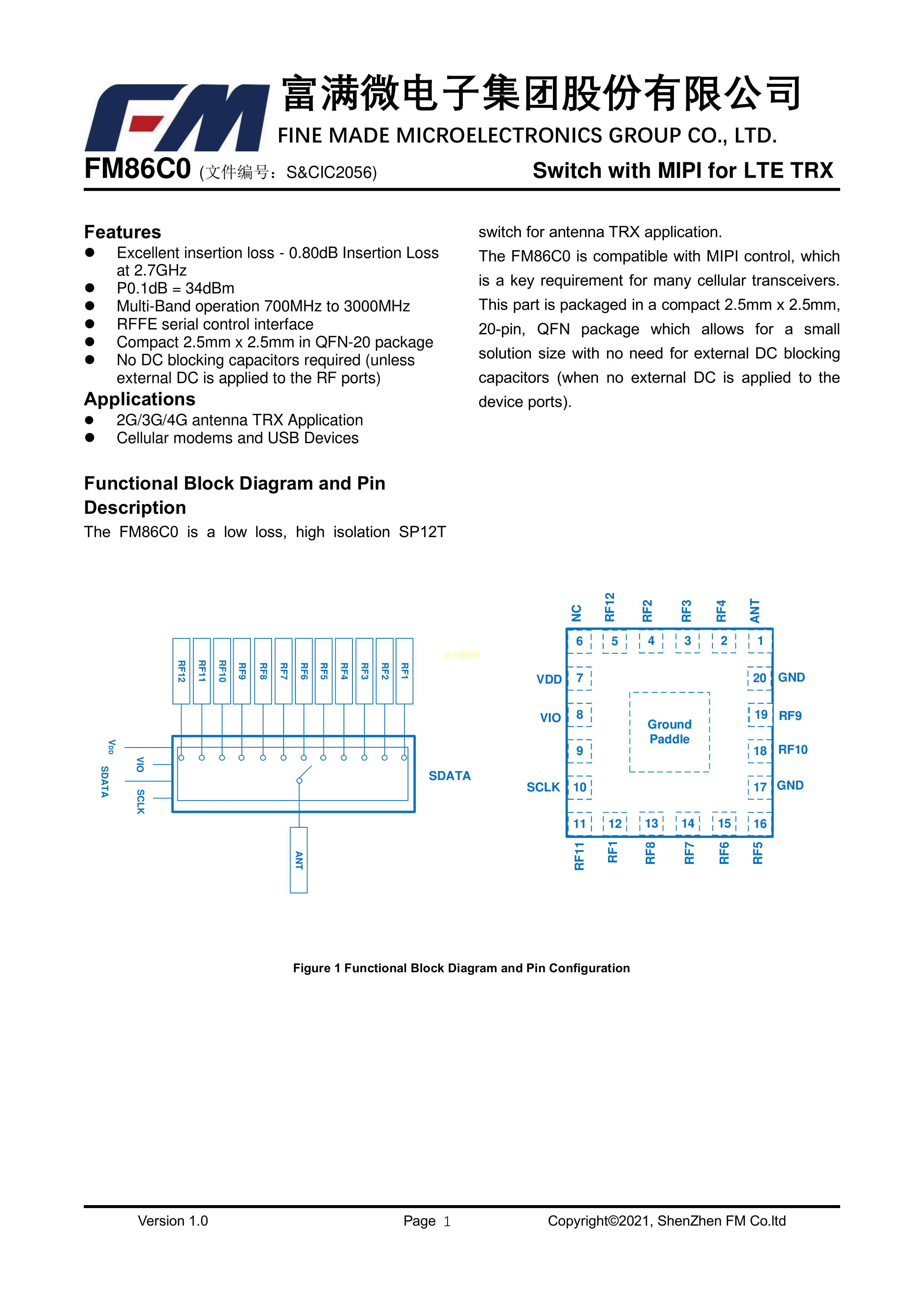 FM86C0数据手册QFN-20封装FM(富满)PDF规格书,中英文下载