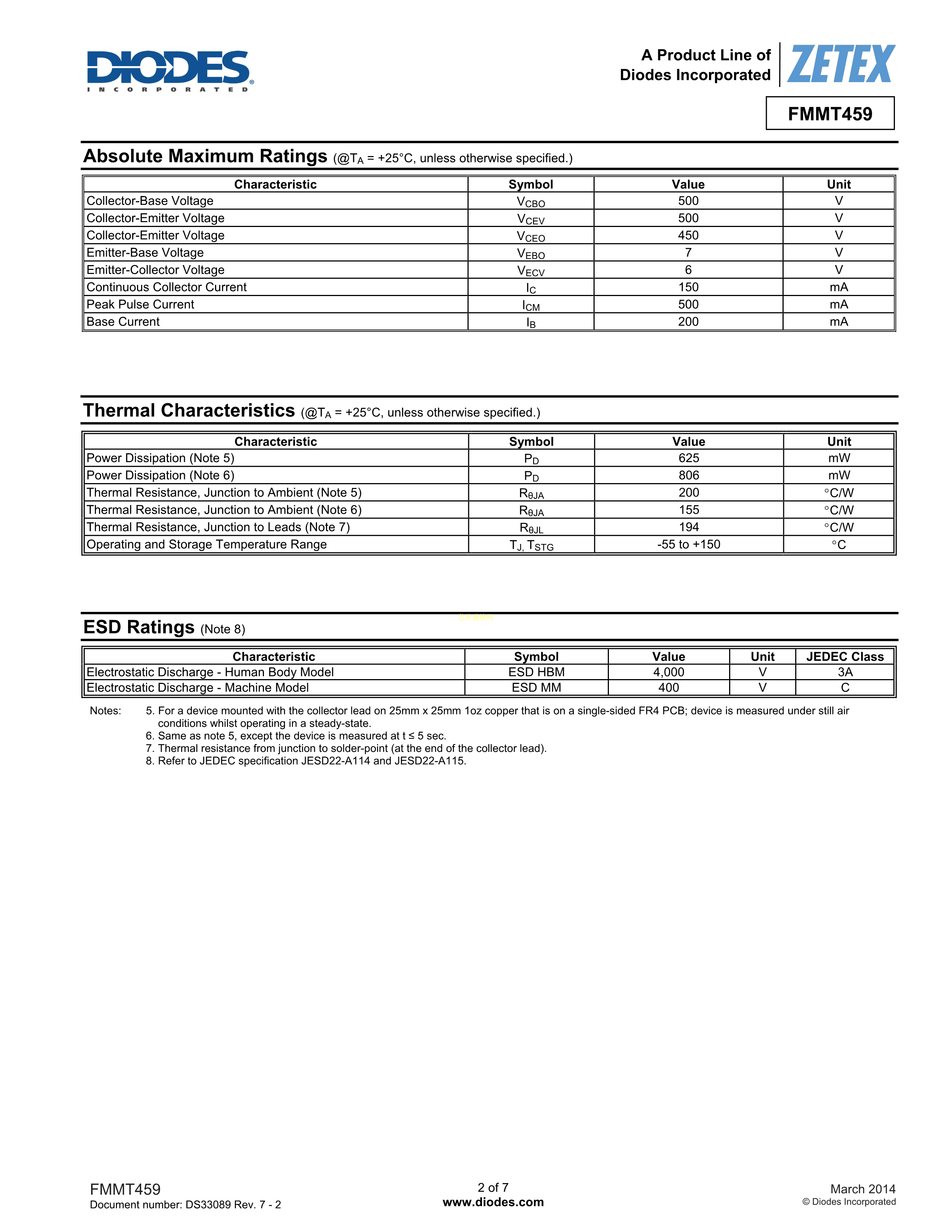 FMMT459TA数据手册SOT-23封装DIODES(美台)PDF规格书,中英文下载