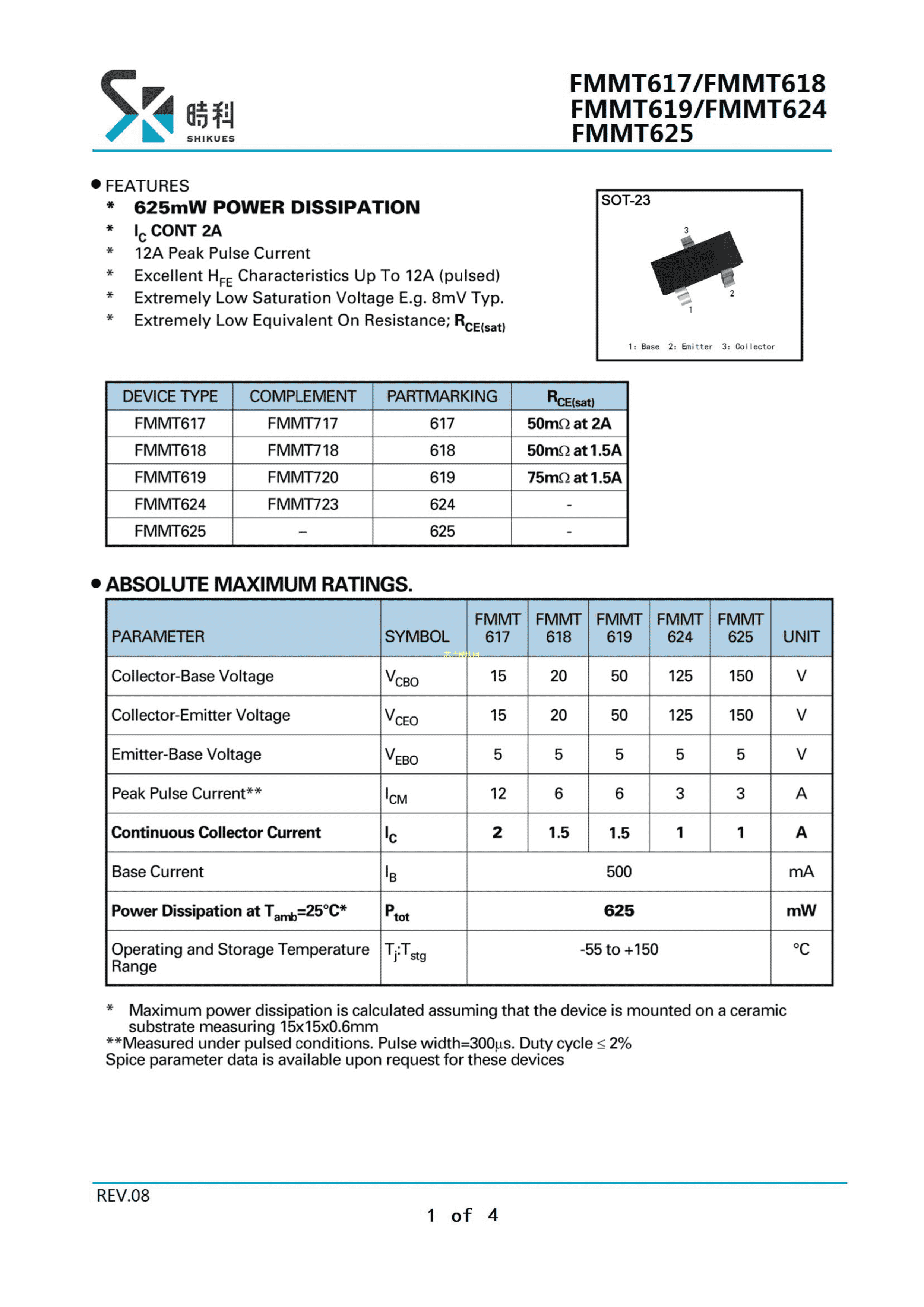 FMMT617数据手册SOT-23封装SHIKUES(时科)PDF规格书,中英文下载