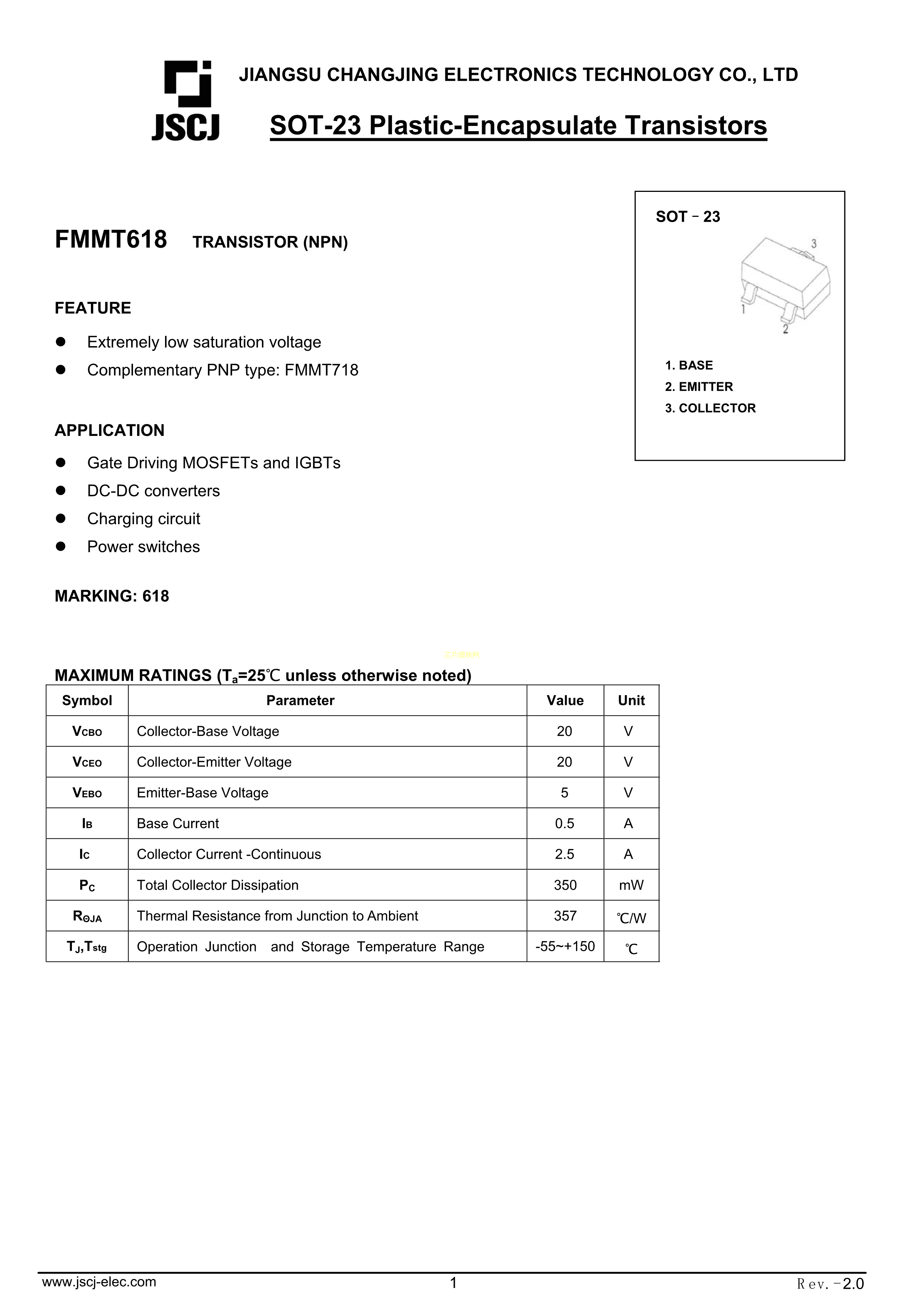 FMMT618数据手册SOT-23封装CJ(江苏长电-长晶)PDF规格书,中英文下载