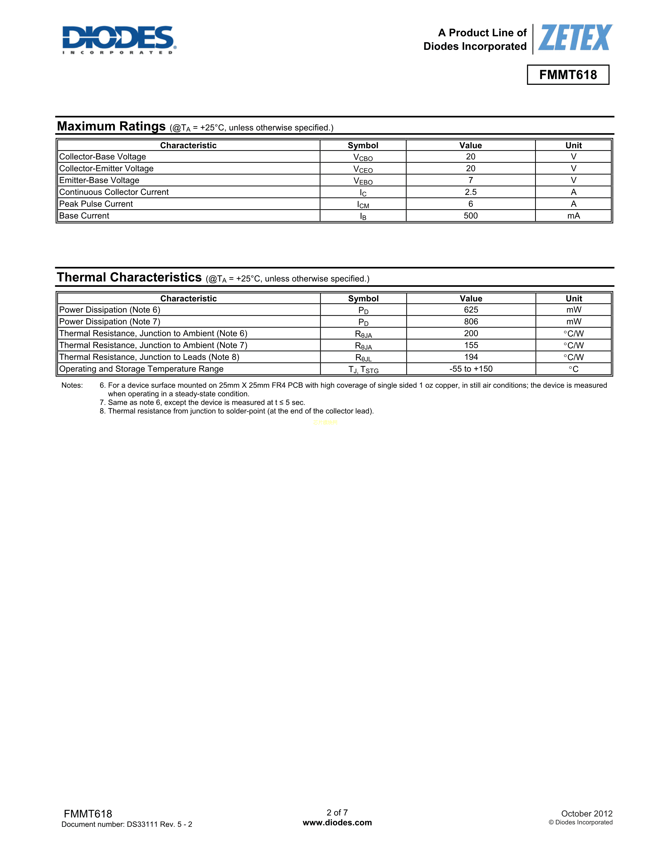 FMMT618TA数据手册SOT-23-3封装DIODES(美台)PDF规格书,中英文下载