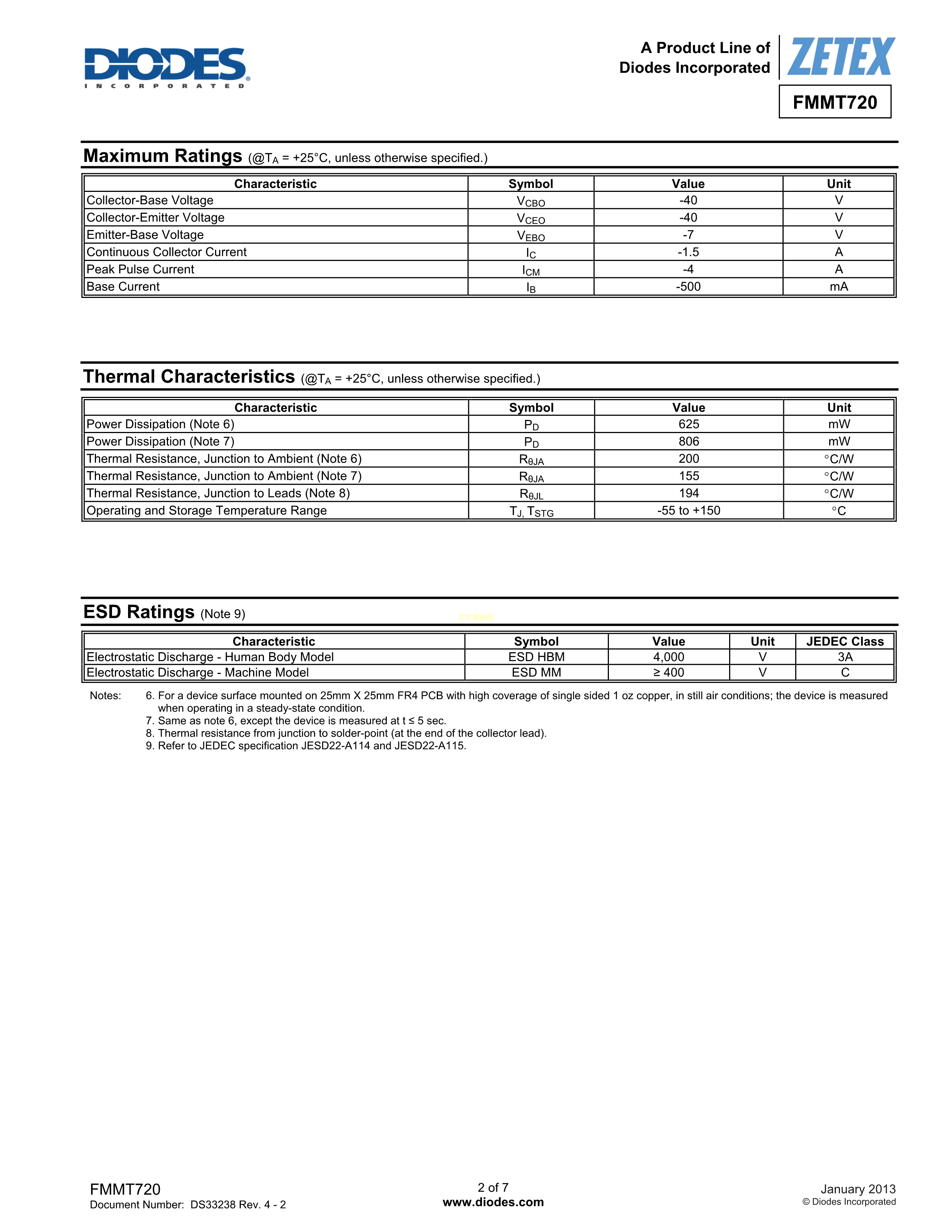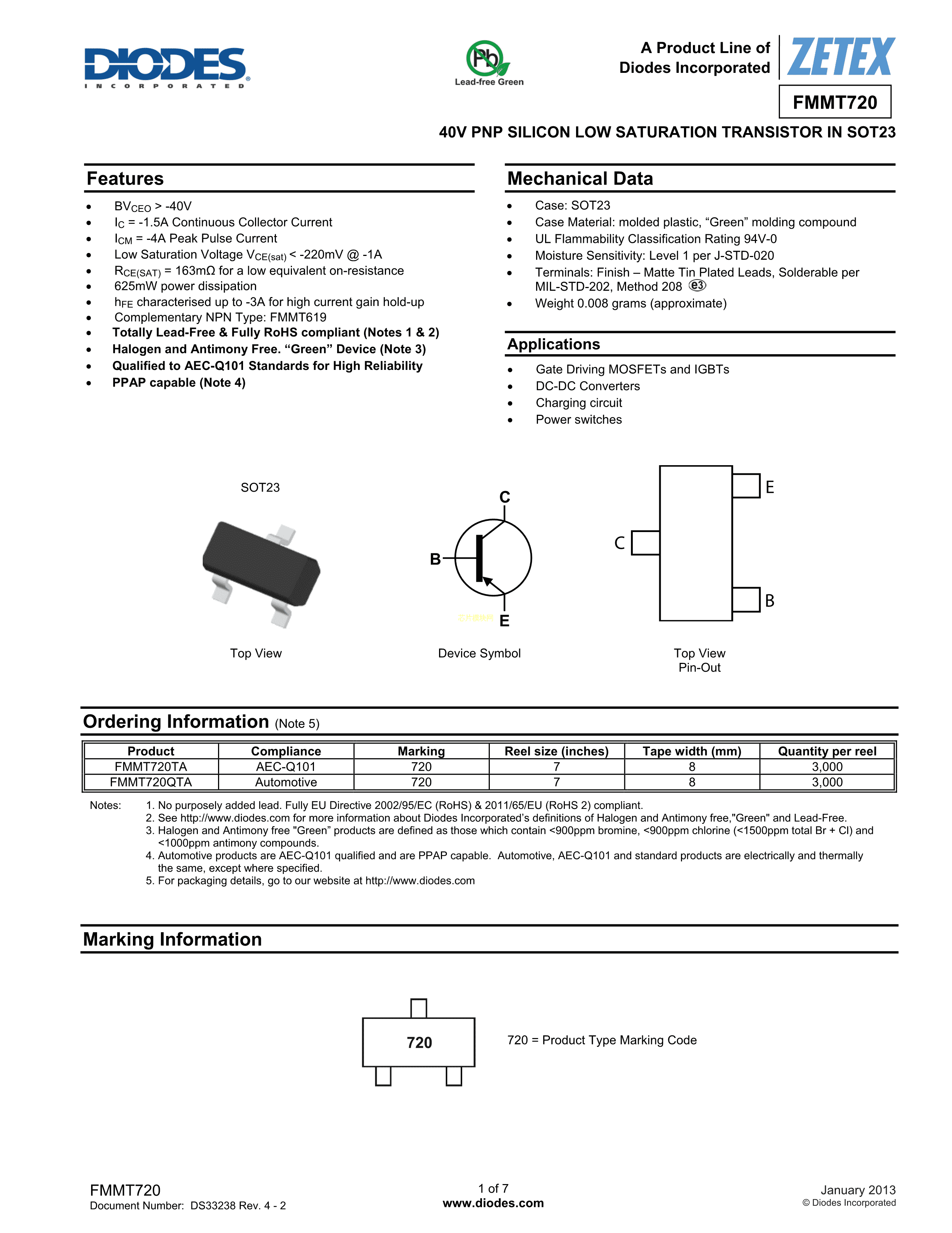 FMMT720TA数据手册SOT-23(SOT-23-3)封装DIODES(美台)PDF规格书,中英