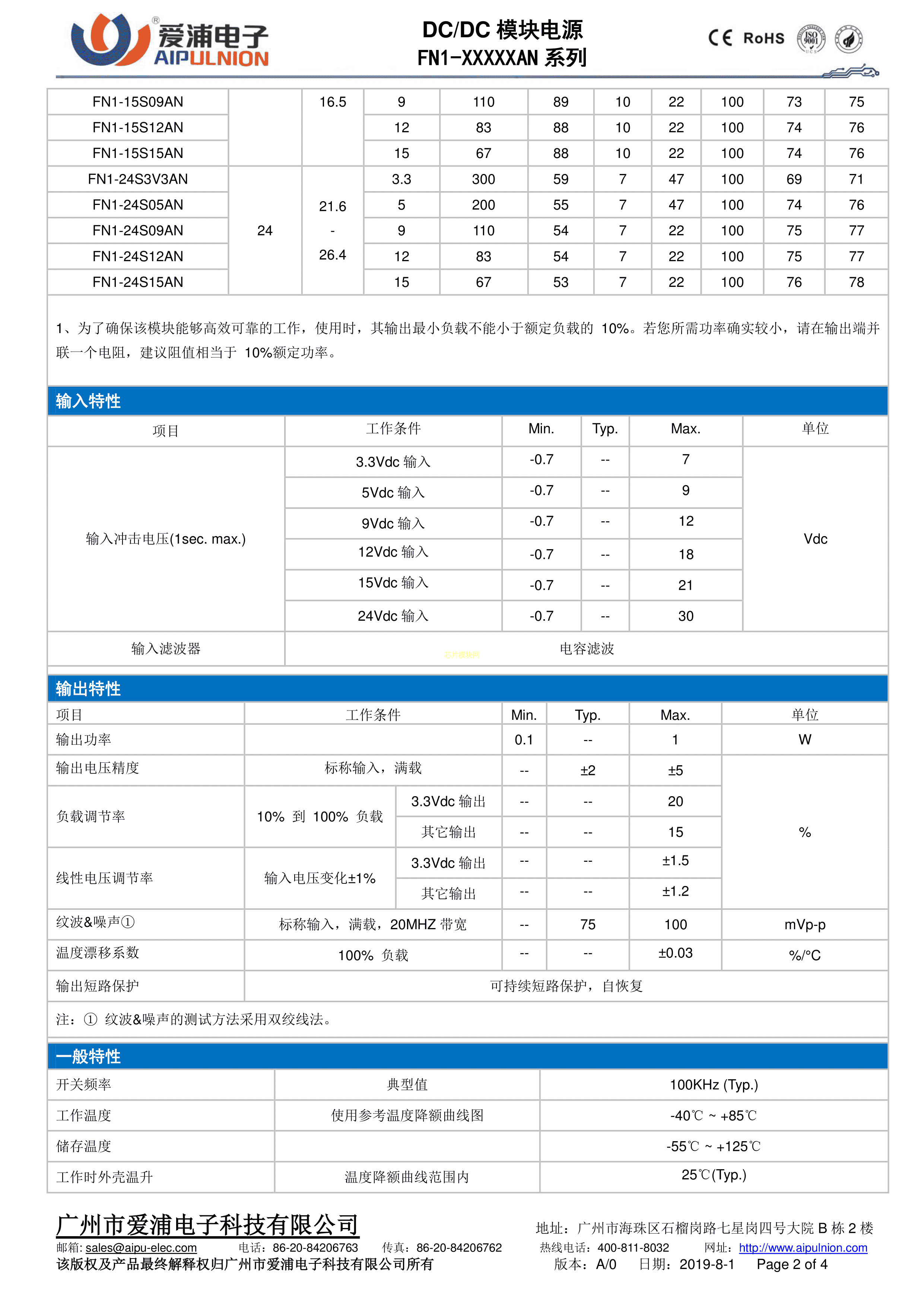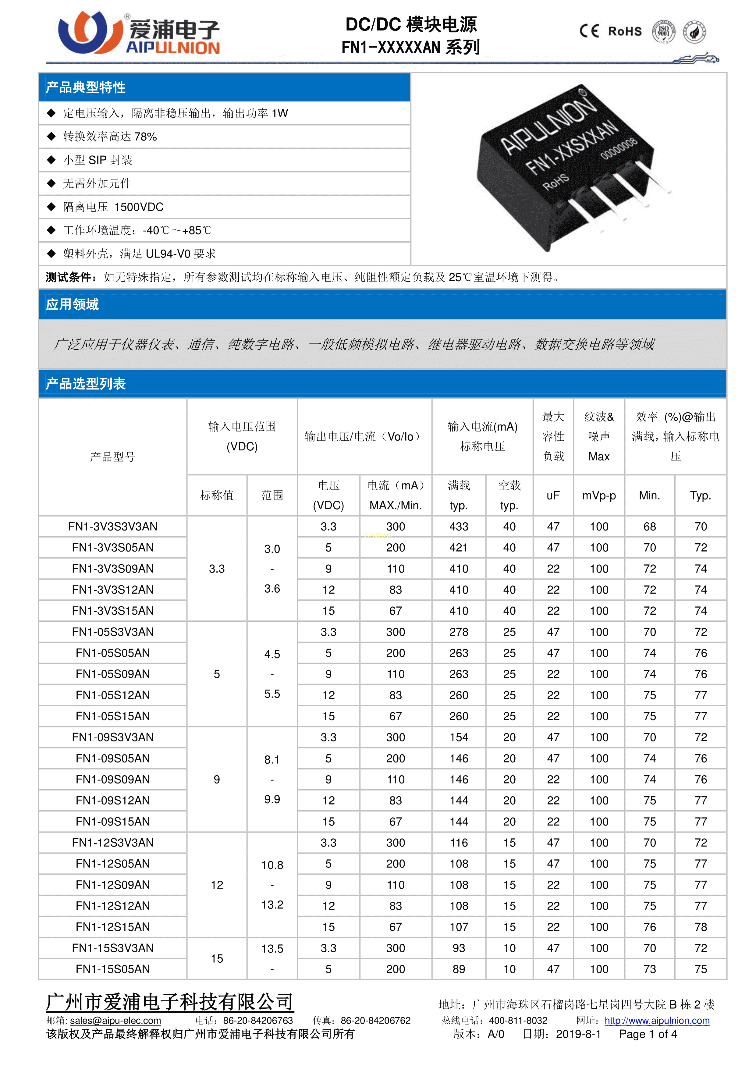 FN1-12S12AN数据手册插件封装AIPULNION(爱浦电子)PDF规格书,中英文下载
