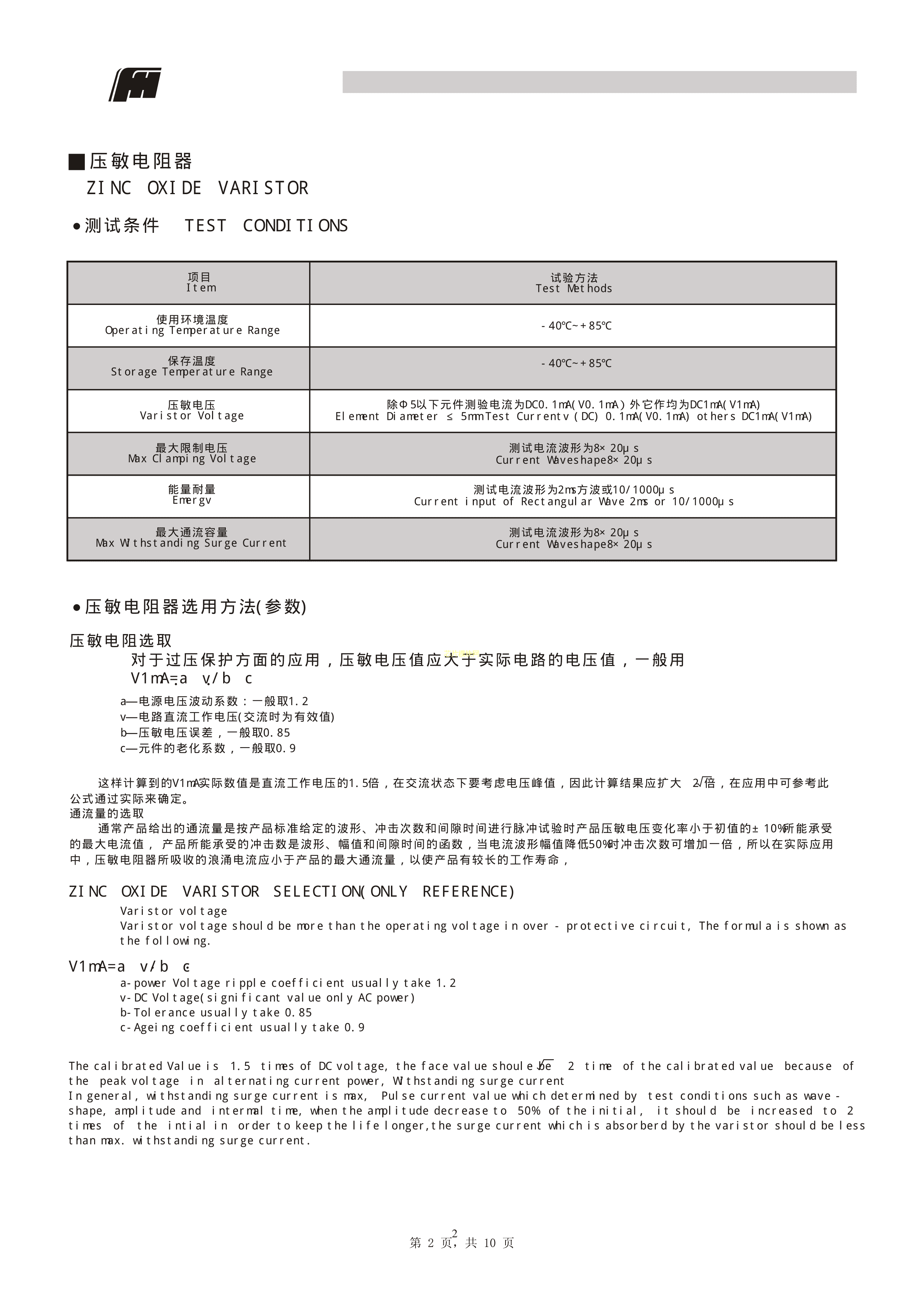 FNR-05K470B数据手册径向引线封装FH(风华)PDF规格书,中英文下载