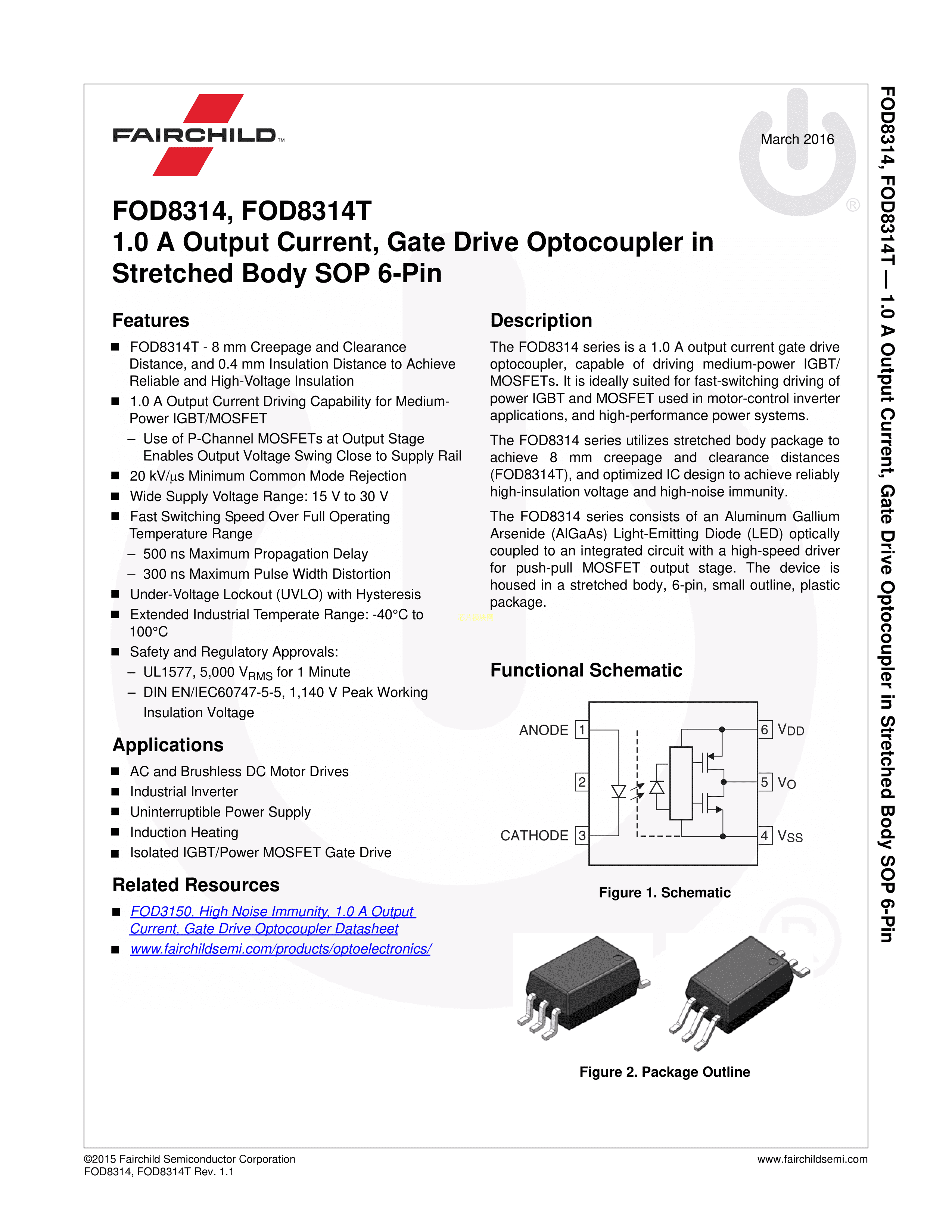 FOD8314TR2V数据手册SOP-6封装onsemi(安森美)PDF规格书,中英文下载