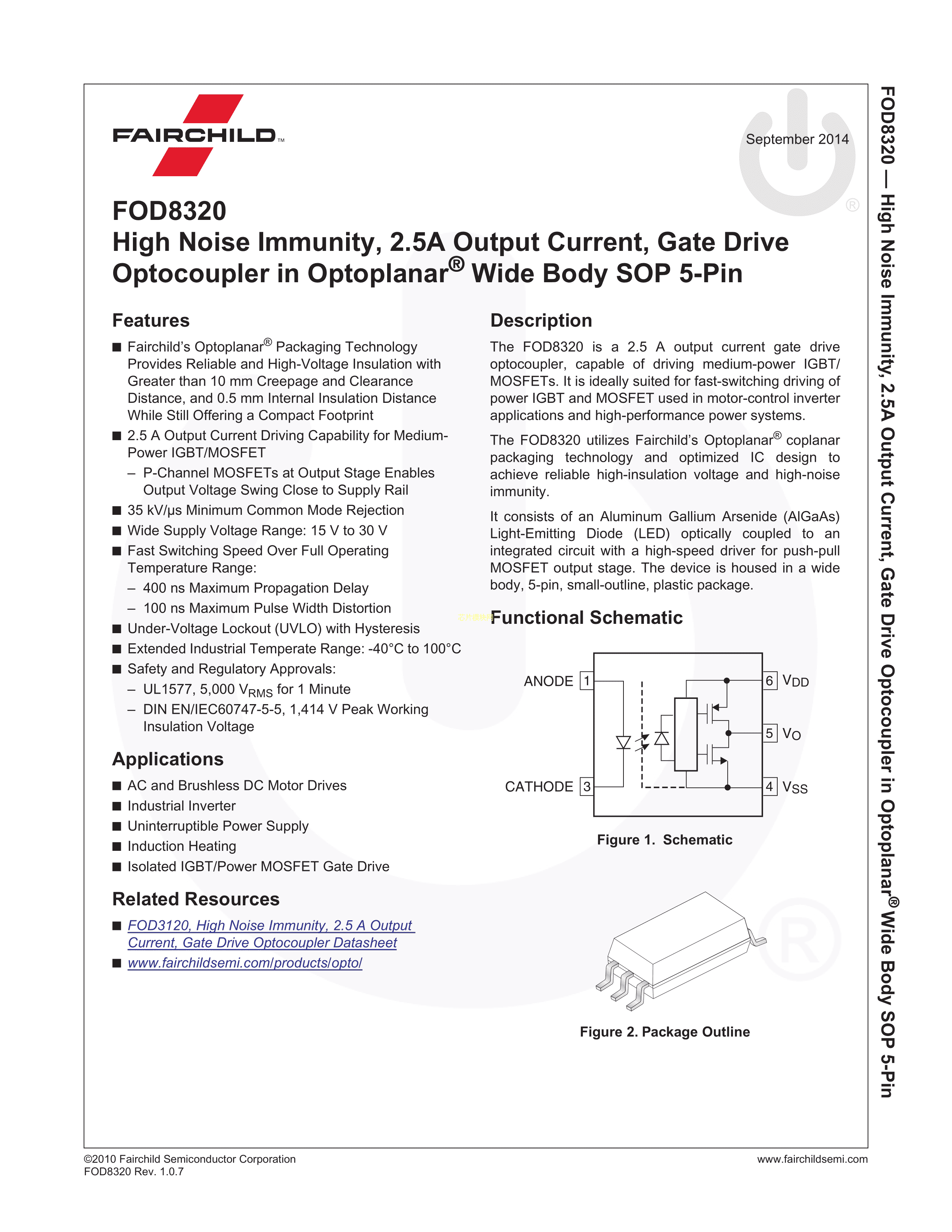 FOD8320数据手册SOP-5封装onsemi(安森美)PDF规格书,中英文下载