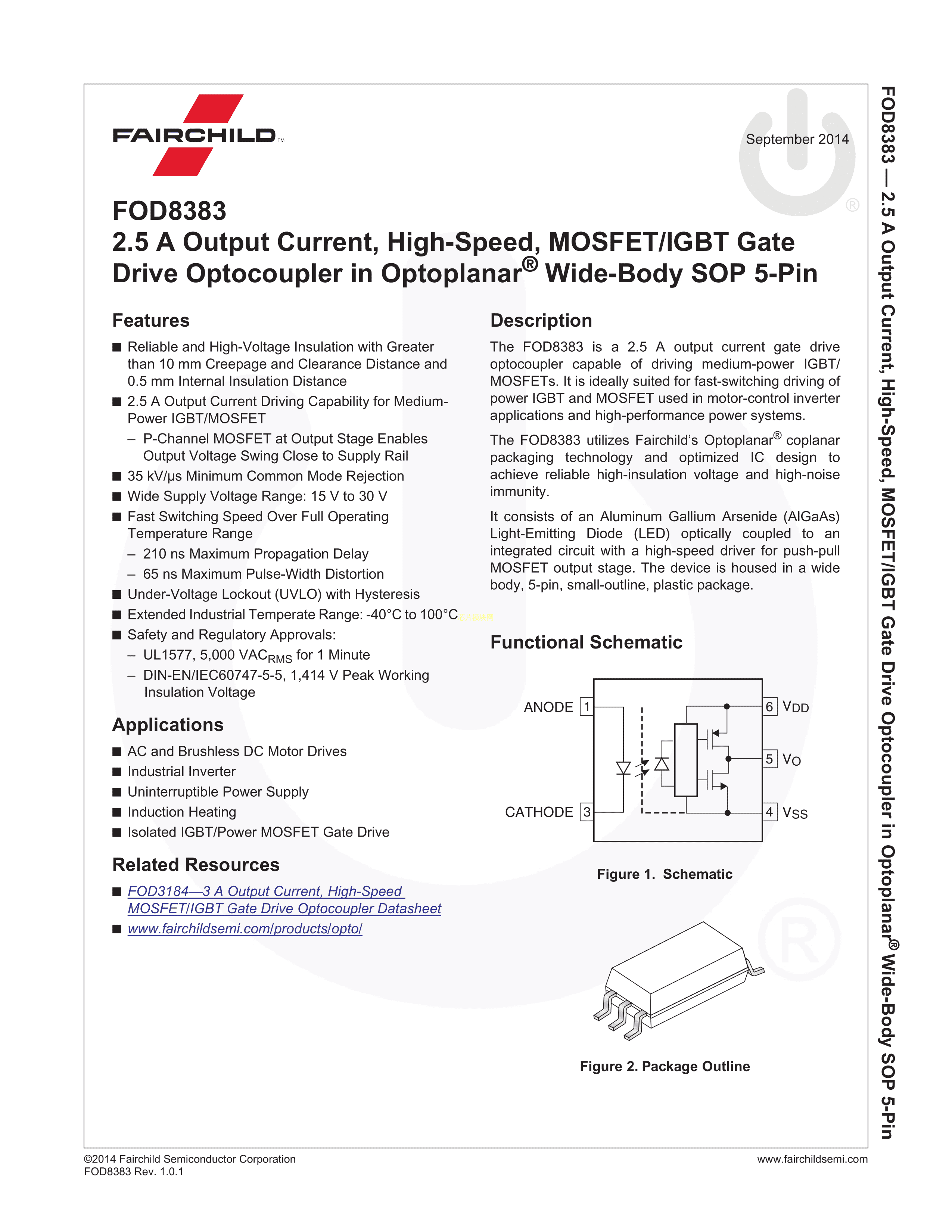 FOD8383R2V数据手册SOP-5封装onsemi(安森美)PDF规格书,中英文下载