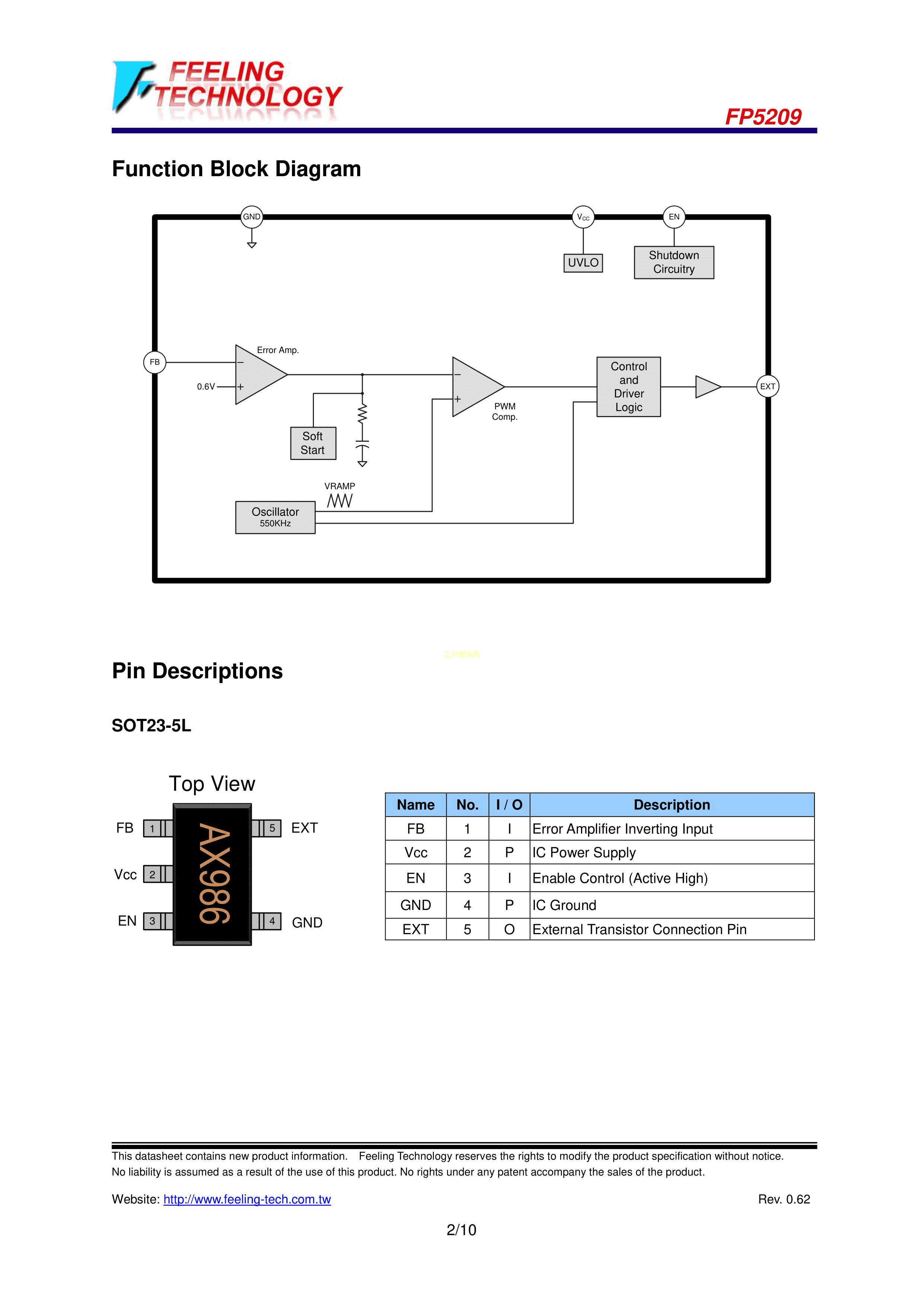 FP5209KR-G1数据手册SOT-23-5封装Feeling Technology(台湾远翔)P